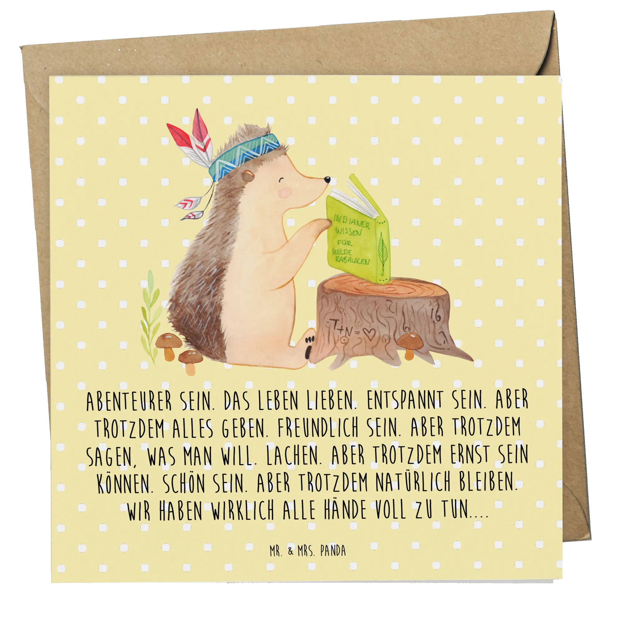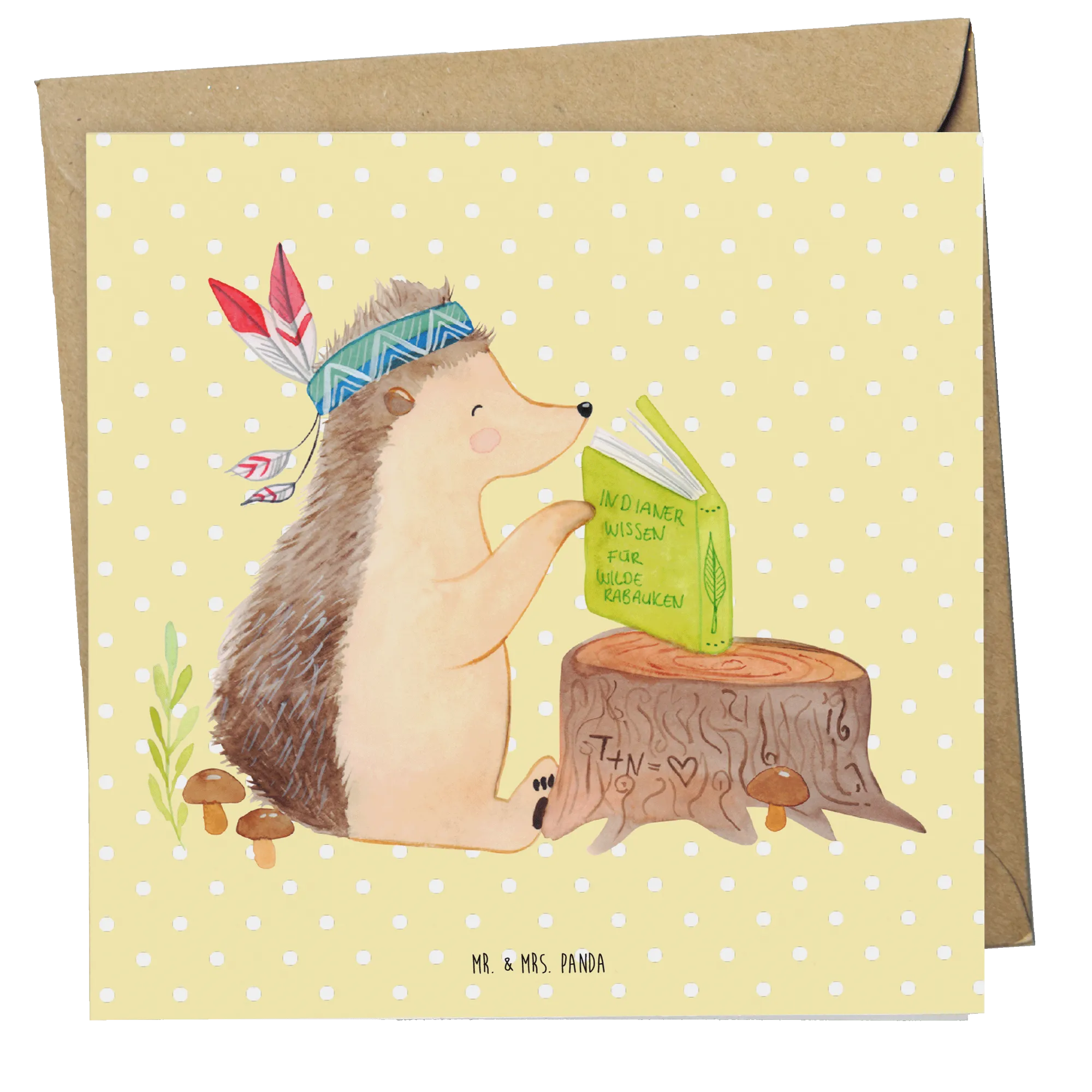 Die Deluxe Karte mit dem zauberhaften Motiv "Igel Indianer" aus der Waldtiere Kollektion von Mr. & Mrs. Panda ist der perfekte Begleiter für alle, die Freude und Abenteuer in ihr Leben bringen möchten! Egal ob zum Geburtstag, zur Hochzeit, für Jubiläen oder andere festliche Anlässe – diese hochwertige Grußkarte begeistert mit ihrem lieben Design und ihren positiven Botschaften.