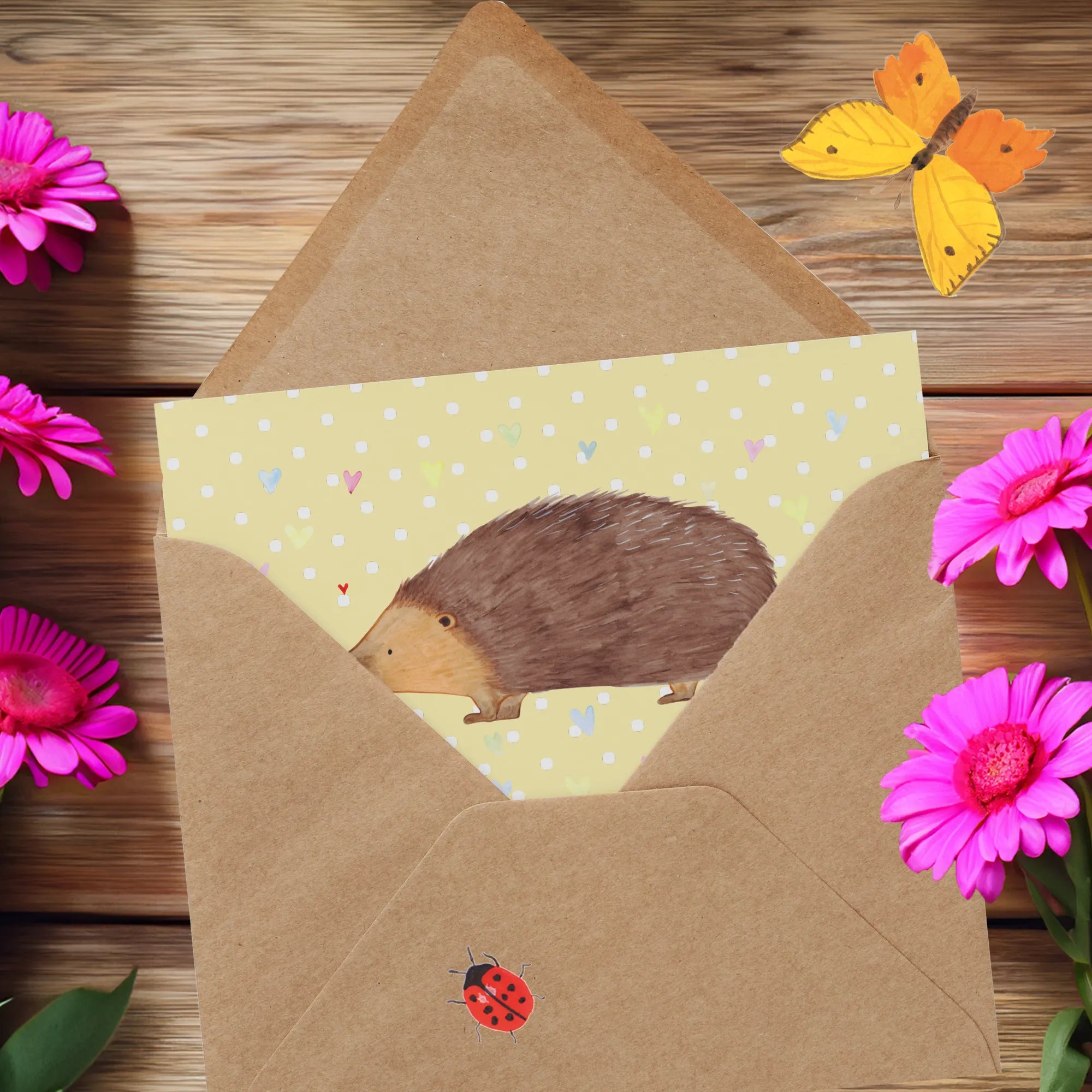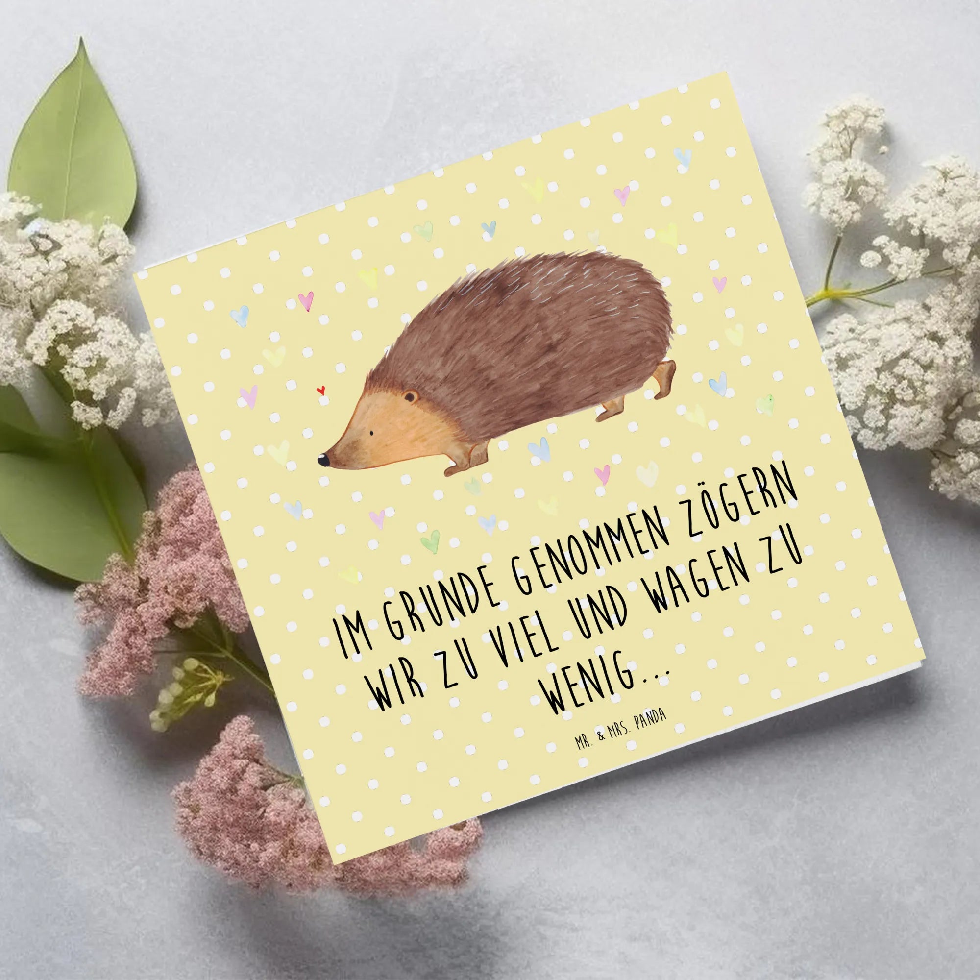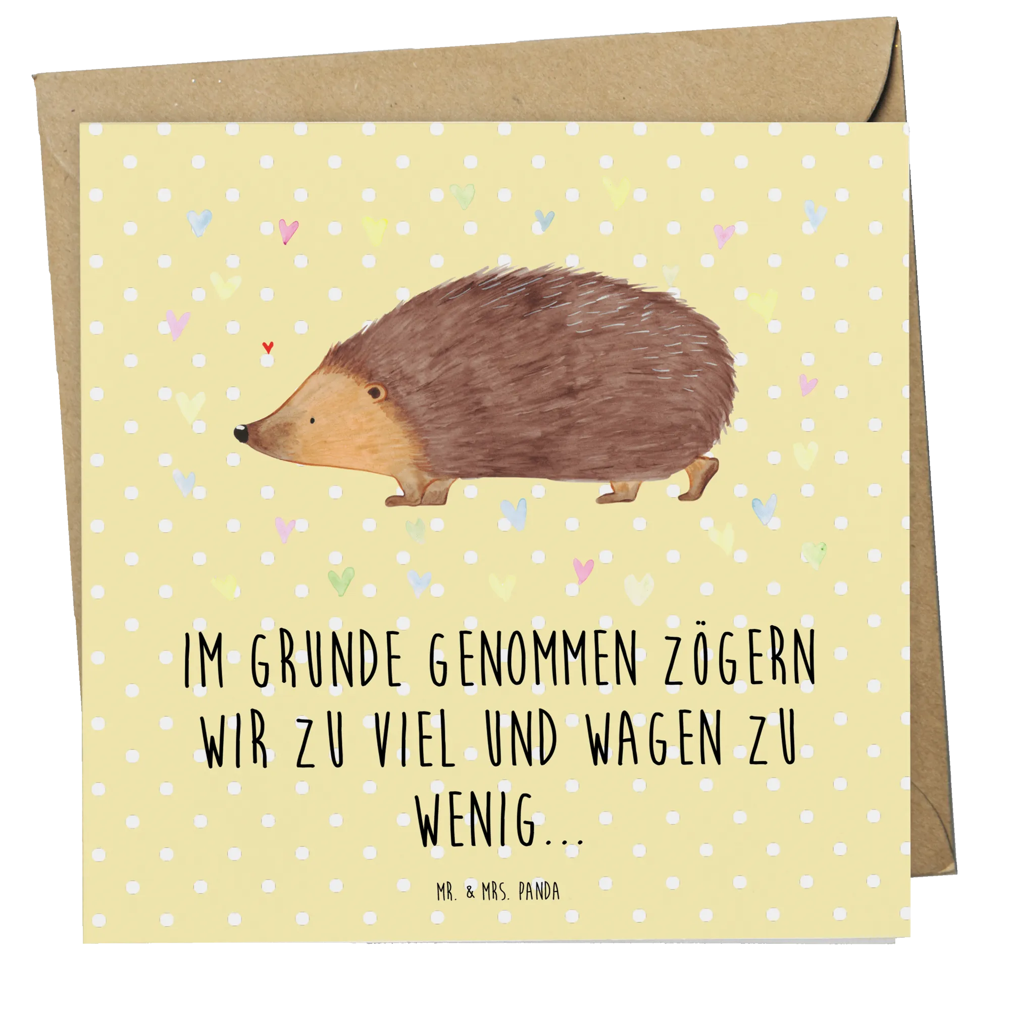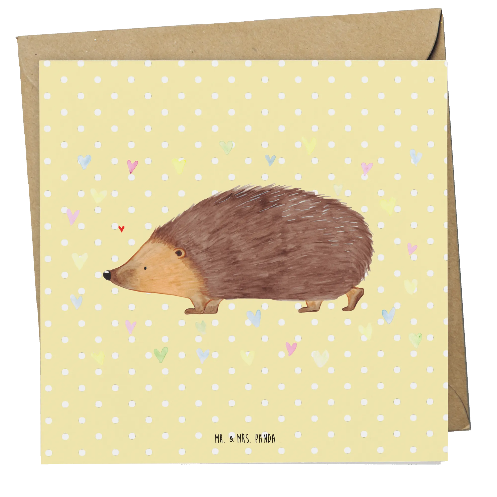Deluxe Karte Igel Herzen - mit Spruch - Gelb Pastell