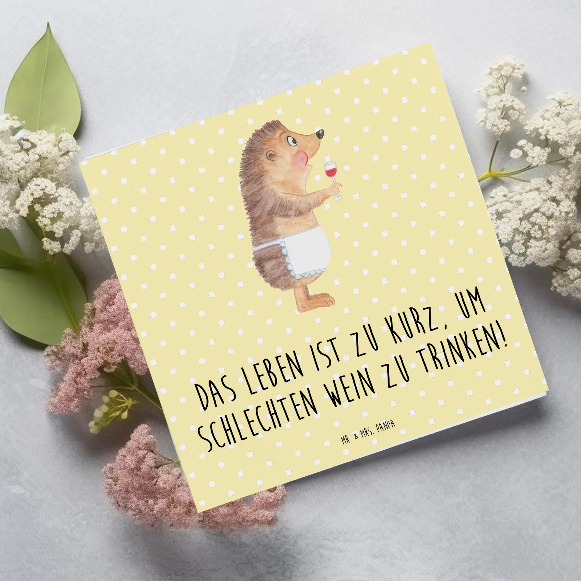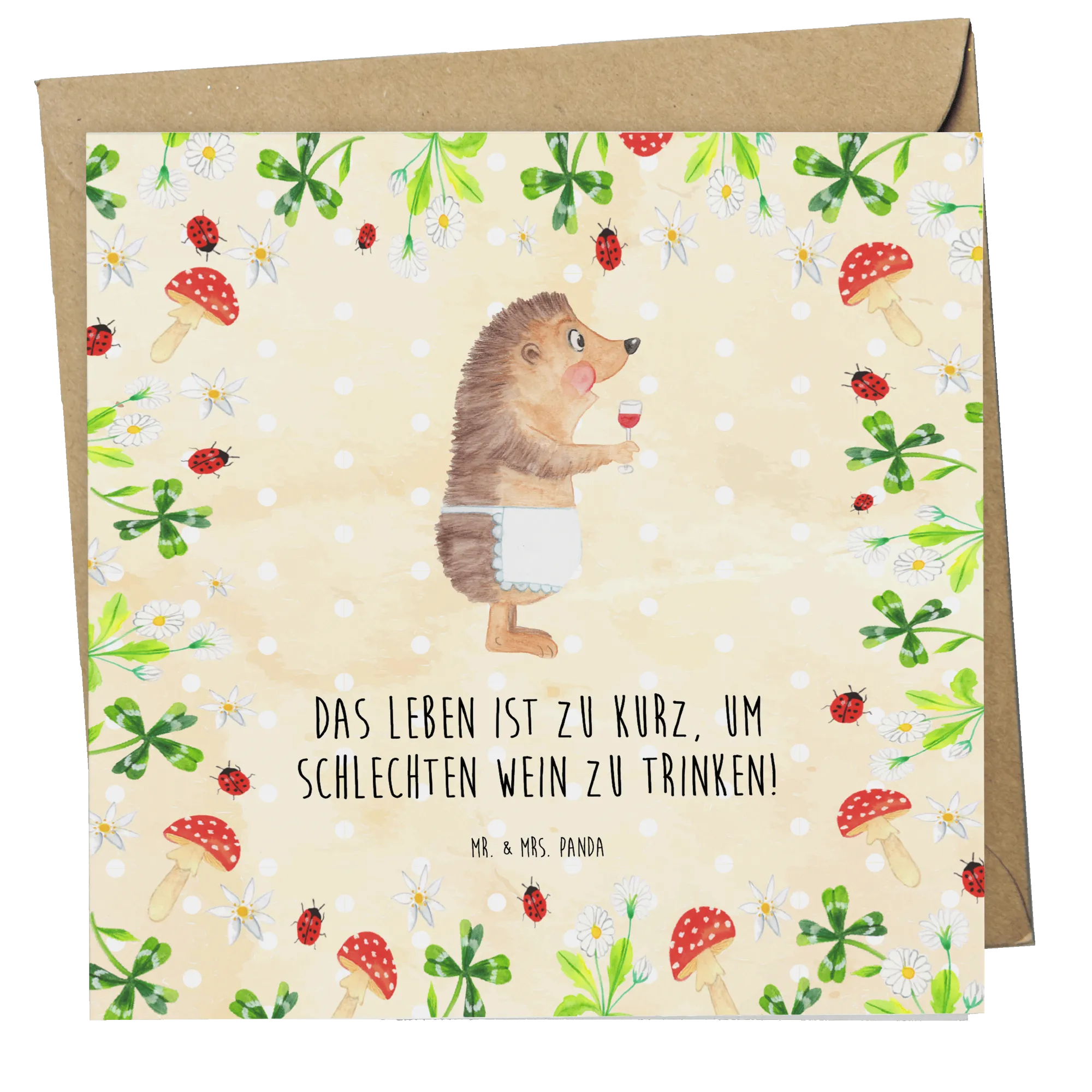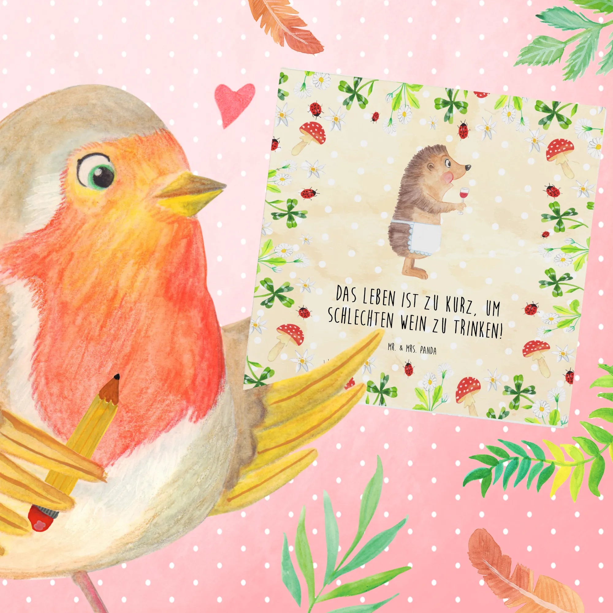 Das Motiv zeigt einen kleinen, bezaubernden Igel, der genüsslich aus einem Rotweinglas trinkt und damit symbolisch für den Genuss und die Freude des Lebens steht. Dein Geschenk wird durch diese Karte noch besonderer, egal ob zum Geburtstag, zur Hochzeit oder einfach nur um jemandem eine Freude zu machen. Mit dem Slogan „Das Leben ist zu kurz, um schlechten Wein zu trinken!“ vermittelt die Karte eine positive Lebenseinstellung, die jeder Weinliebhaber sofort zu schätzen weiß.