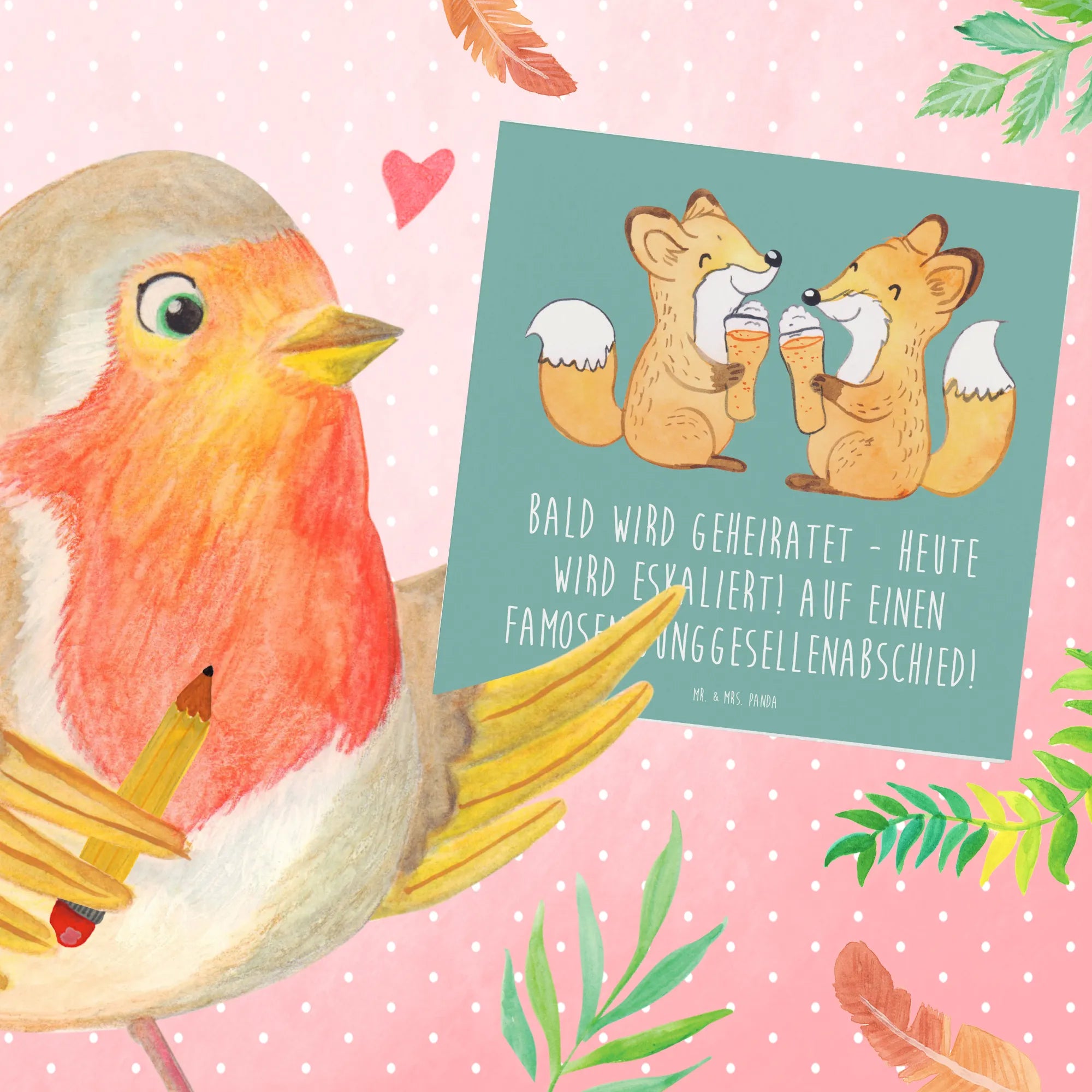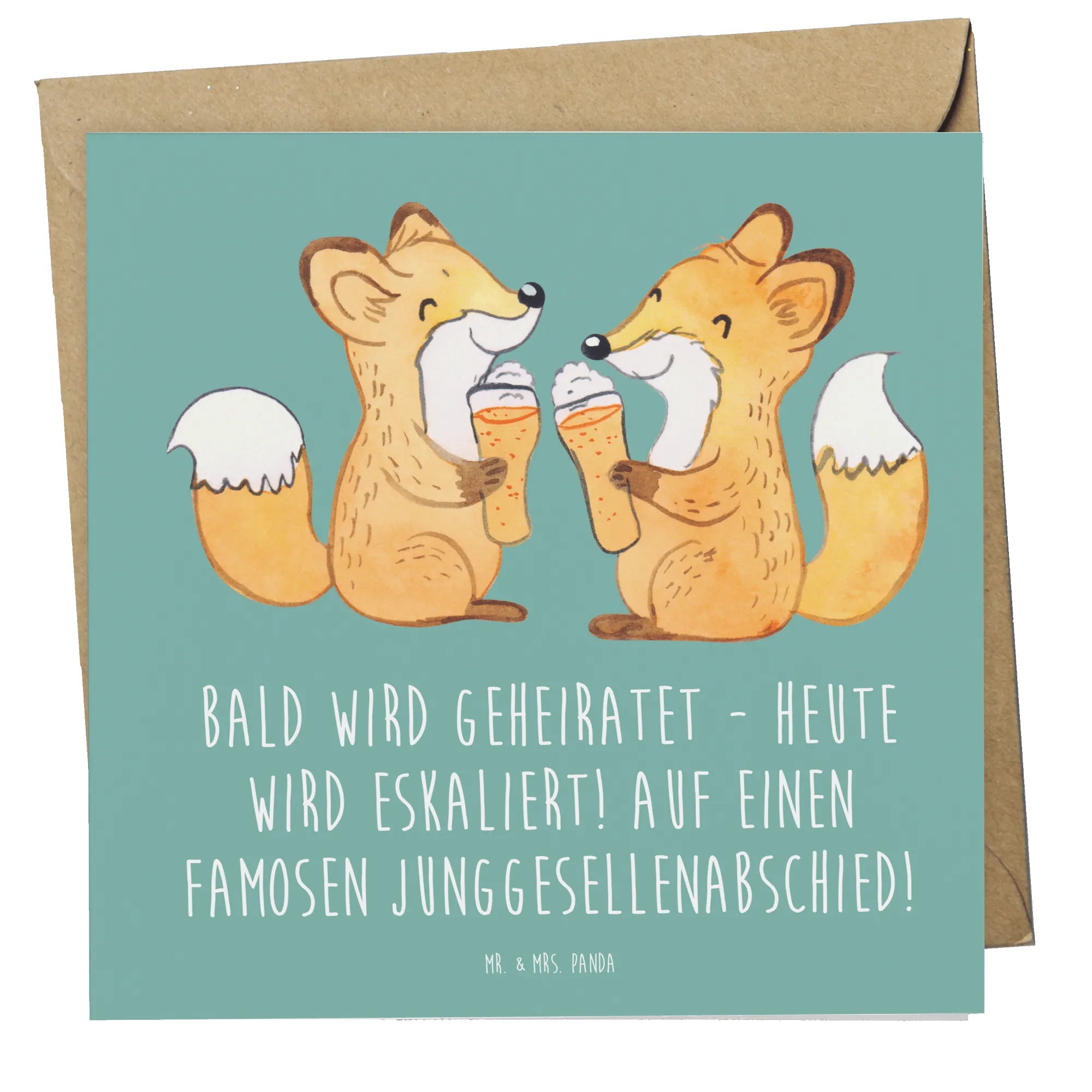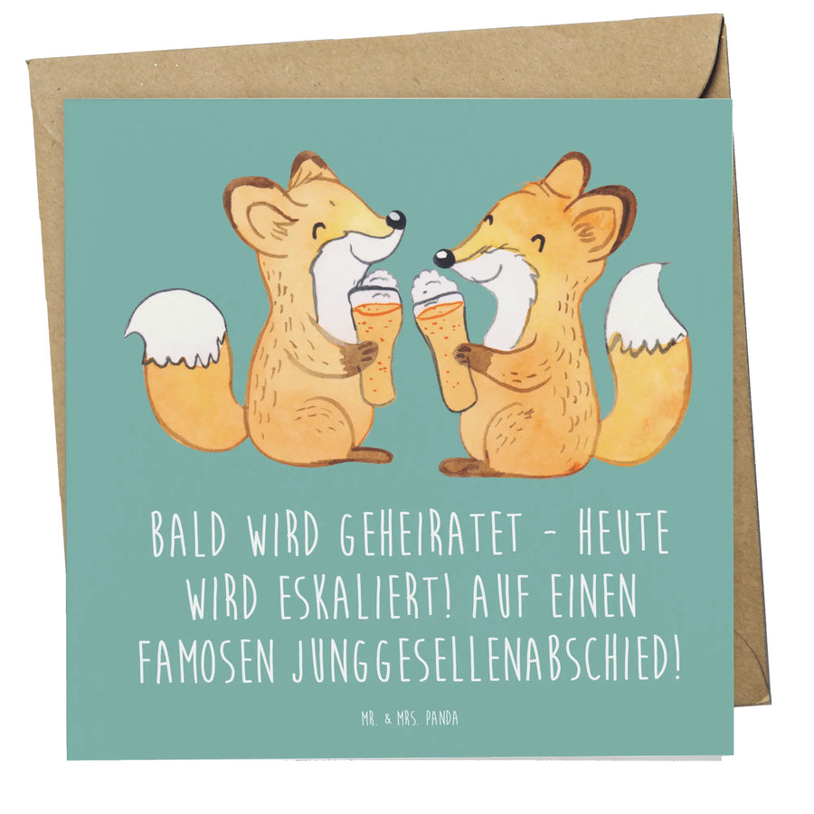 Bald wird geheiratet und das bedeutet: Junggesellenabschied! Unsere wunderschöne Deluxe Karte von Mr. & Mrs. Panda ist das perfekte Geschenk für diesen besonderen Anlass. Die Karte ist liebevoll gestaltet und mit dem Spruch „Bald wird geheiratet - heute wird eskaliert! Auf einen famosen Junggesellenabschied!“ bedruckt, welcher die Vorfreude auf die Hochzeit perfekt einfängt. Dein Freund oder deine Freundin wird sich über diese einzigartige Grußkarte bestimmt freuen!