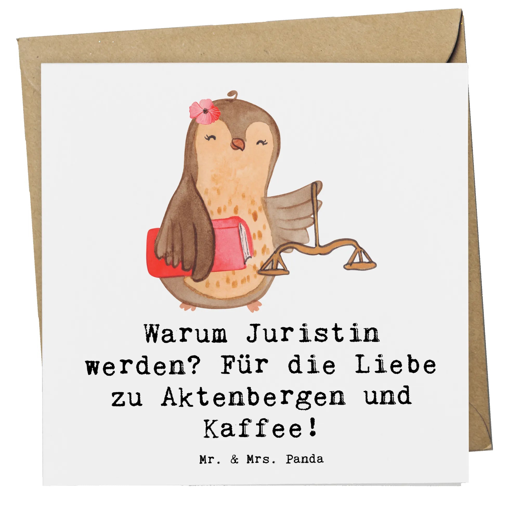 Die Deluxe Karte Juristin aus der wundervollen Berufe-Kollektion von Mr. & Mrs. Panda ist der perfekte Begleiter für all jene, die im juristischen Bereich tätig sind oder eine besondere juristische Ausbildung abgeschlossen haben. Mit dem liebevoll gestalteten Motiv und dem humorvollen Spruch 'Warum Juristin werden? Für die Liebe zu Aktenbergen und Kaffee!' bringt diese Karte nicht nur Freude, sondern auch eine persönliche Note.