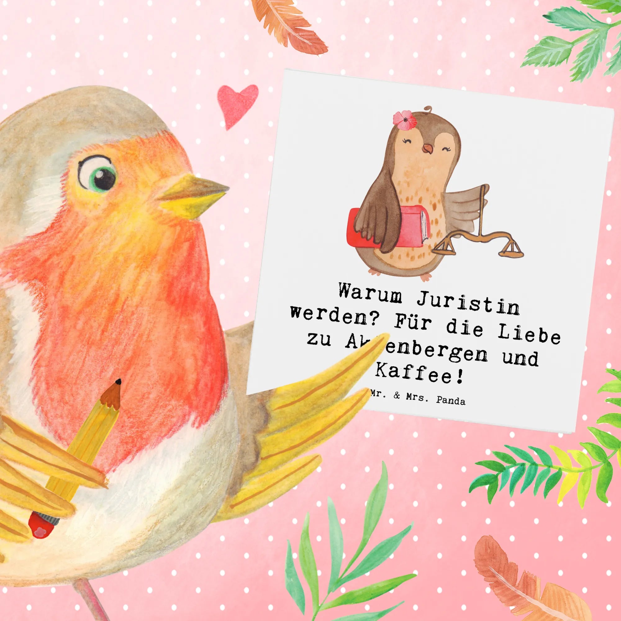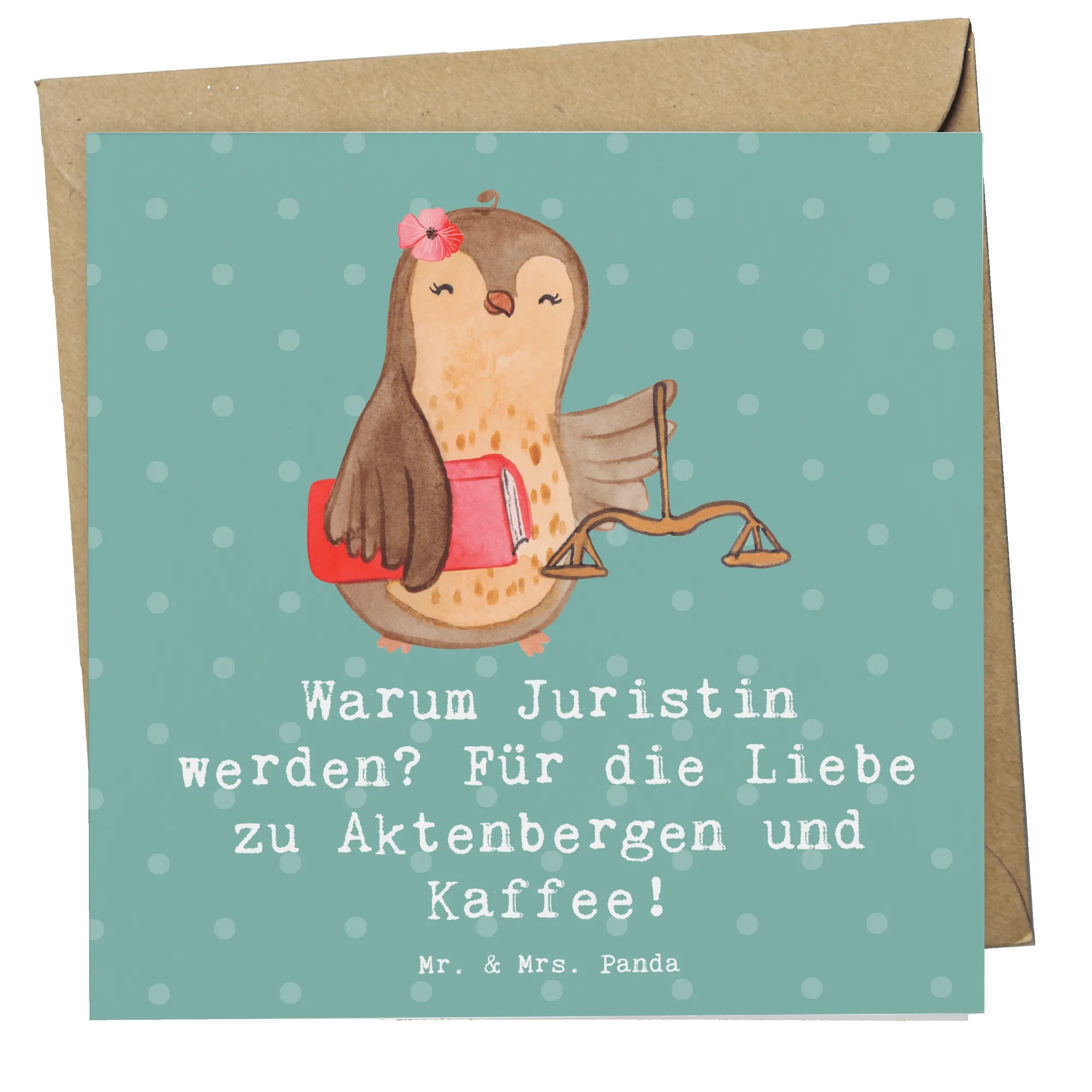 Mit dem charmanten Slogan: "Warum Juristin werden? Für die Liebe zu Aktenbergen und Kaffee!" wird diese Karte zu einem unvergesslichen Begleiter für alle, die sich in der Welt der Rechtswissenschaft bewegen.