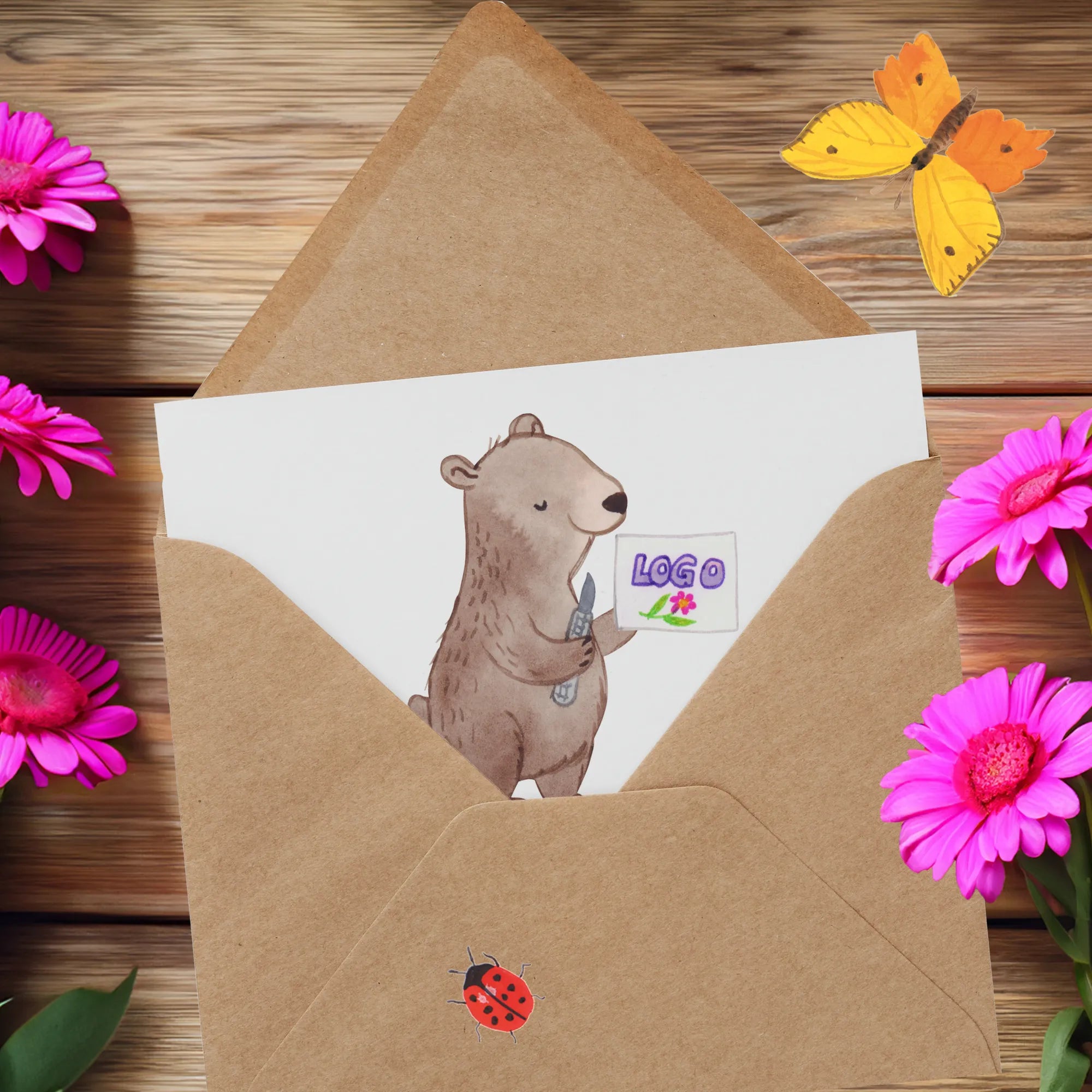 Mit einem süßen Panda, der fröhlich mit Social Media Icons jongliert, spricht das Motiv die moderne Berufswelt an. Die Klappkarte hat eine edle Optik und ist aus hochwertigem 300 Gramm Karton gefertigt, was sie zugleich stabil und ansprechend macht.