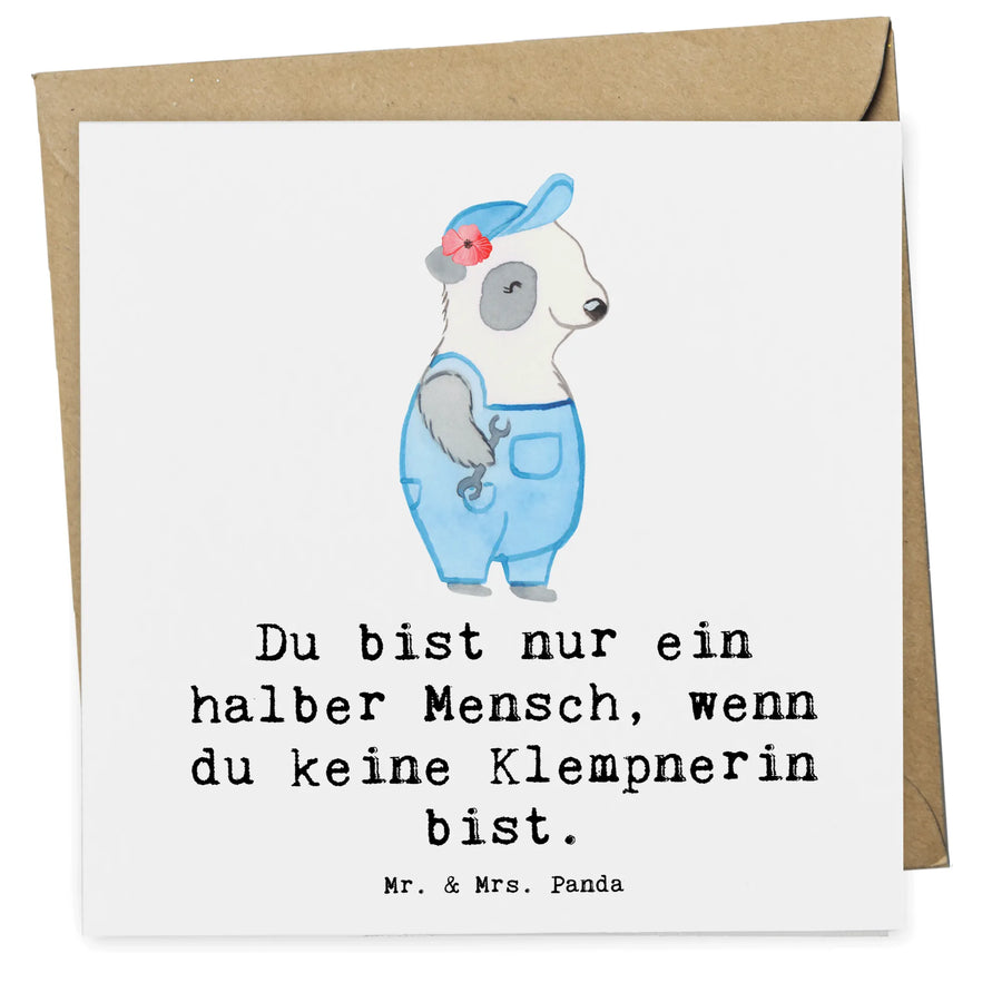 Die Deluxe Karte 'Klempnerin mit Herz' aus der besonderen Berufe-Kollektion von Mr. & Mrs. Panda ist das perfekte Geschenk für alle Handwerkerinnen und Klempnerinnen in deinem Leben. Egal ob zum Geburtstag, zum Jubiläum, als Dankeschön oder einfach nur so – diese hochwertige Grußkarte sorgt mit ihrem liebevollen Design und dem witzigen Spruch 'Du bist nur ein halber Mensch, wenn du keine Klempnerin bist.' für ein Lächeln auf den Lippen.