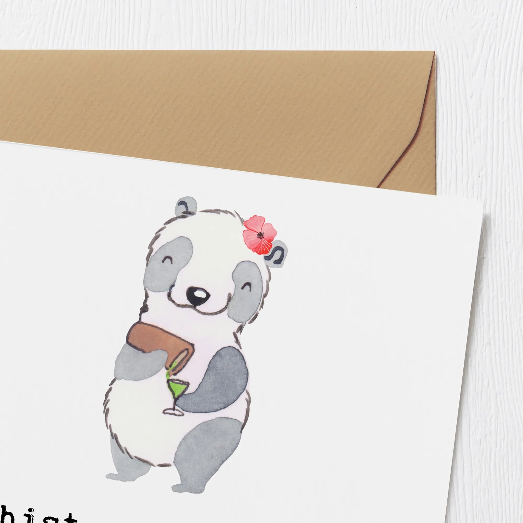 Mit einem süßen, weiblichen Panda, der eine Alkoholflasche in der Hand hält, bringt die Karte schon beim Anblick Freude. Unter dem Motto 'Du bist nur ein halber Mensch, wenn du keine Kneipenwirtin bist.' erhellt sie das Herz jeder Gastwirtin und feiert die besonderen Momente des Kneipenlebens. Die Karte ist nicht nur ein schönes Accessoire, sondern auch eine wunderbare Gelegenheit, um Dank zu sagen oder besondere Anlässe wie Geburtstage, Hochzeiten oder Verabschiedungen festlich zu begehen.