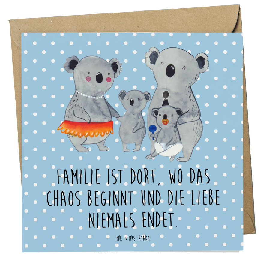 Mit dieser schönen Grußkarte sorgst du für ein Strahlen im Gesicht deiner Liebsten und schaffst wunderschöne Erinnerungen, die ein Leben lang bleiben. Die Koala Familie Karte ist nicht nur ein Stück Papier, sondern ein Ausdruck von Liebe und Zuneigung. Beschenke deine Familie mit dieser einzigartigen Karte von Mr. & Mrs. Panda und zeige, wie viel sie dir bedeutet.