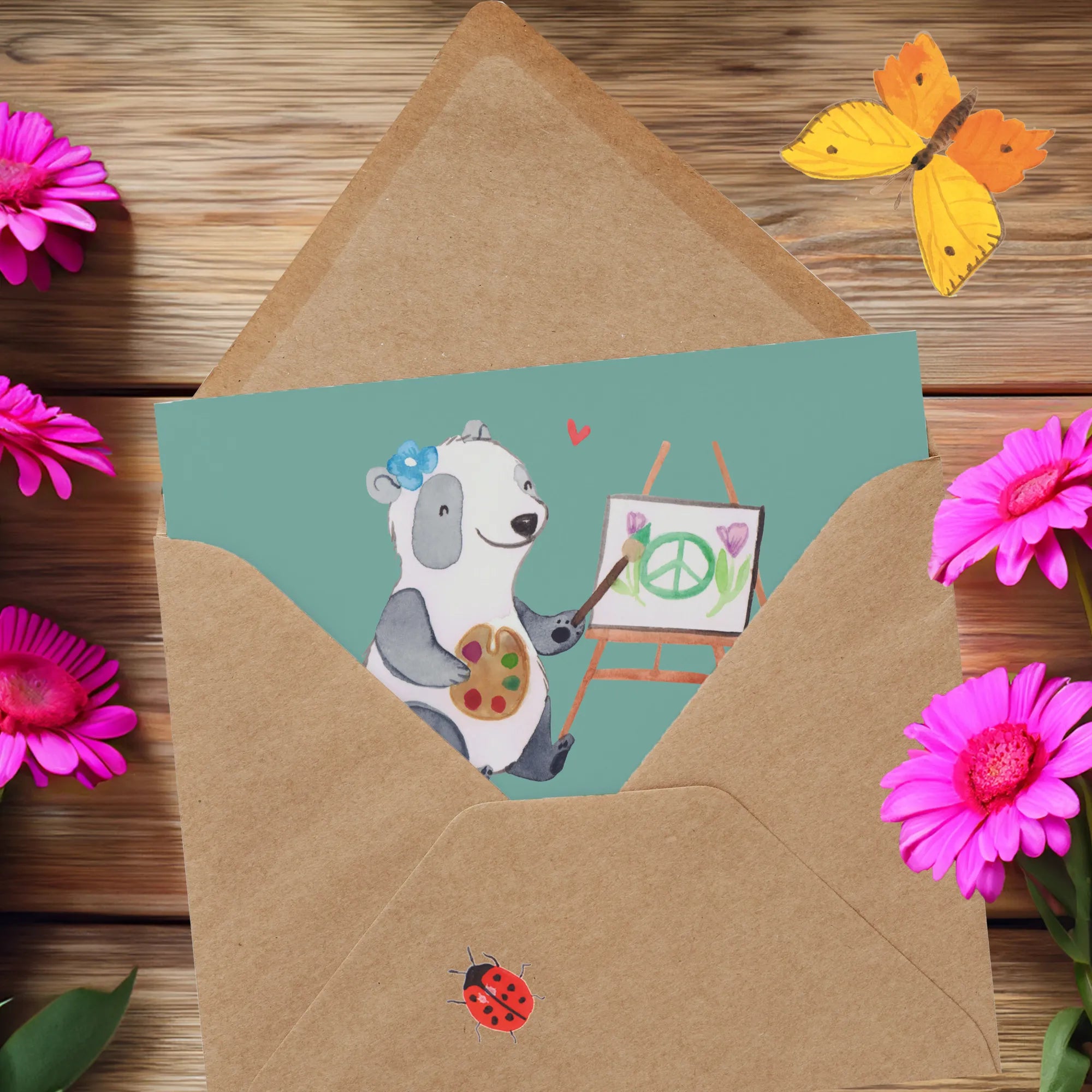 Mit dem Spruch 'Realität ist überbewertet, frag eine Künstlerin!', lädt sie uns ein, die Welt aus einer kreativen Perspektive zu betrachten. Die liebevoll gestalteten Motive von Mr. & Mrs. Panda, die mit viel Herz und Aquarelltechnik gefertigt wurden, bringen den passenden Ausdruck für jede Gelegenheit.