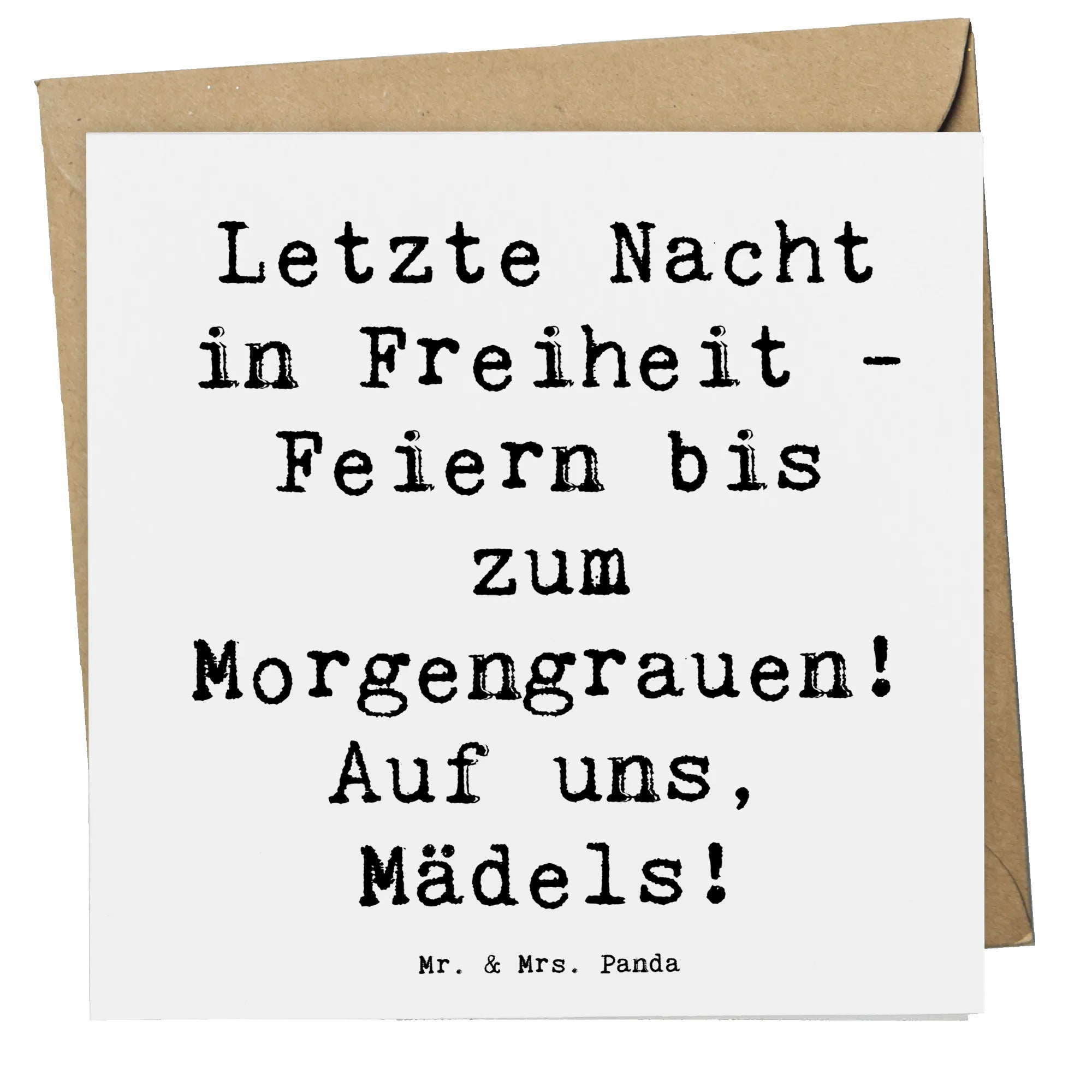 Die Junggesellinnenabschied-Karte ist nicht nur ein geniales Accessoire für die letzte Nacht in Freiheit, sondern auch Teil der bezaubernden Hochzeit-Kollektion von Mr. & Mrs. Panda, die viele wunderschöne Motive und Sprüche bietet. Entdecke die zauberhafte Hochzeitskollektion, um für jeden Moment rund um den schönsten Tag deines Lebens die perfekten Geschenke zu finden.