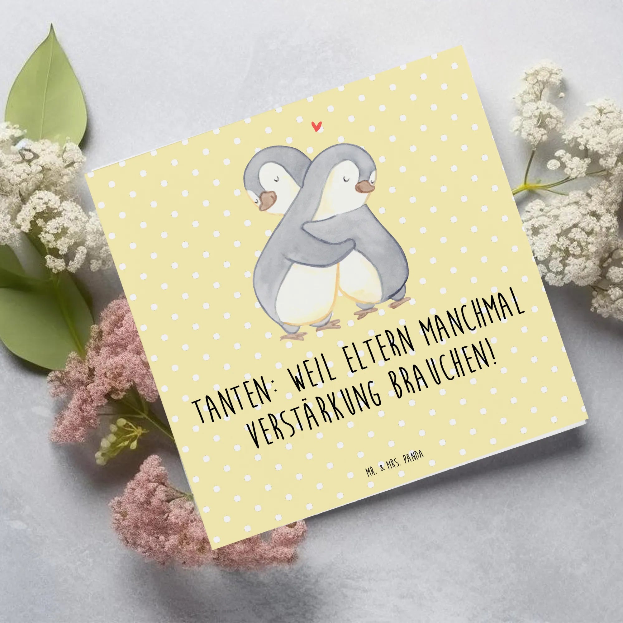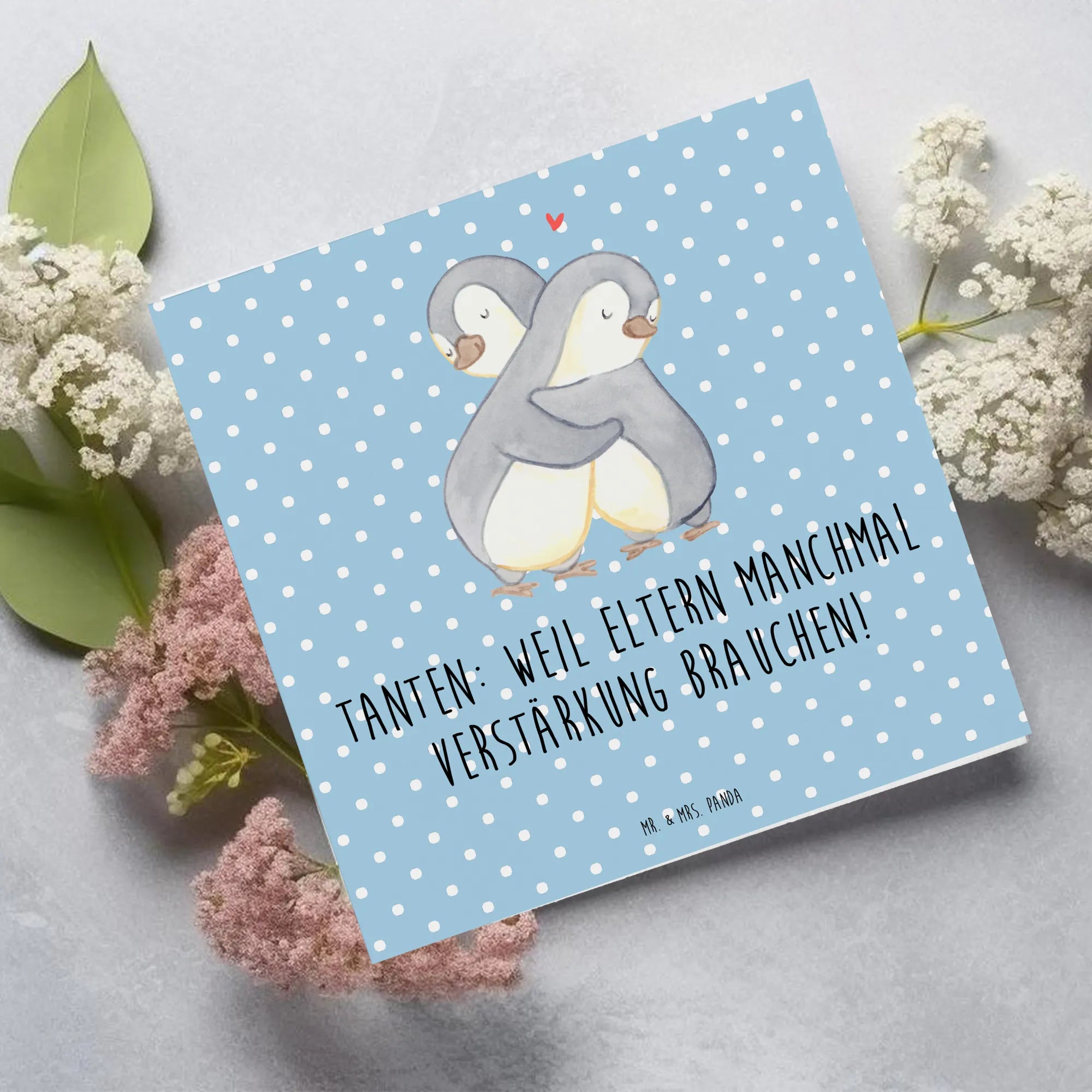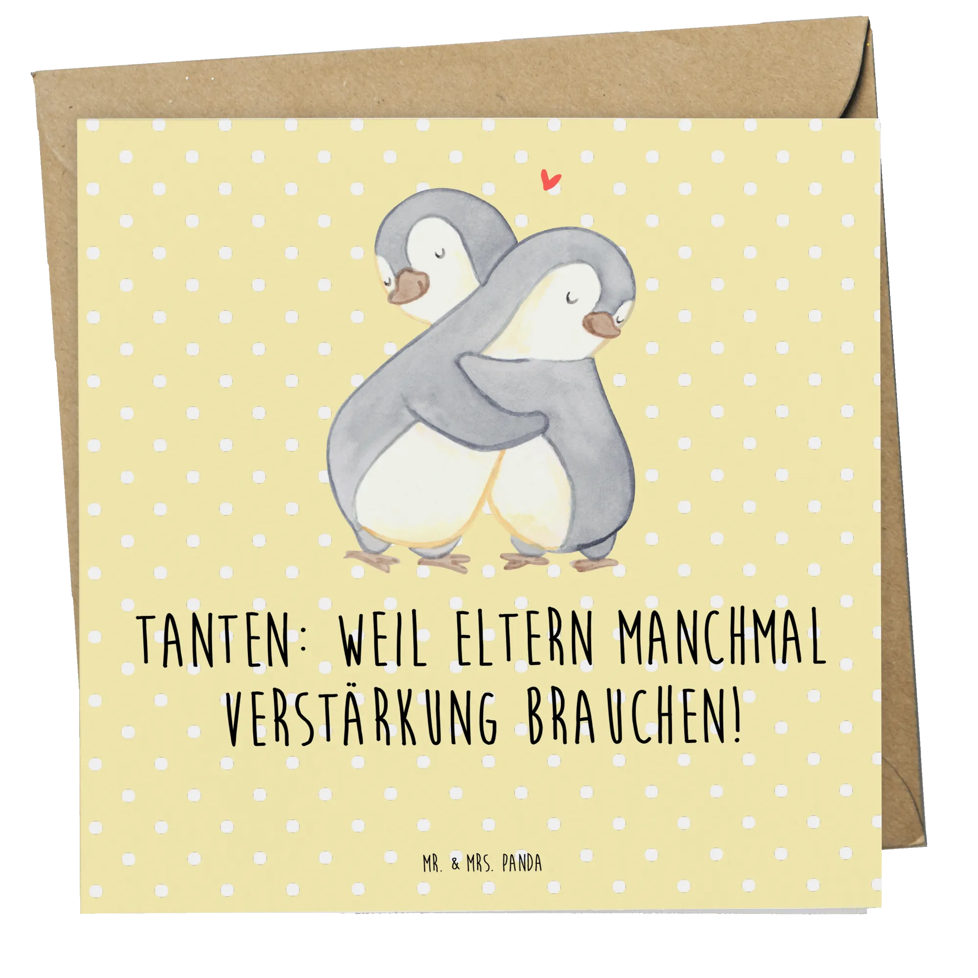 Die Deluxe Karte mit dem süßen Motiv "Tante" aus der besonderen Kollektion "Familie & Verwandte" von Mr. & Mrs. Panda ist das perfekte Geschenk für all jene, die eine liebevolle Beziehung zu ihrer Tante pflegen. Mit einem charmanten Spruch - "Tanten: Weil Eltern manchmal Verstärkung brauchen!" - drückt diese Karte aus, wie wichtig Tanten im Leben ihrer Nichten und Neffen sind.