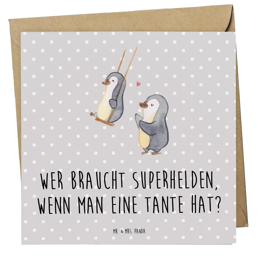 Unsere quadratische Deluxe Karte aus der Kollektion Familie & Verwandte von Mr. & Mrs. Panda bringt Gefühle direkt auf den Punkt: Mit dem herzlichen Spruch „Wer braucht Superhelden, wenn man eine Tante hat?“ und einer zarten Aquarell-Illustration ist sie die perfekte Grußkarte für jede Gelegenheit. 🎁
