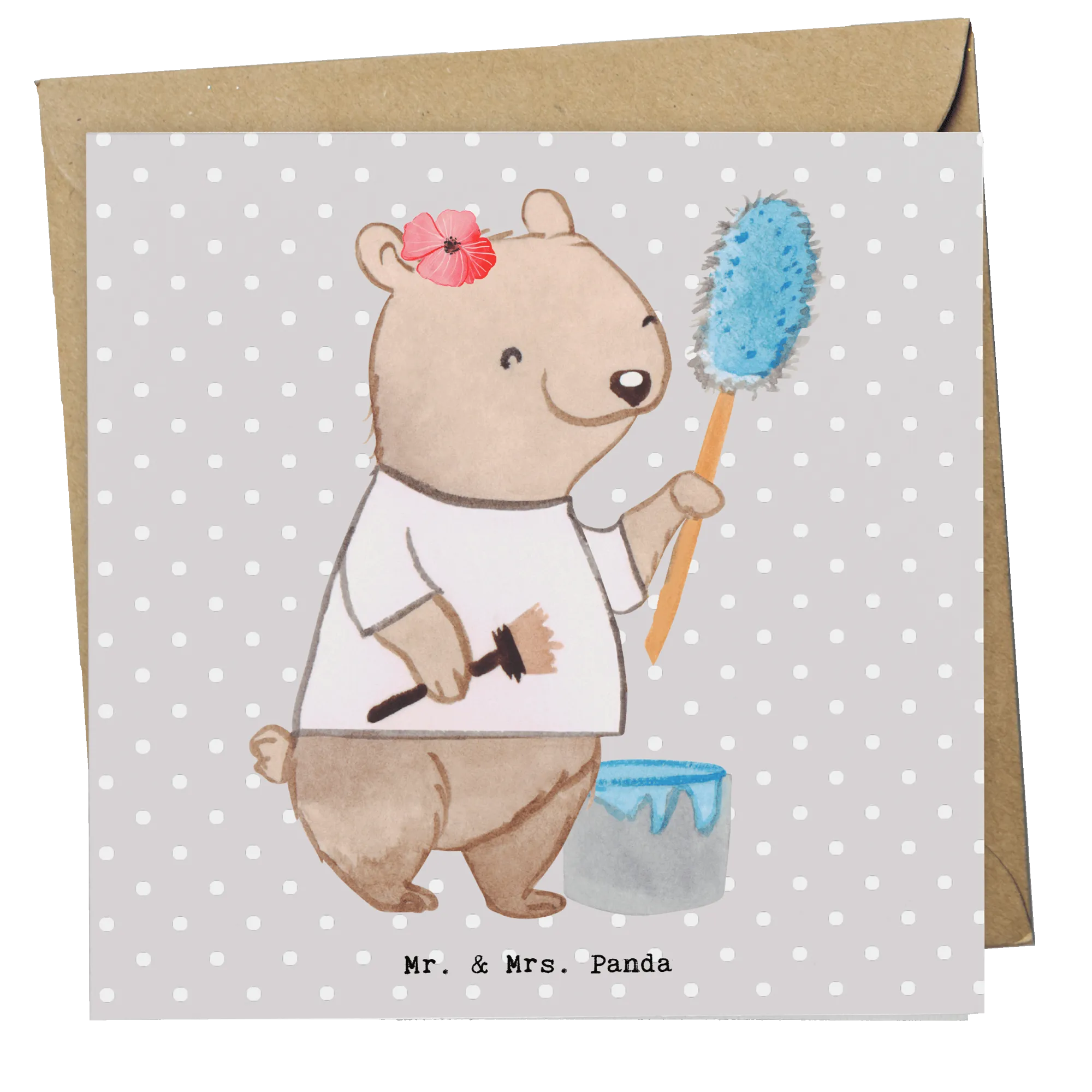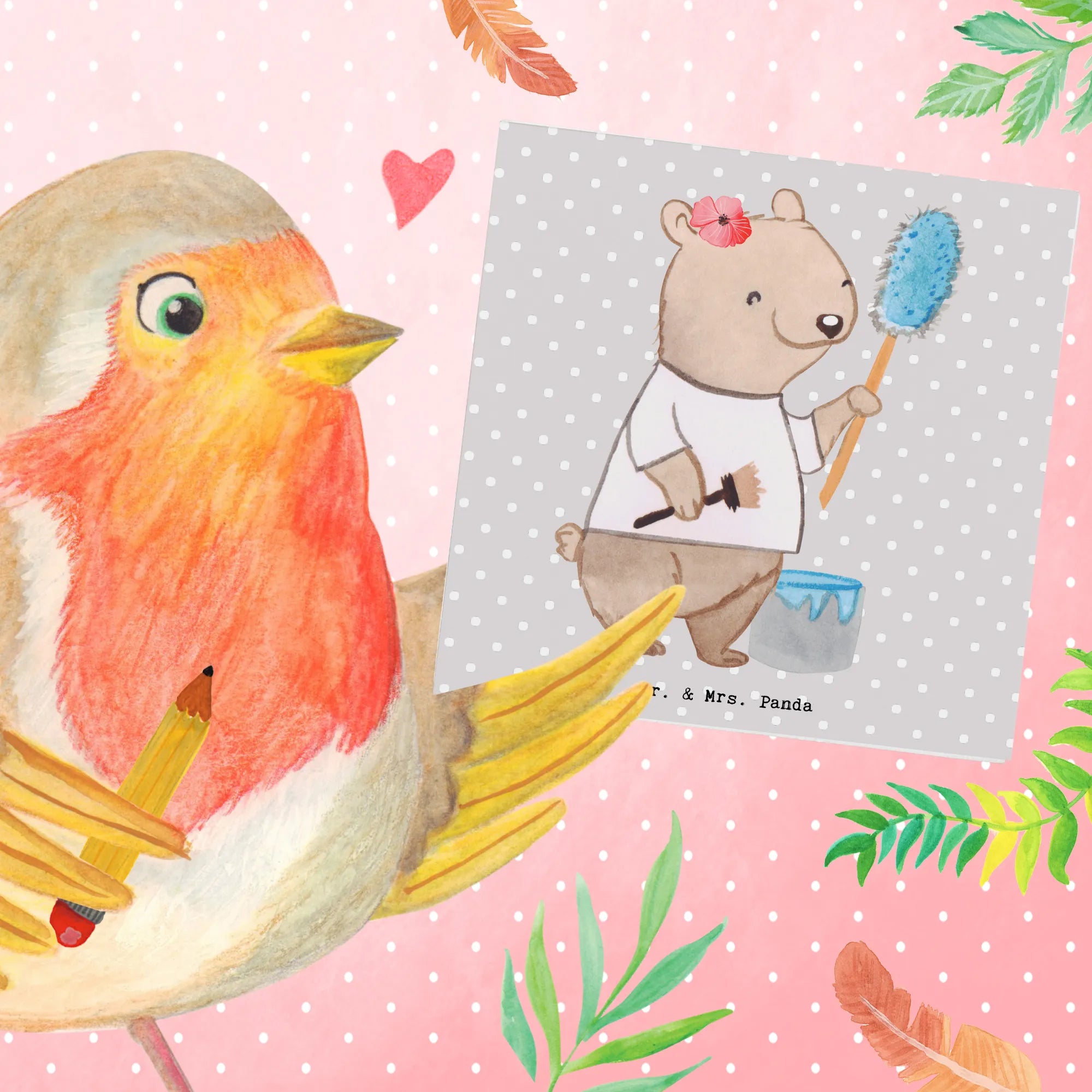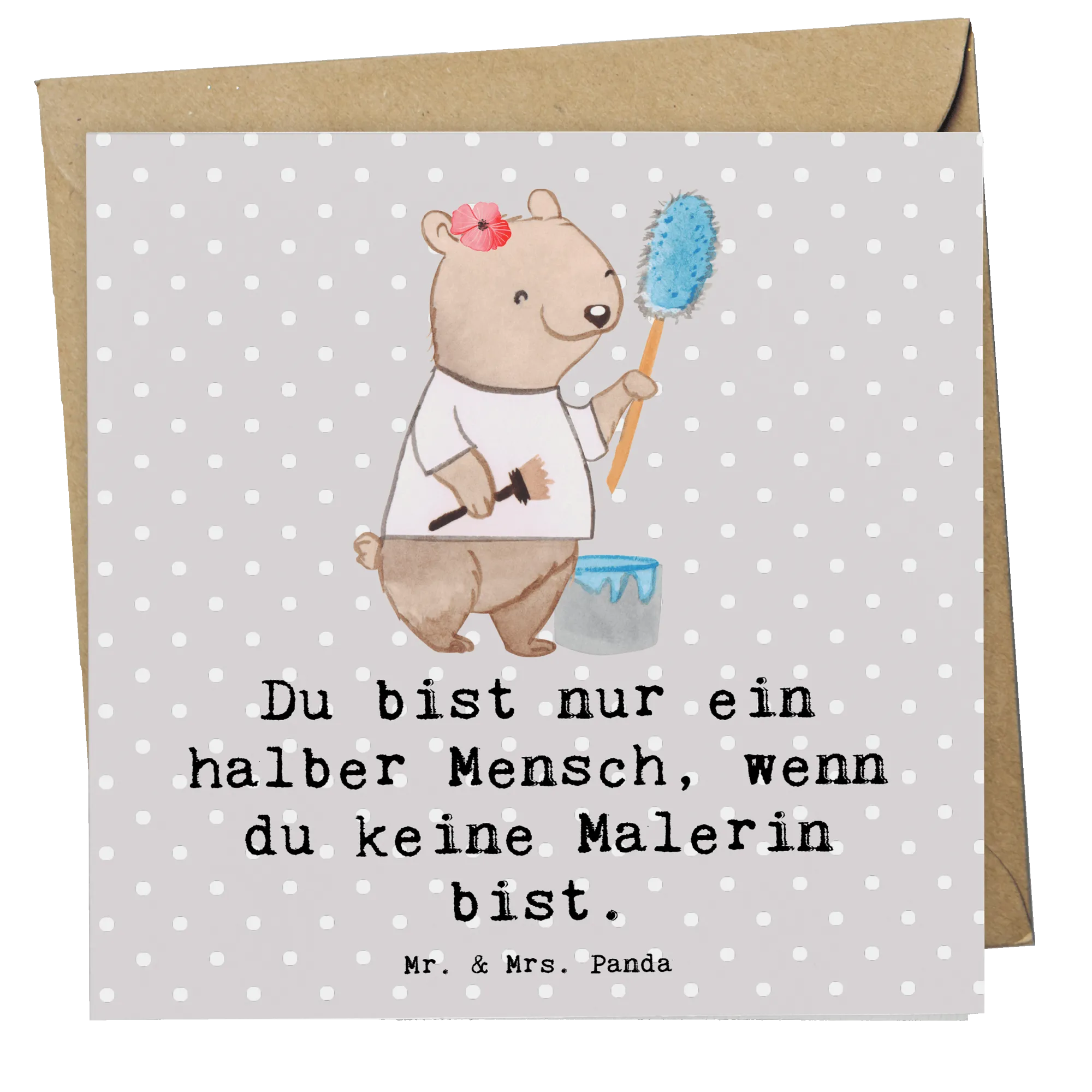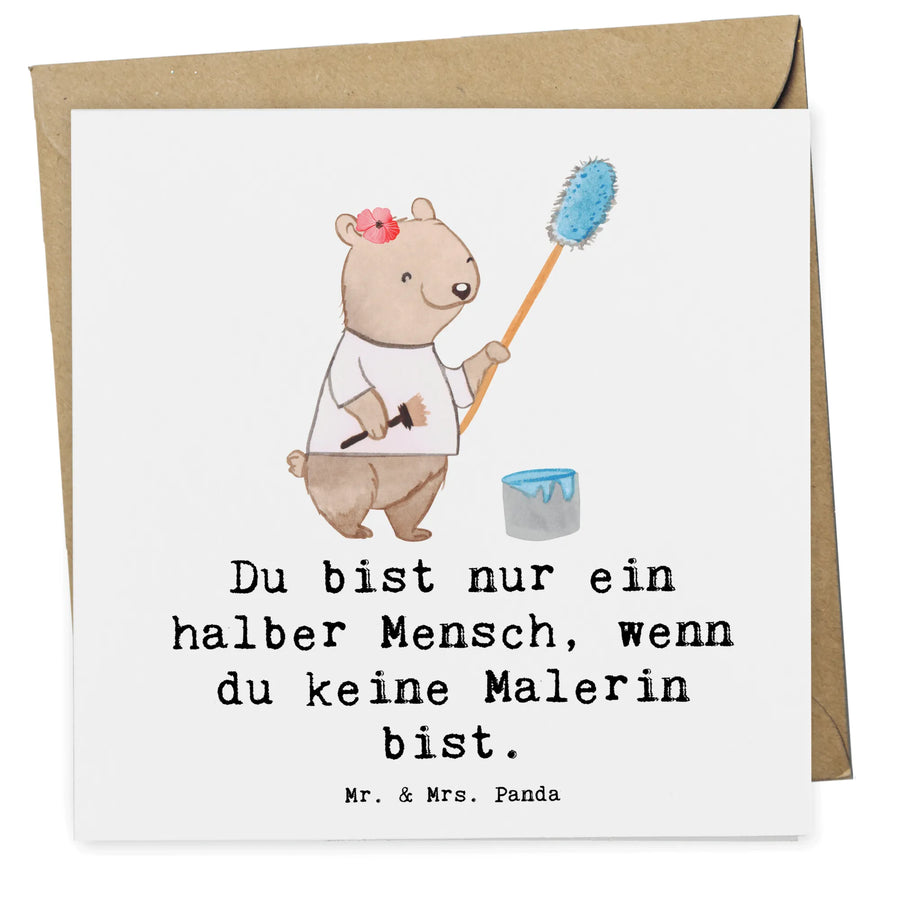 Unsere quadratische Deluxe Karte aus der Berufe-Kollektion von Mr. & Mrs. Panda ist ein liebevolles, hochwertiges Geschenk für jeden Anlass. Das zarte Aquarellmotiv zeigt eine süße, weibliche Bärendame mit Pinsel und Farbe und vermittelt Wärme, Anerkennung und Humor – ideal als Grußkarte, Glückwunschkarte zur Gesellenprüfung oder als Dankeschön an die Malermeisterin im Betrieb. 🎨💛