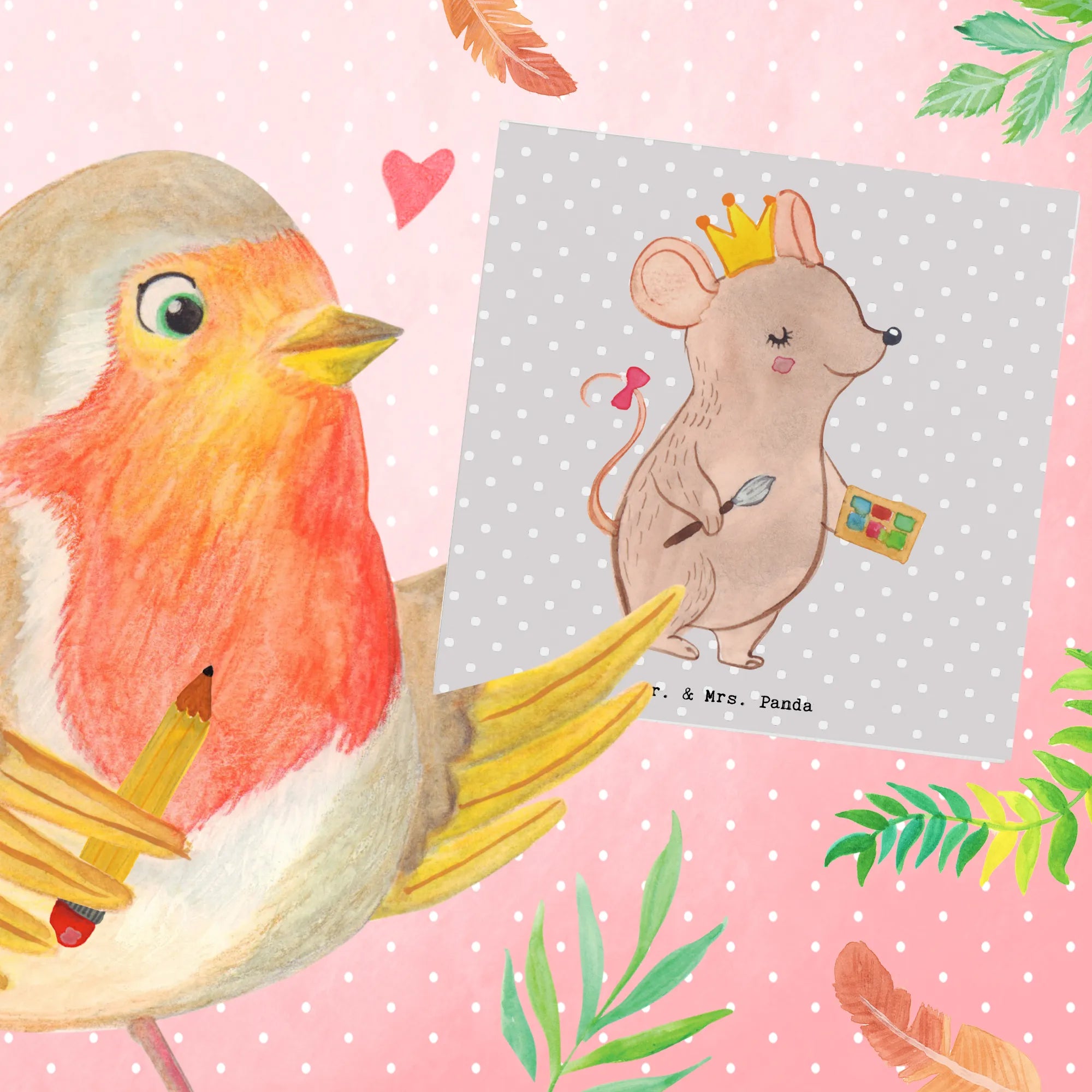 Die Deluxe Karte "Maskenbildnerin mit Herz" aus der kreativen Berufe Kollektion von Mr. & Mrs. Panda ist das perfekte Geschenk für jede talentierte Visagistin, Kosmetikerin oder Maskenbildnerin! Diese wunderschöne Karte ist nicht nur ein simples Stück Papier, sondern ein liebevolles Kompliment für die Kunst des Schminkens. Der süße Entwurf zeigt eine charmante Maus, die mit einem Lidschatten in der einen Hand und einem Schminkpinsel in der anderen Hand, die Farben des Lebens willkommen heißt. Es wird gesagt, dass man erst wirklich lebendig ist, wenn man seine Leidenschaft auslebt, und was könnte da besser passen, als eine Hommage an die Kunst des Make-ups?