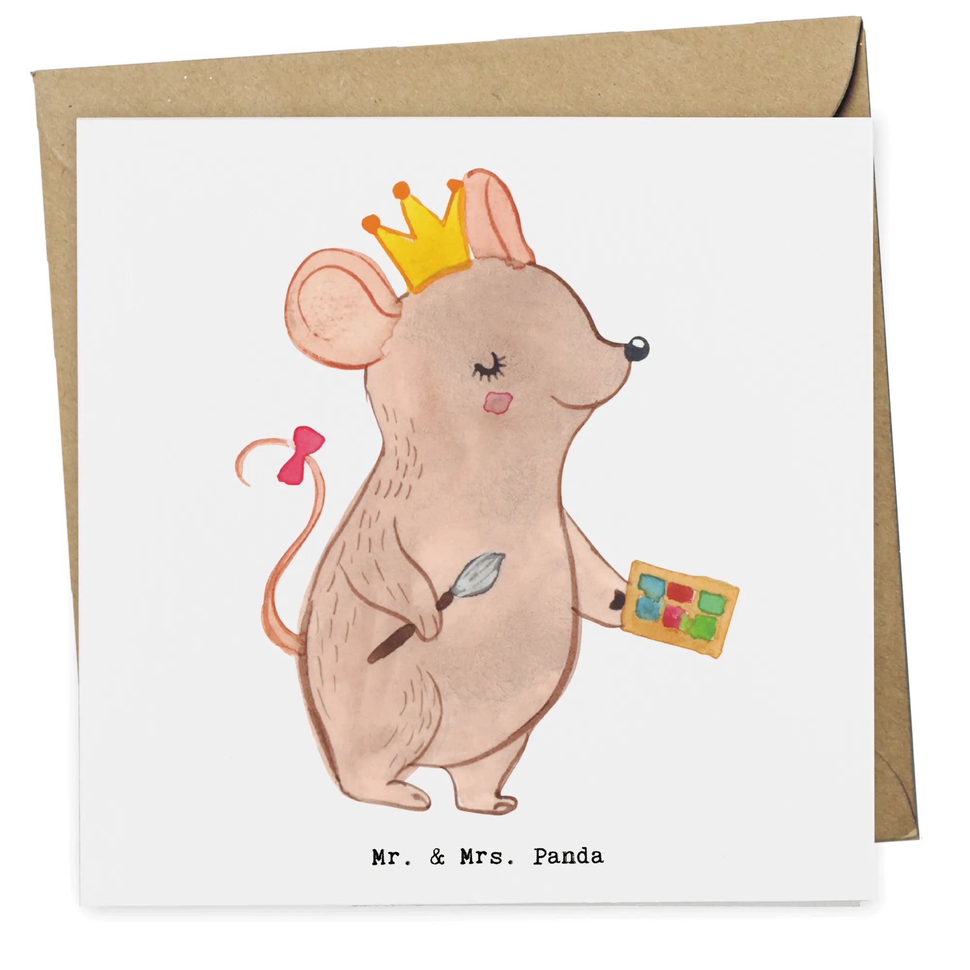 Entdecke die Deluxe Karte "Maskenbildnerin mit Herz" von Mr. & Mrs. Panda – das perfekte Geschenk für alle Kosmetikerinnen, Make-Up-Artists und Visagistinnen!