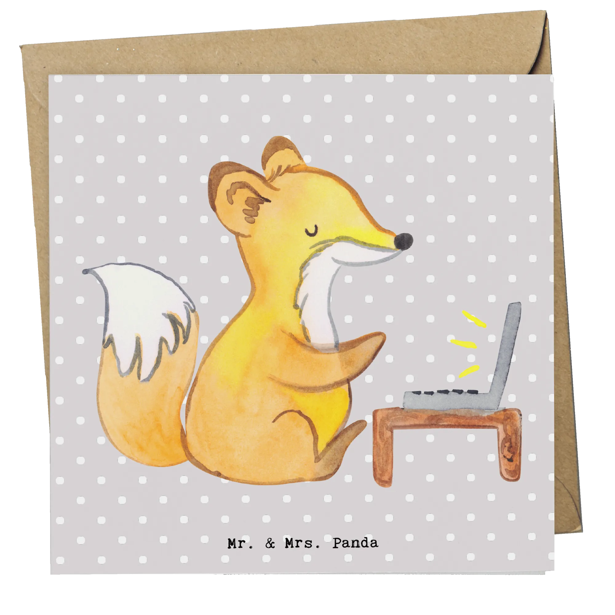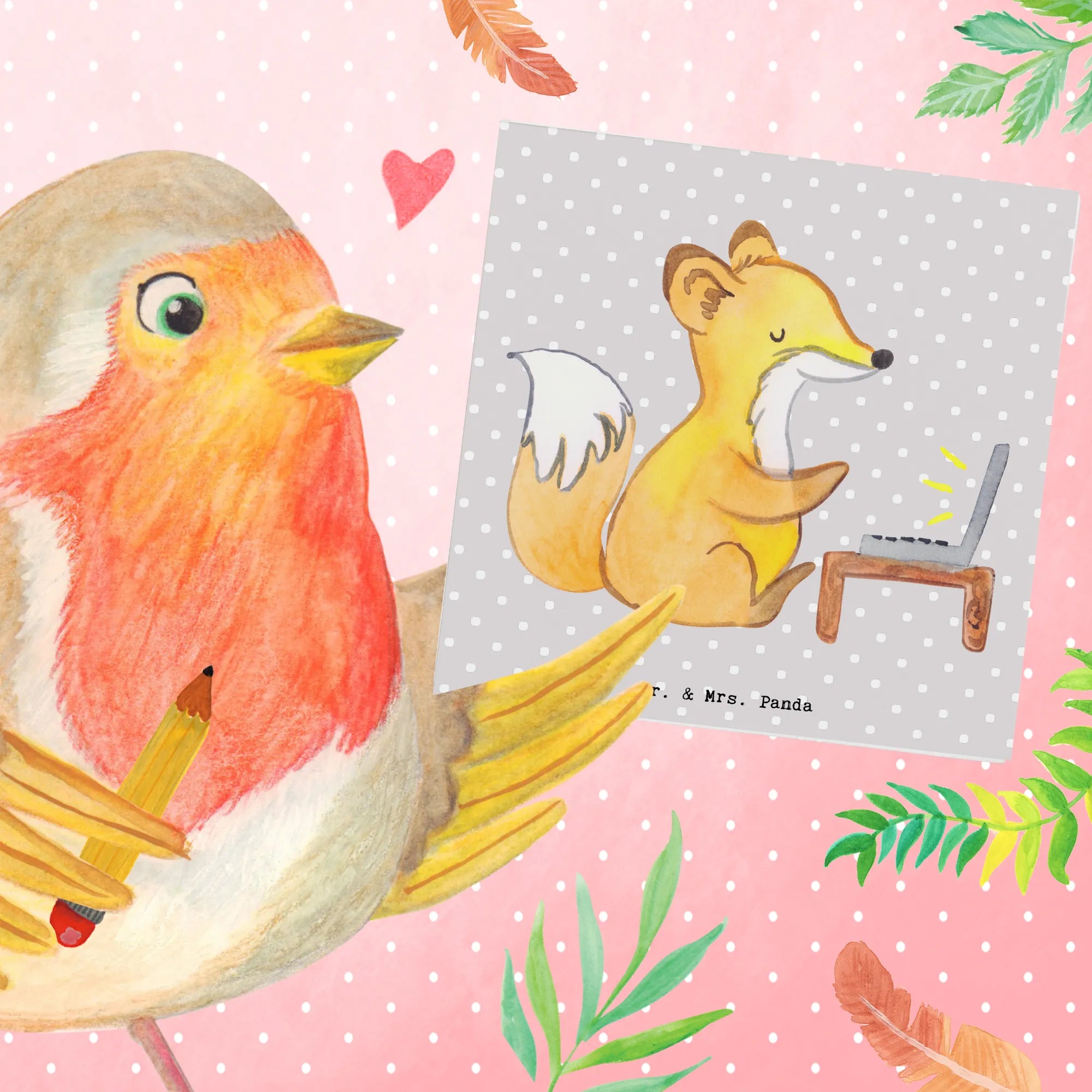 Diese hochwertige quadratische Karte misst 140 mm x 140 mm und ist aus edlem 300 Gramm Karton gefertigt. Ihre Vorderseite ist hochglänzend veredelt, während die Innenseite matt ist, perfekt für deine persönlichen Nachrichten. Der süße weibliche Fuchs, der an einer Schreibmaschine tippt, bringt jedem, der die Karte erhält, ein Lächeln ins Gesicht.