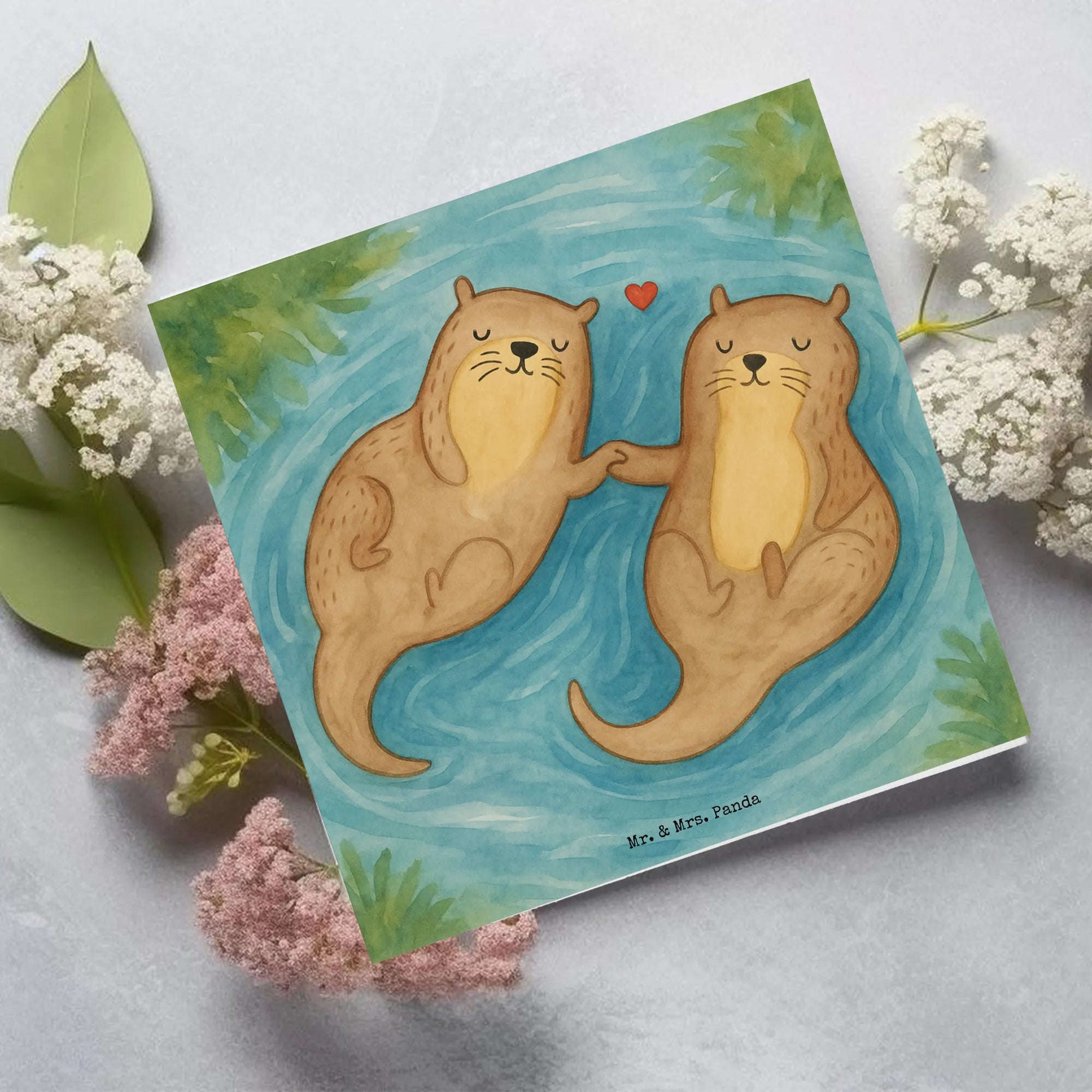 Mr. & Mrs. Panda Händchen haltende Otter - Liebevolles Geschenk mit 'I love you like no otter!' Motiv