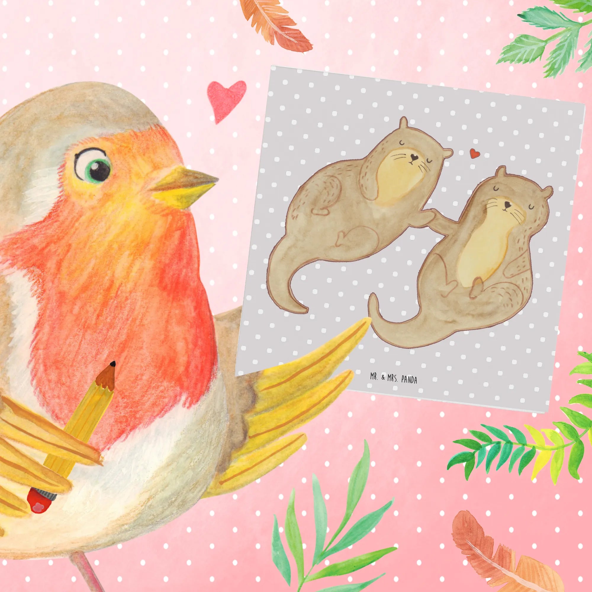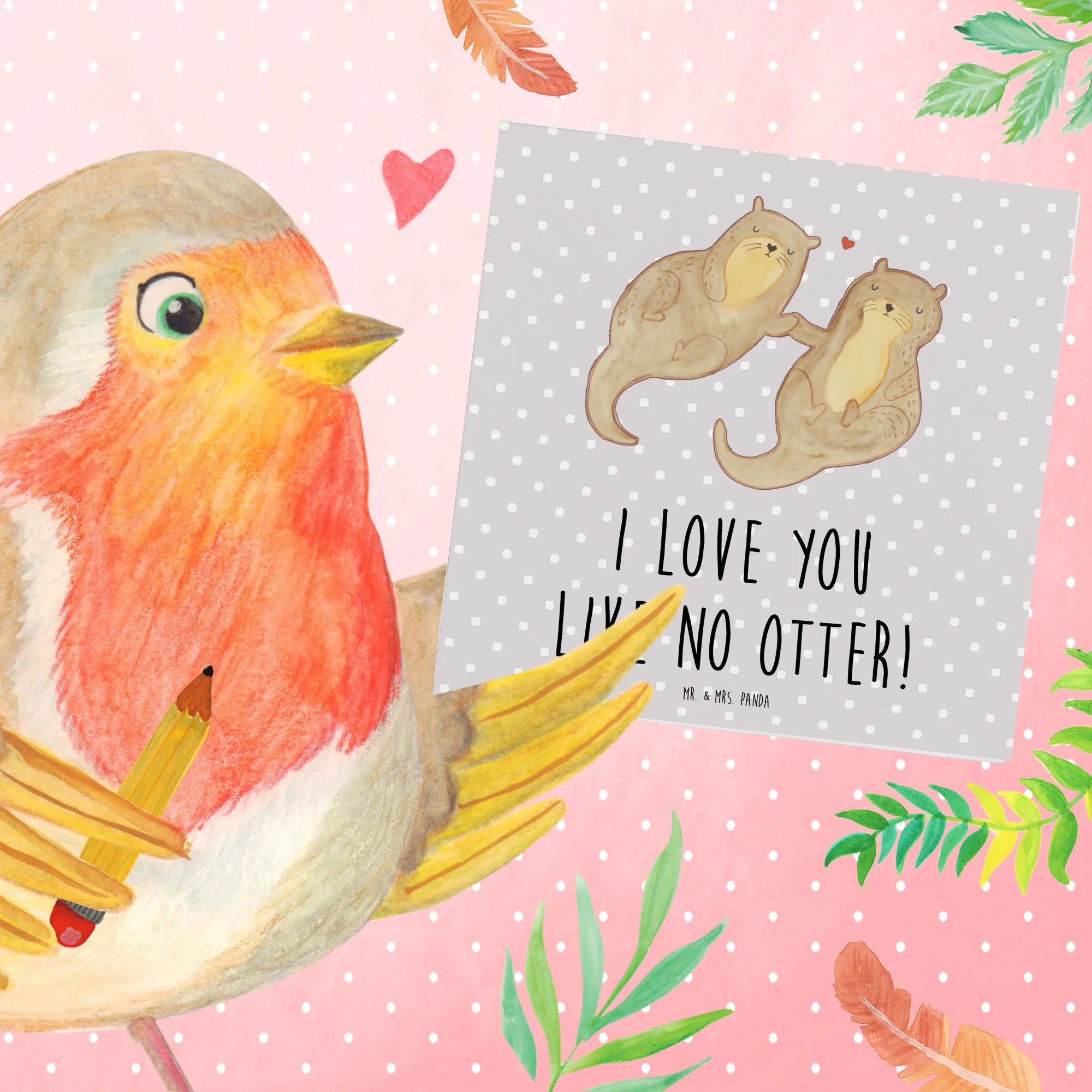 Entdecke die perfekte Grußkarte von Mr. & Mrs. Panda mit einem liebevollen Motiv von zwei händchenhaltenden Ottern. Diese Deluxe Karte ist nicht nur ein einfacher Gruß, sondern ein Stück Herz, das du teilen kannst!