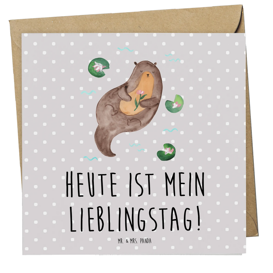 Deluxe Karte Otter Seerose - mit Spruch - Grau Pastell