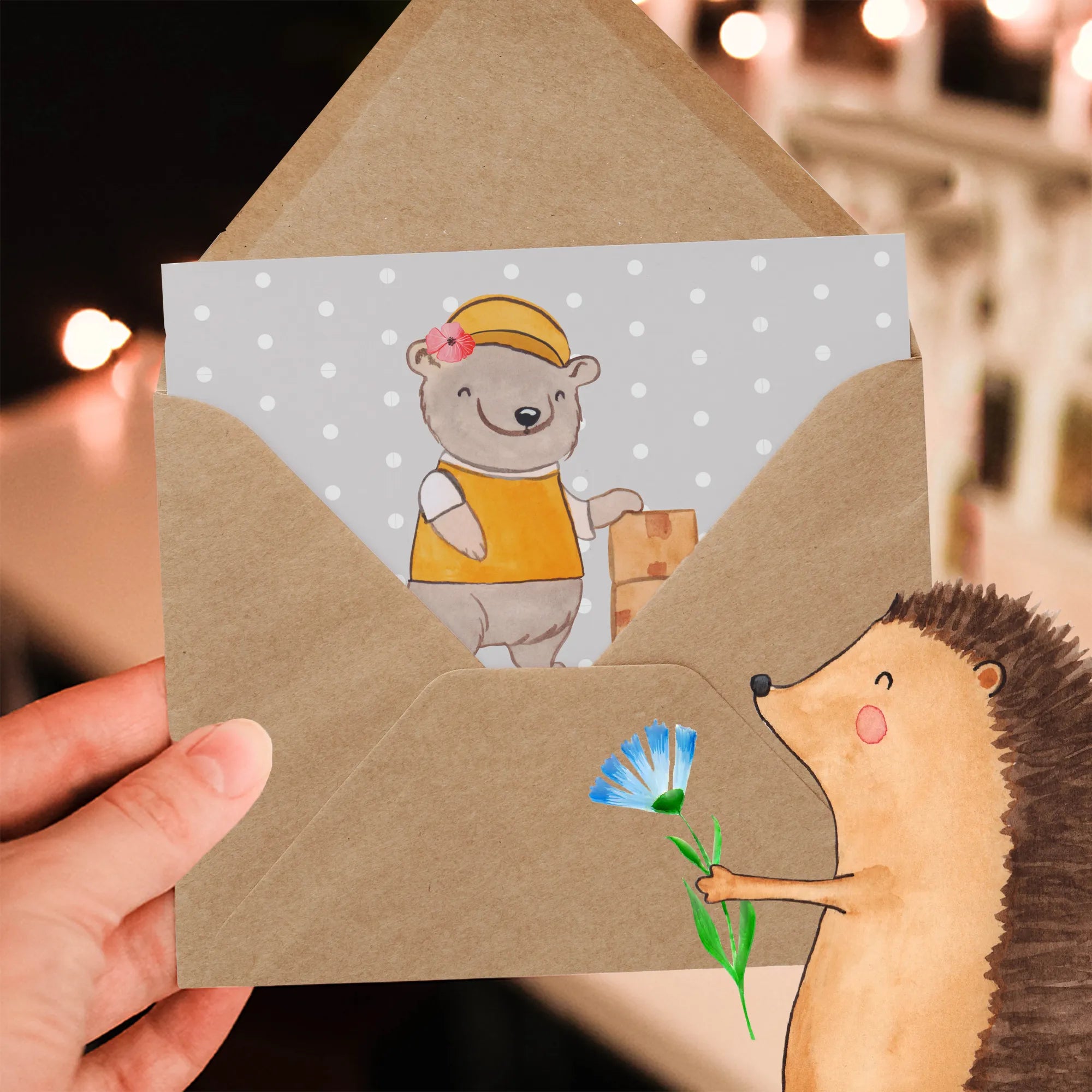 Während du denkst, dass Worte schwer fallen können, wird diese Karte deinem Publikum das Herz öffnen und ein Lächeln auf die Lippen zaubern. Verbreite das Gute, sage Danke und bringe Freude mit der "Paketzustellerin mit Herz" Karte von Mr. & Mrs. Panda. Perfekt, um das nächste große oder kleine Ereignis honorierend zu gestalten.