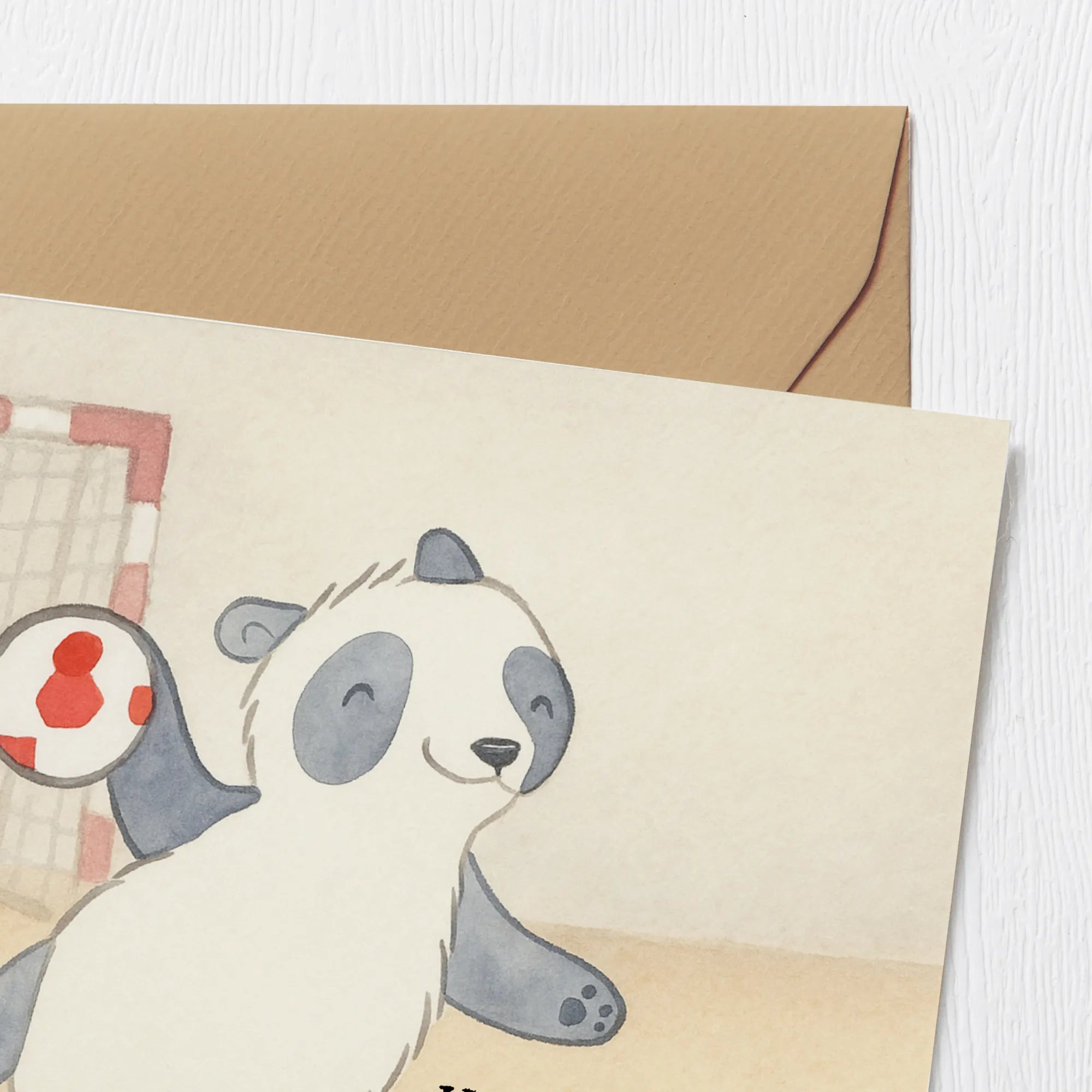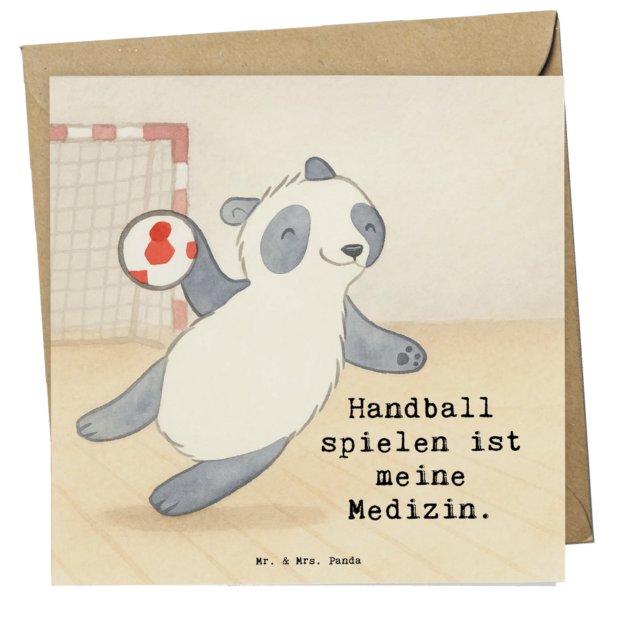Grußkarte Panda Handball spielen Design - mit Spruch