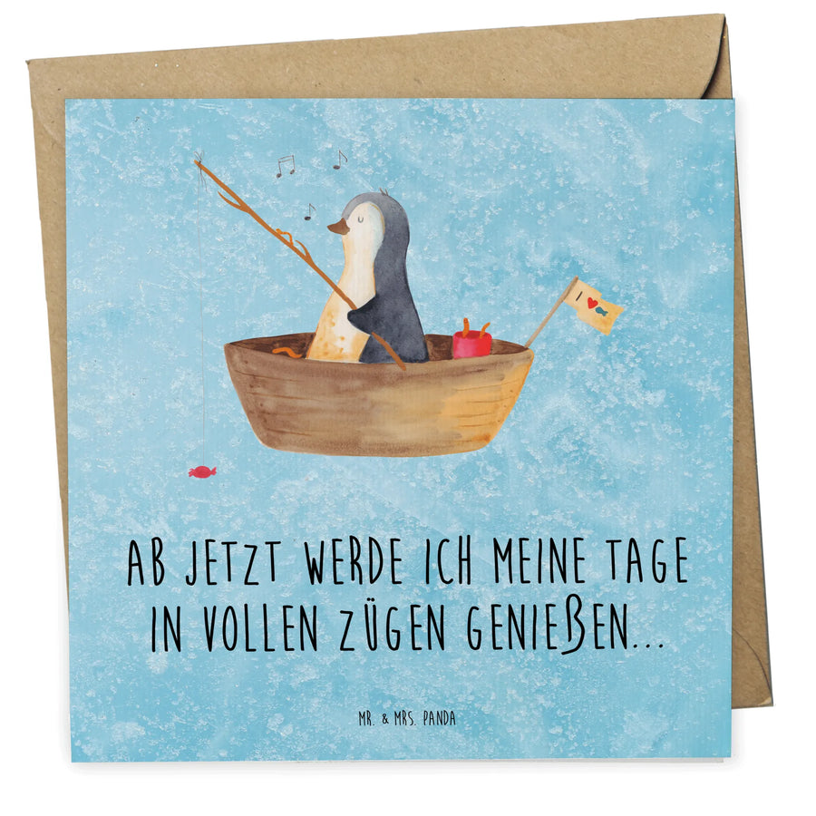 Die Deluxe Karte mit dem süßen Pinguin-Motiv auf dem Angelboot von Mr. & Mrs. Panda ist das perfekte Geschenk für viele Anlässe!