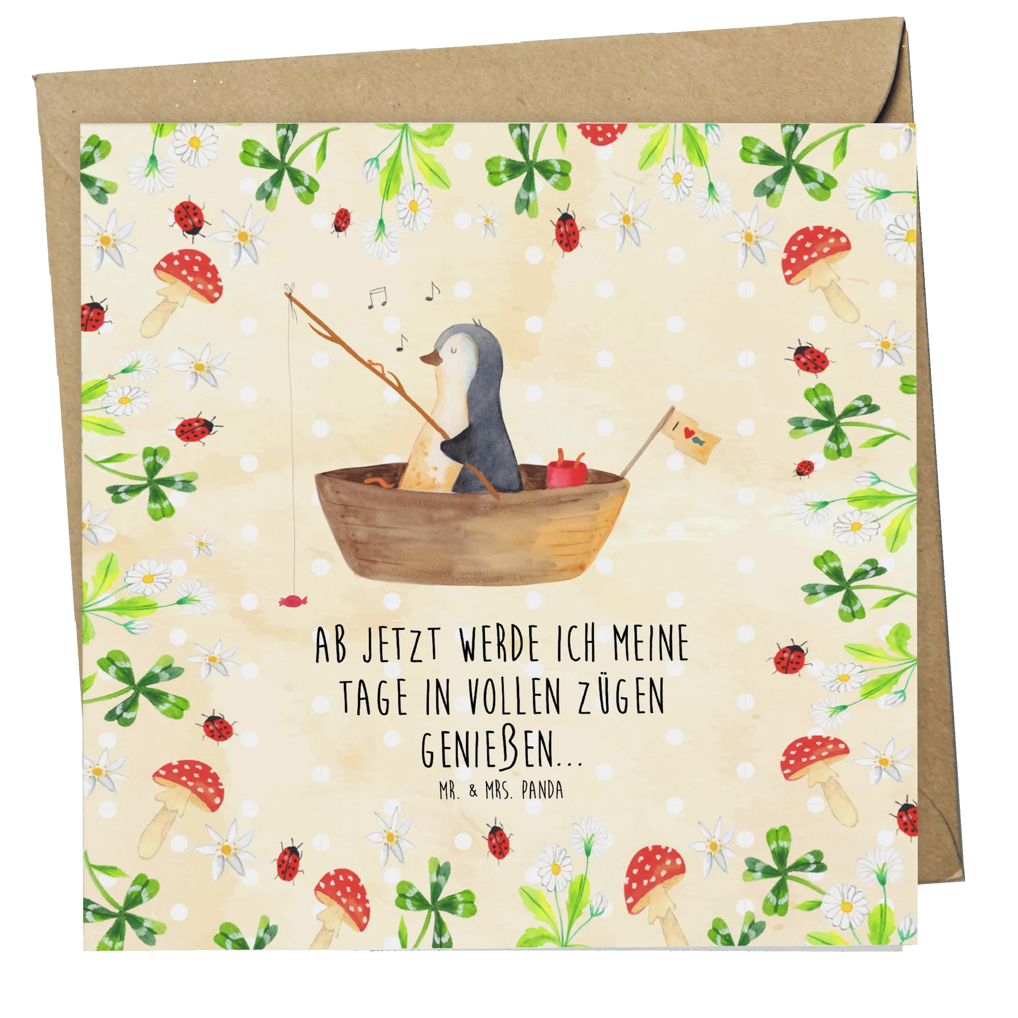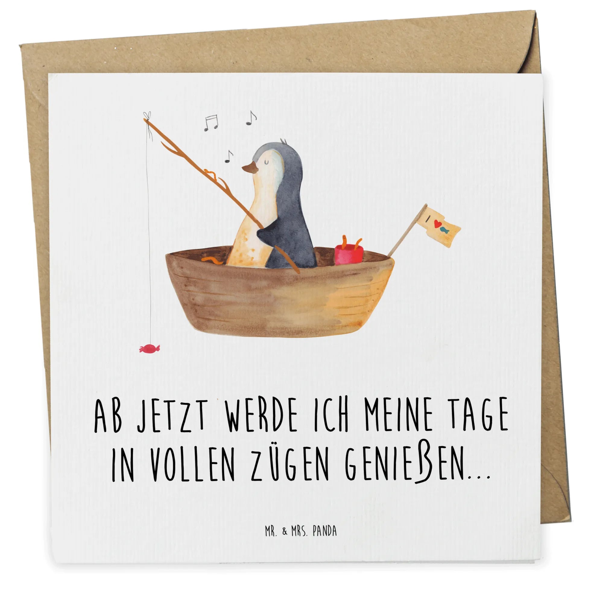 Die Deluxe Karte mit dem süßen Pinguin-Motiv auf dem Angelboot von Mr. & Mrs. Panda ist das perfekte Geschenk für viele Anlässe!