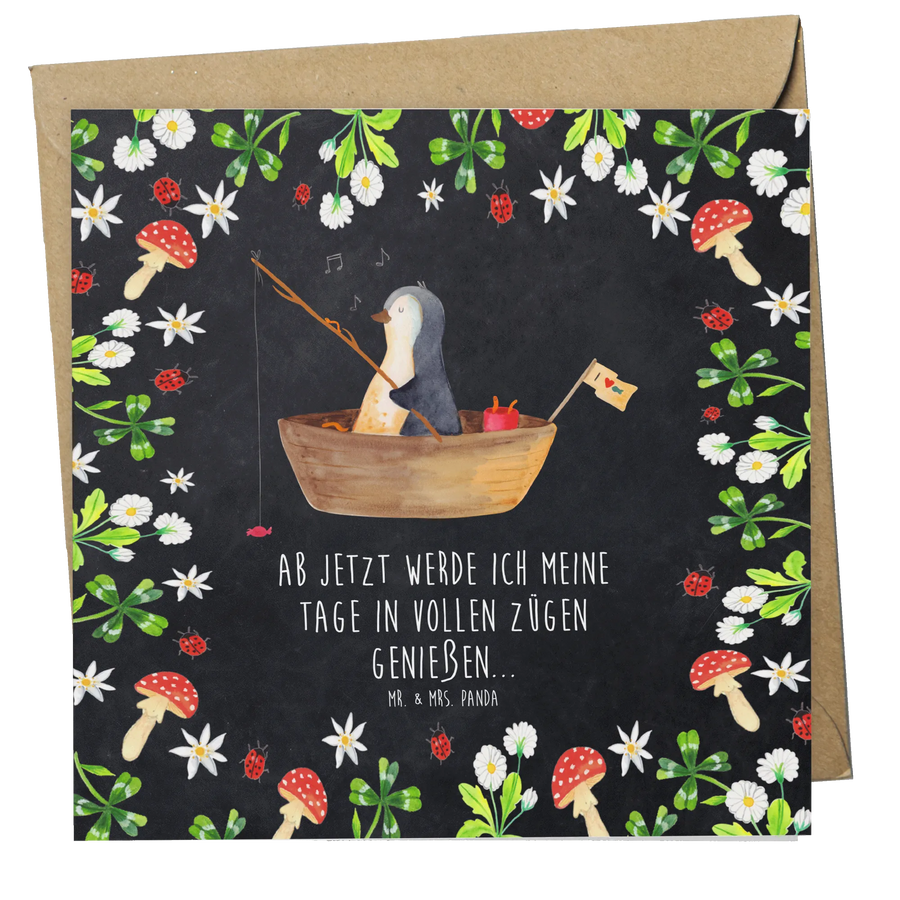 Deluxe Karte Pinguin Angelboot - mit Spruch - Kreidetafel