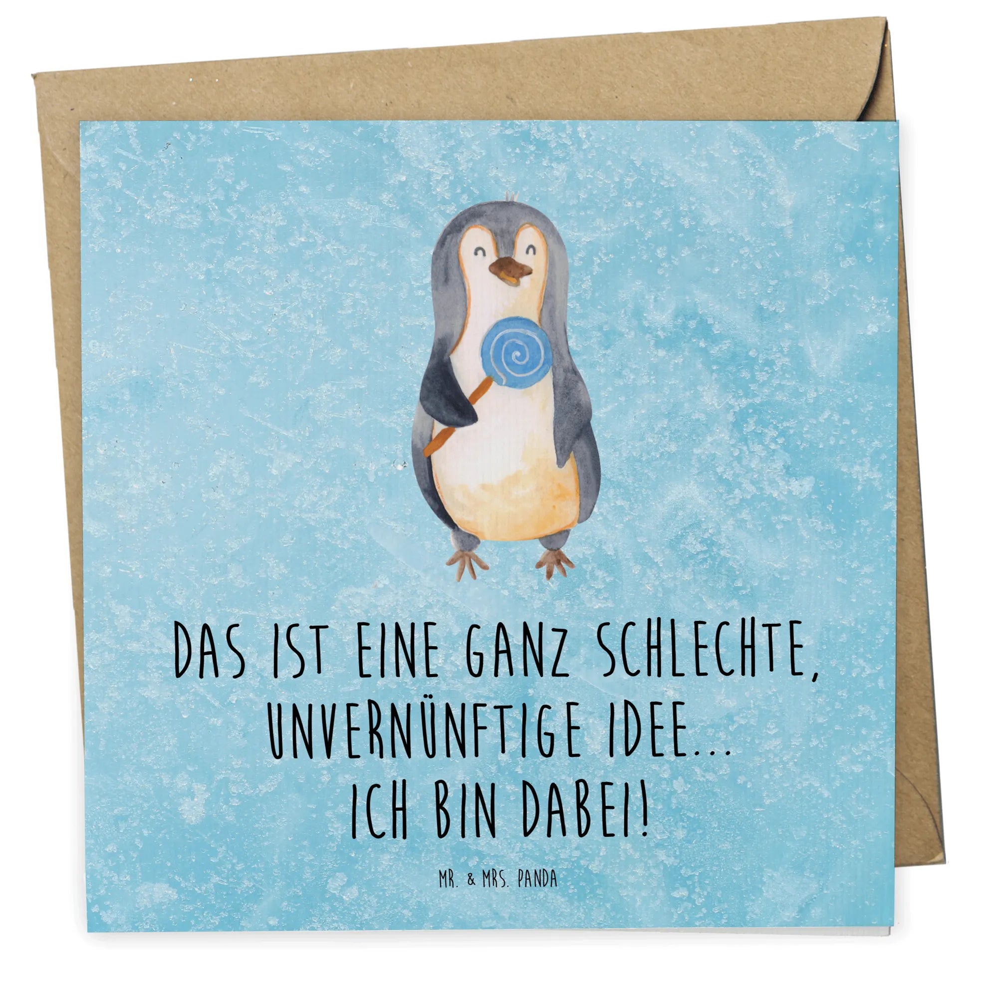 Diese außergewöhnliche und hochwertige Grußkarte von Mr. & Mrs. Panda zaubert jedem, der sie erhält, ein Lächeln ins Gesicht. Der kleine Pinguin mit seinem süßen Gesicht und dem schimmernden Lolli in der flauschigen Hand ist ein ganz besonderer Blickfang. Diese Karte öffnet sich zu einer blanko Innenseite, die dir genügend Platz bietet, um eine liebevolle Nachricht oder eigene Glückwünsche zu hinterlassen.