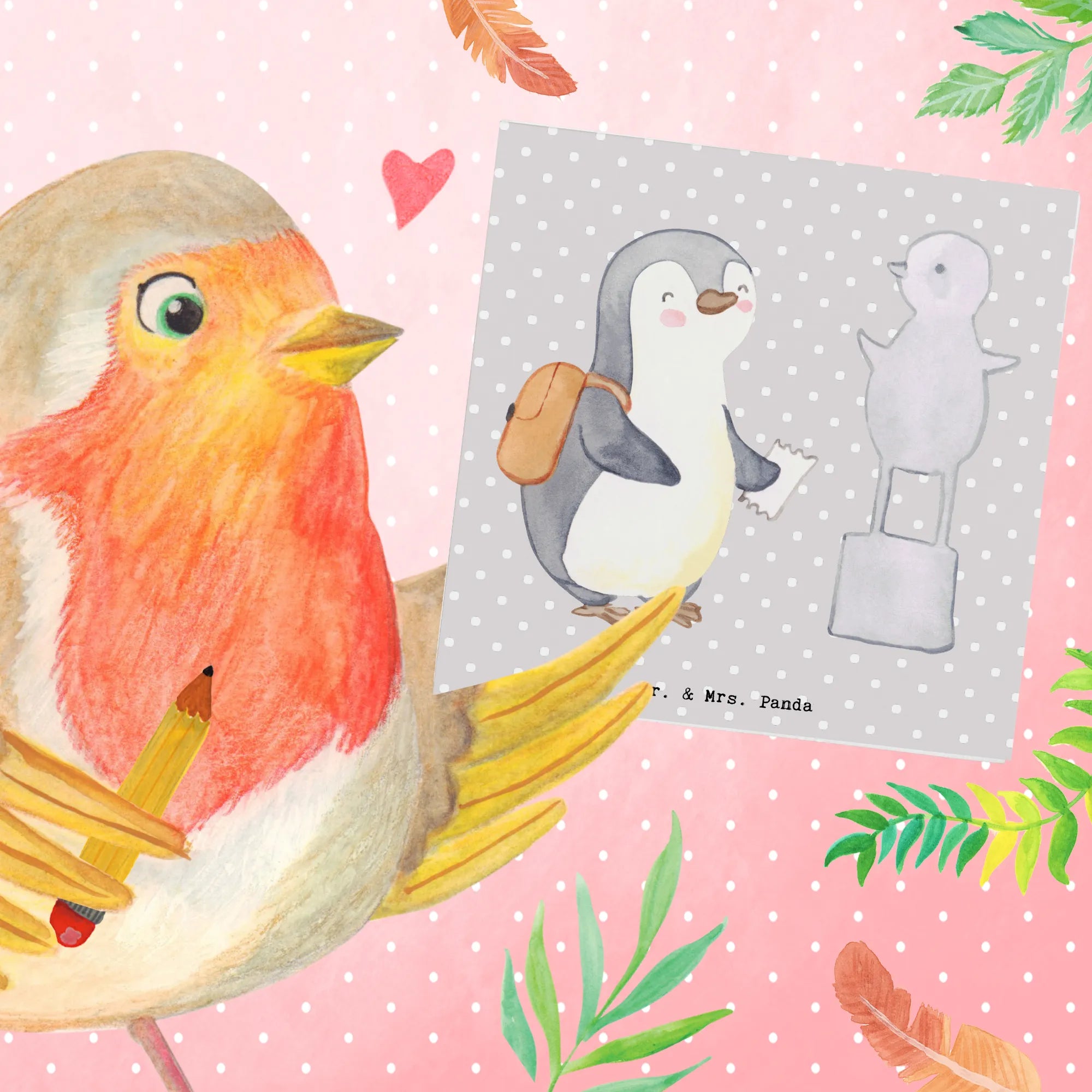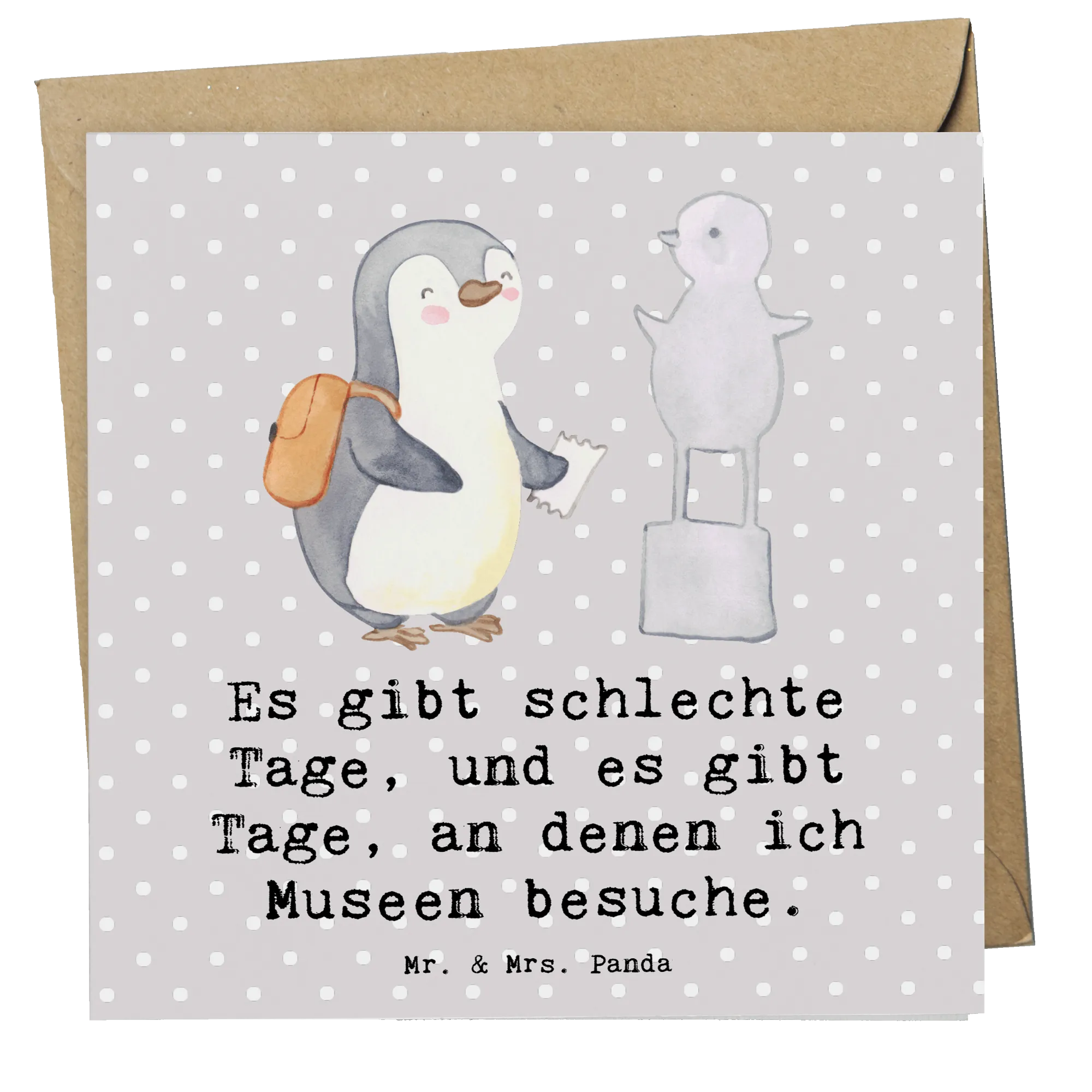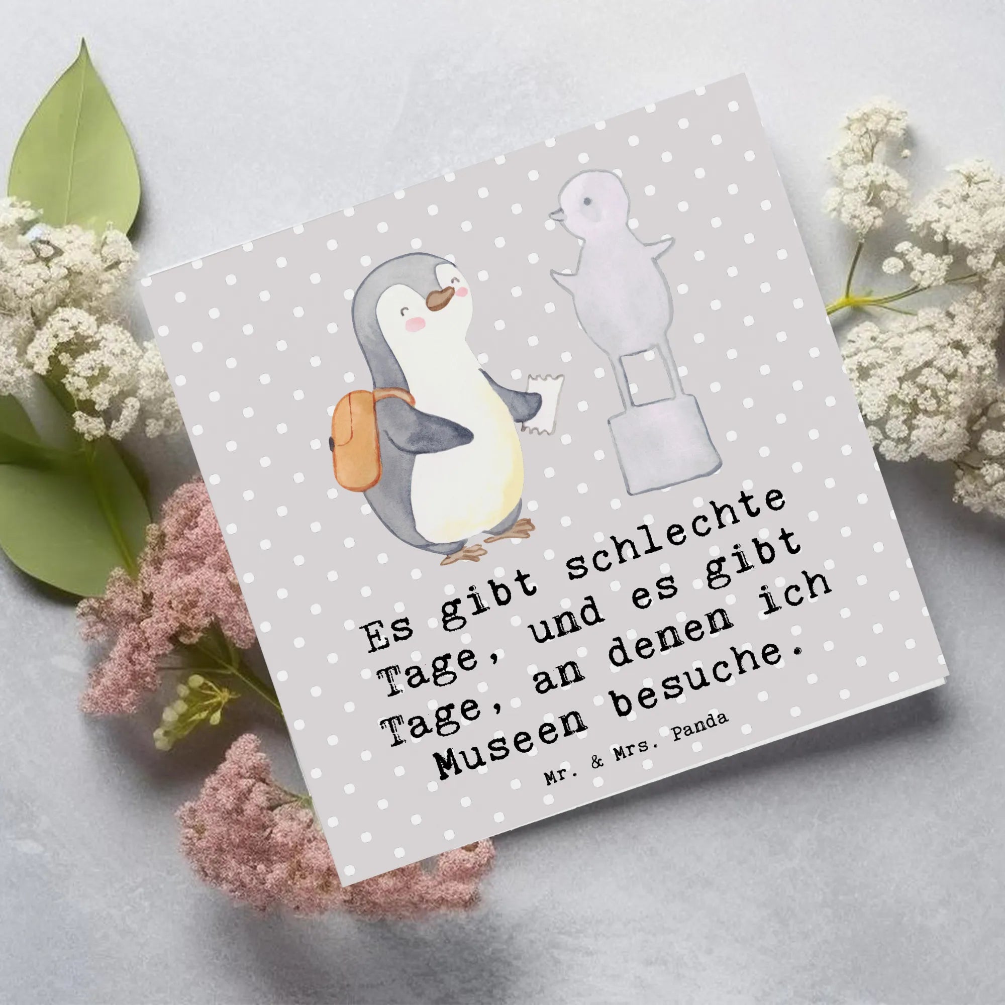 Deluxe Karte Pinguin Museum besuchen - mit Spruch - Grau Pastell