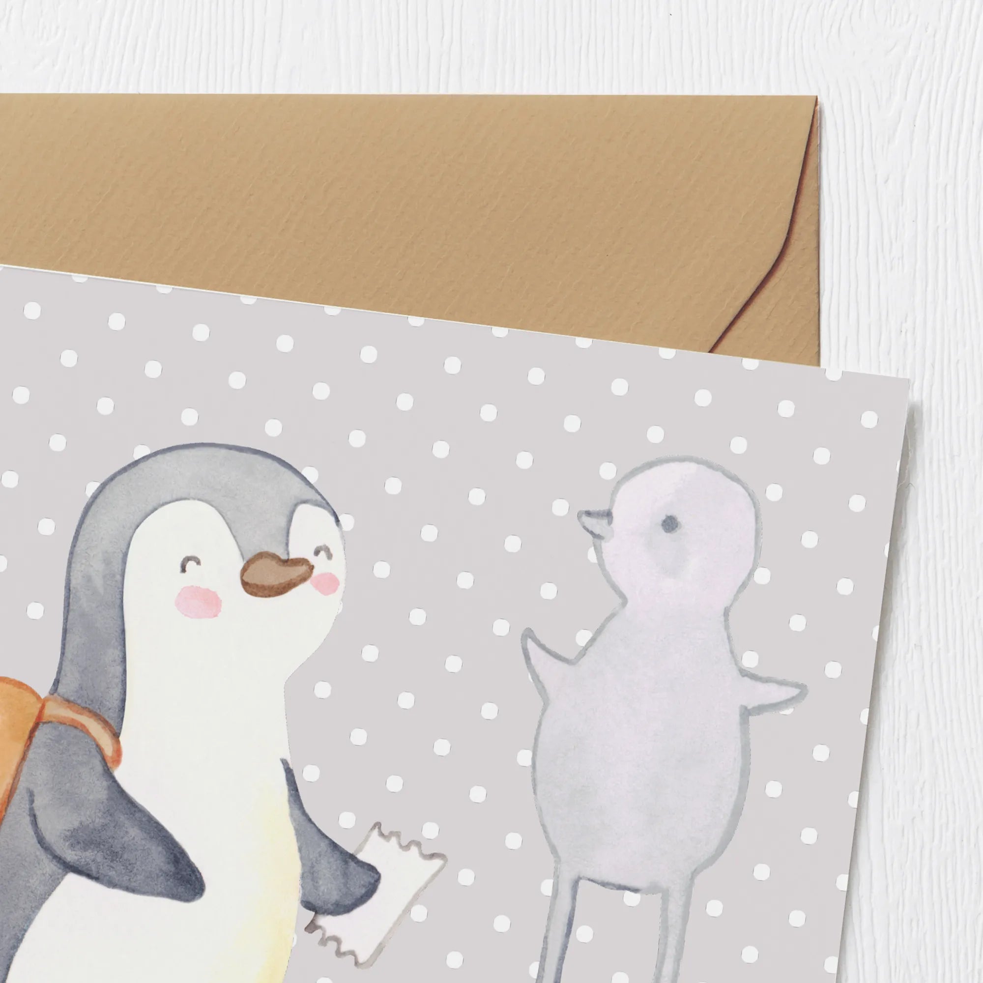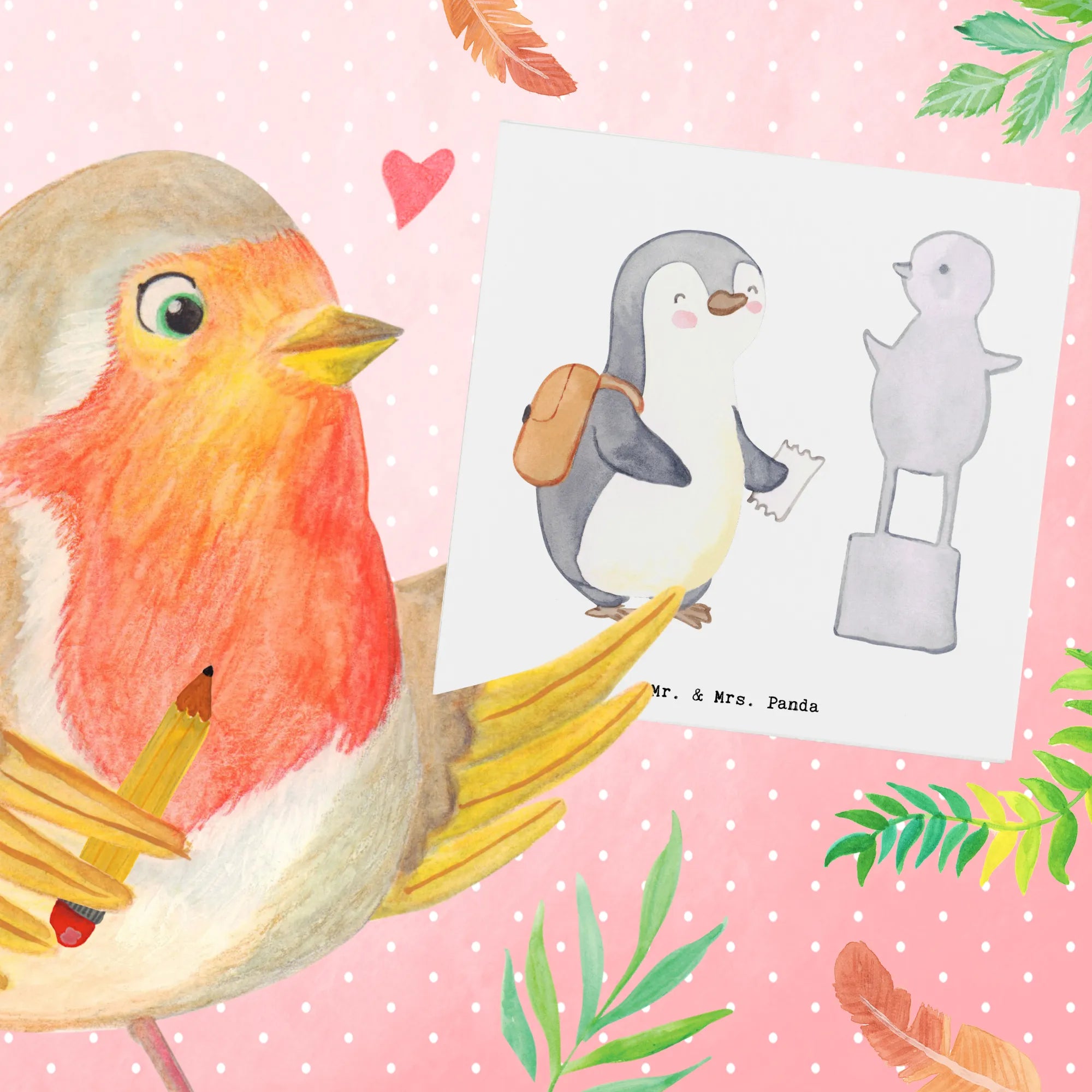 Der charmante Pinguin, der bewundernd vor einer Pinguinstatue steht, und das Museumsticket, das er in der Hand hält, machen diese Karte zu einem echten Hingucker. Sie eignet sich hervorragend für individuelle Grüße oder Glückwünsche zu zahlreichen Anlässen wie Geburtstagen, Hochzeiten oder Jubiläen.