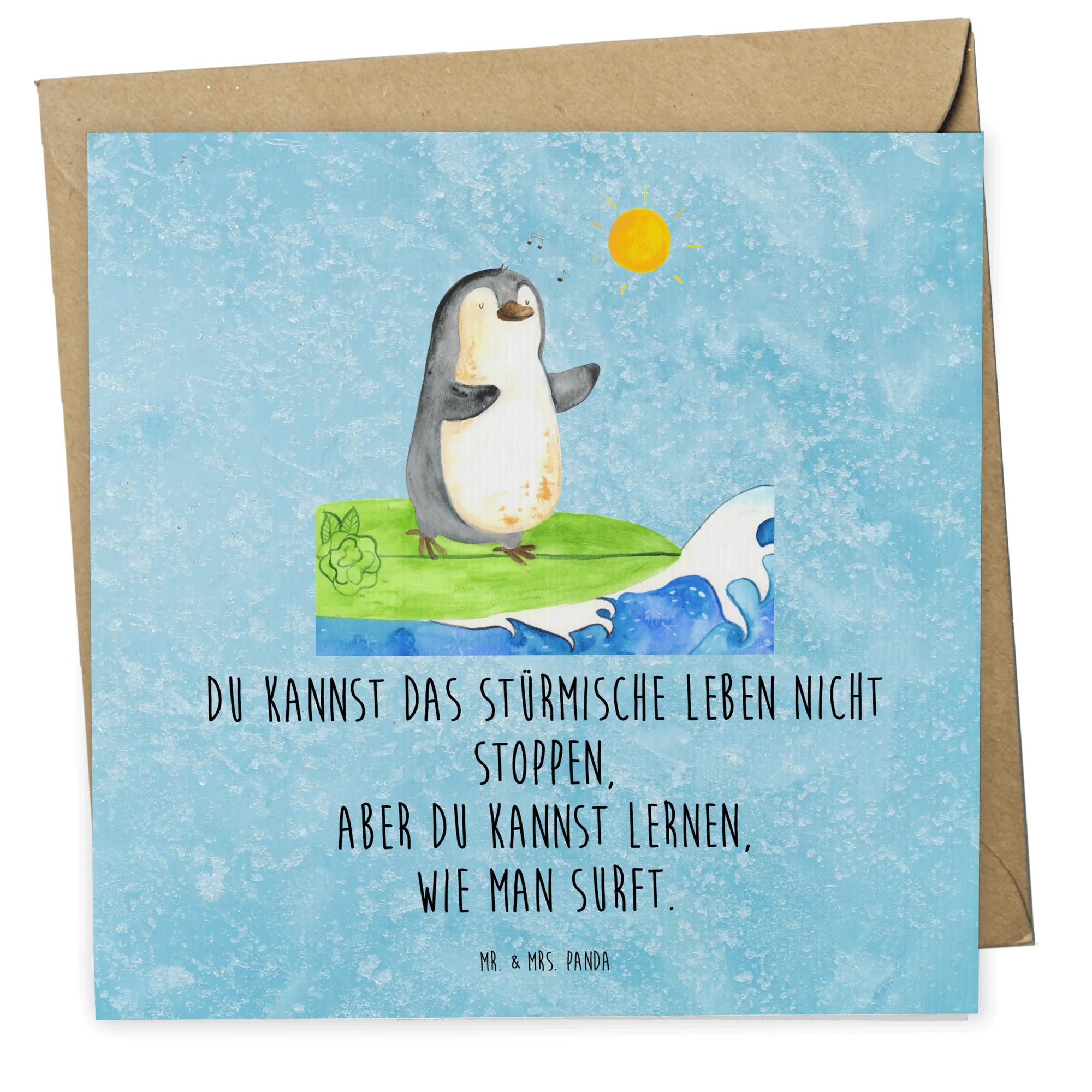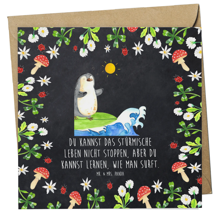 Entdecke die zauberhafte Deluxe Karte mit dem süßen Pinguin Surfer aus der Pinguin-Kollektion von Mr. & Mrs. Panda! Diese wunderschöne und hochwertige quadratische Karte ist perfekt, um Deine besten Wünsche und Glückwünsche zu besonderen Anlässen zu übermitteln.