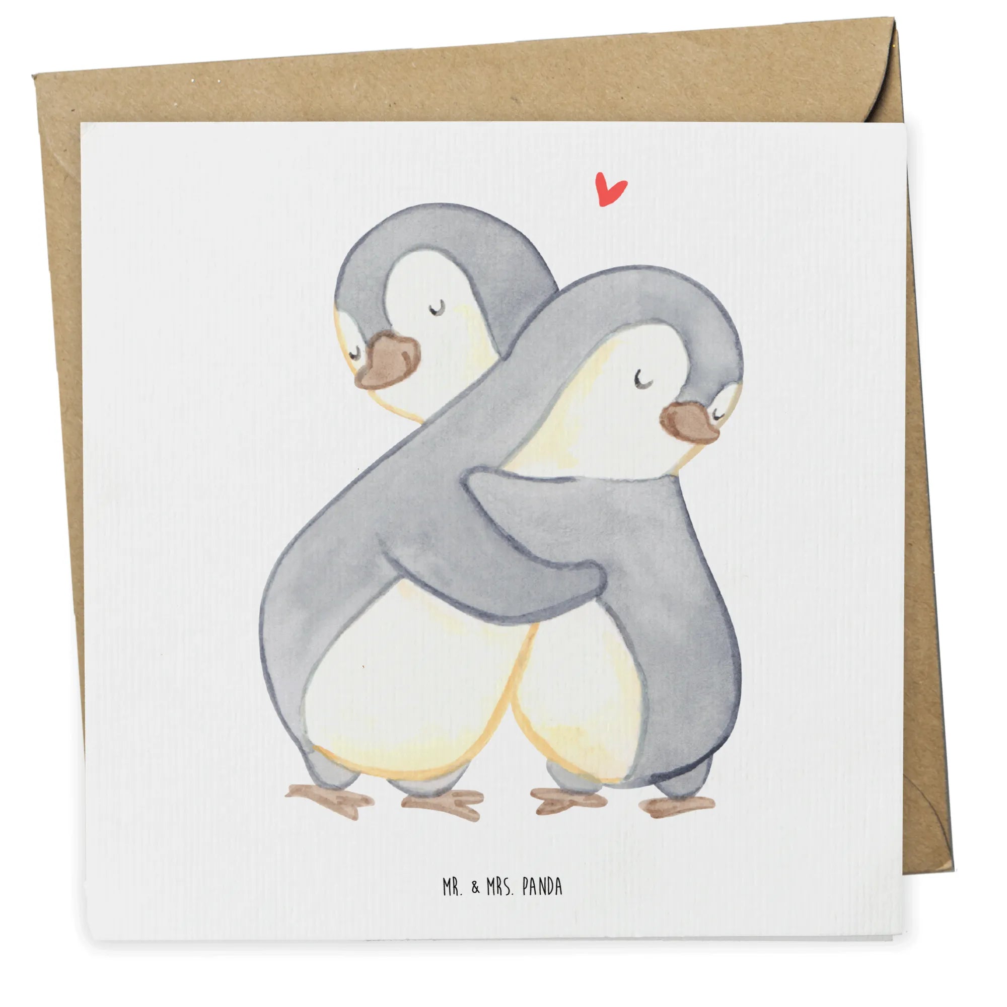 Das hochwertige Design der Karte zeigt ein Paar Pinguine, die sich innig umarmen, und strahlt dadurch pure Liebe und Verbundenheit aus. Die sanften Farben und das harmonische Motiv bringen nicht nur sofort ein Lächeln ins Gesicht, sondern vermitteln auch ein Gefühl von Geborgenheit und Wärme.