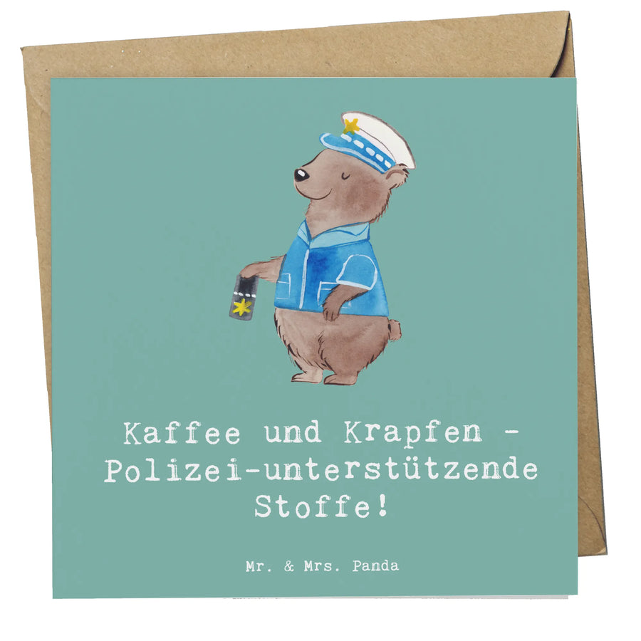 Diese hochwertige Karte ist nicht nur ein schöner Blickfang, sondern auch eine besondere Art, Dankbarkeit oder Anerkennung auszudrücken. Mit einem liebevoll gestalteten Motiv, das einen fröhlichen Polizisten zeigt, und dem witzigen Spruch "Kaffee und Krapfen - Polizei-unterstützende Stoffe!" wird sie garantiert ein Lächeln auf die Gesichter Deiner Freunde, Kollegen oder Verwandten zaubern.