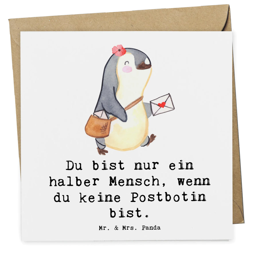 Entdecke die zauberhafte Deluxe Karte Postbotin mit Herz aus der Kollektion Berufe von Mr. & Mrs. Panda! Diese wundervolle, hochwertige quadratische Karte ist ein ganz besonderes Geschenk für alle, die im Briefdienst arbeiten, sei es als Postbotin, Briefzustellerin oder Postlerin. Mit ihrem süßen Design und dem liebevollen Spruch "Du bist nur ein halber Mensch, wenn du keine Postbotin bist" zeigt sie auf kreative Weise die Wertschätzung für diesen essenziellen Beruf.