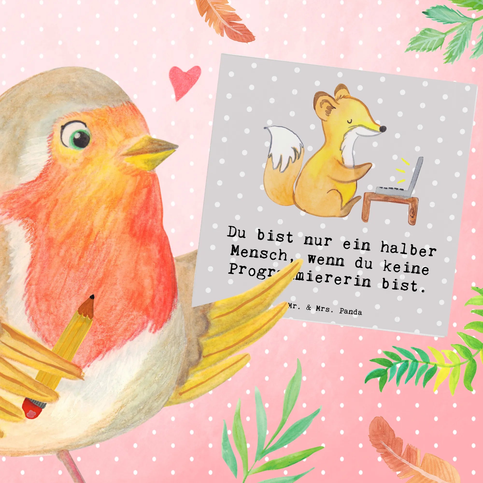 Diese Deluxe Karte ist ein Muss für jede Programmiererin und ein echter Hingucker in der kreativen Berufe Kollektion von Mr. & Mrs. Panda. Wenn Du auf der Suche nach dem perfekten Geschenk für Deine Kollegin bist, die in der IT-Branche arbeitet, dann ist diese Karte genau das Richtige für Dich. Denn am Ende des Tages wissen wir alle: "Du bist nur ein halber Mensch, wenn du keine Programmiererin bist!" Mache jemandem eine Freude und zeige, dass Du ihre Fähigkeiten schätzt – mit dieser süßen und herzlichen Karte. Sie wird sicher Deine Wertschätzung und Zuneigung zu schätzen wissen.