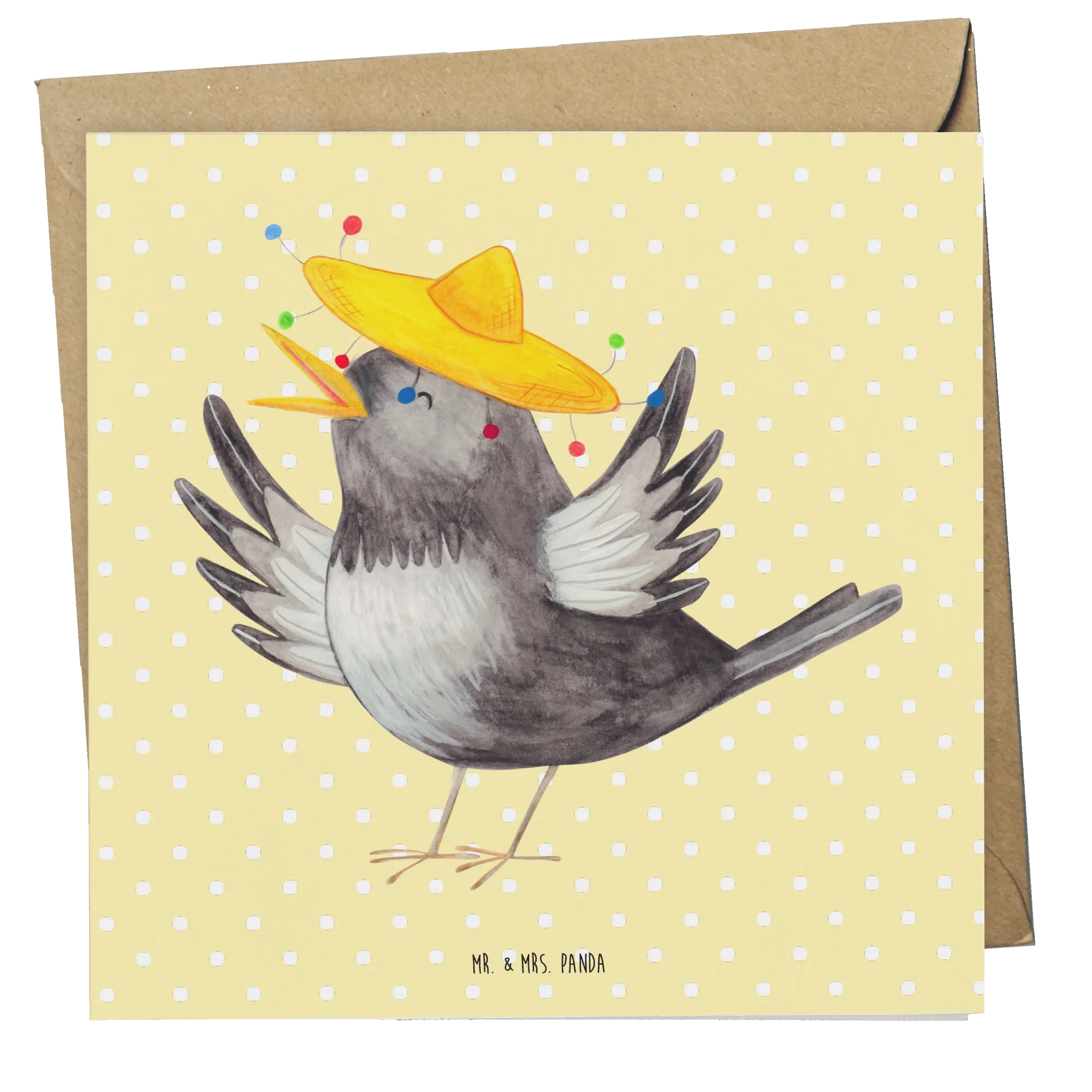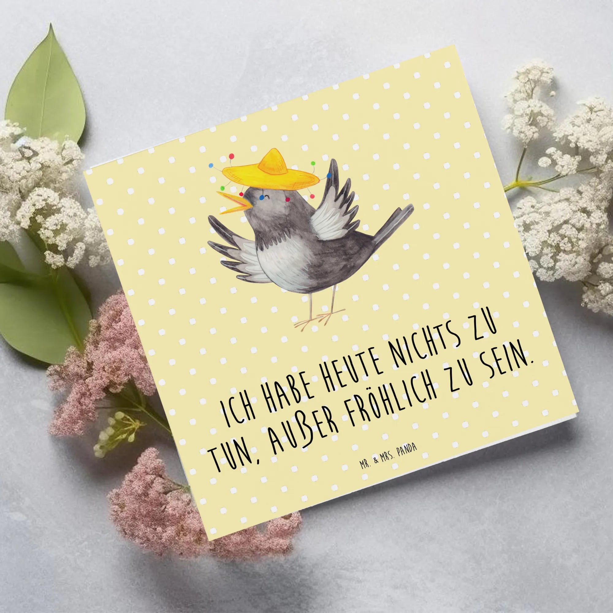 Deluxe Karte Rabe Sombrero - mit Spruch - Gelb Pastell