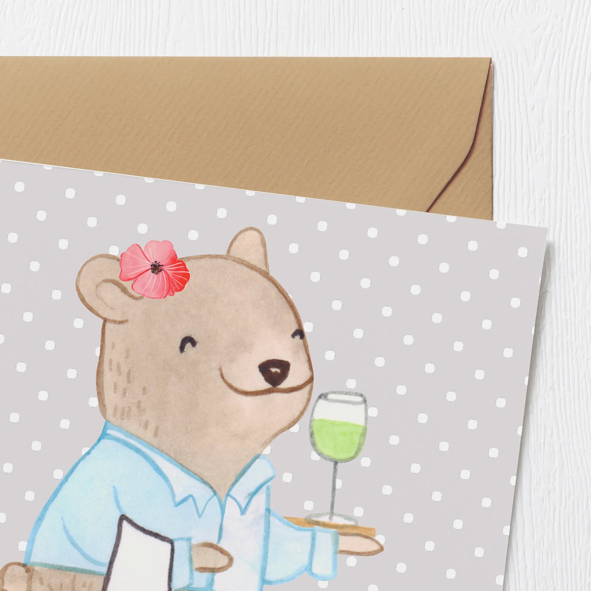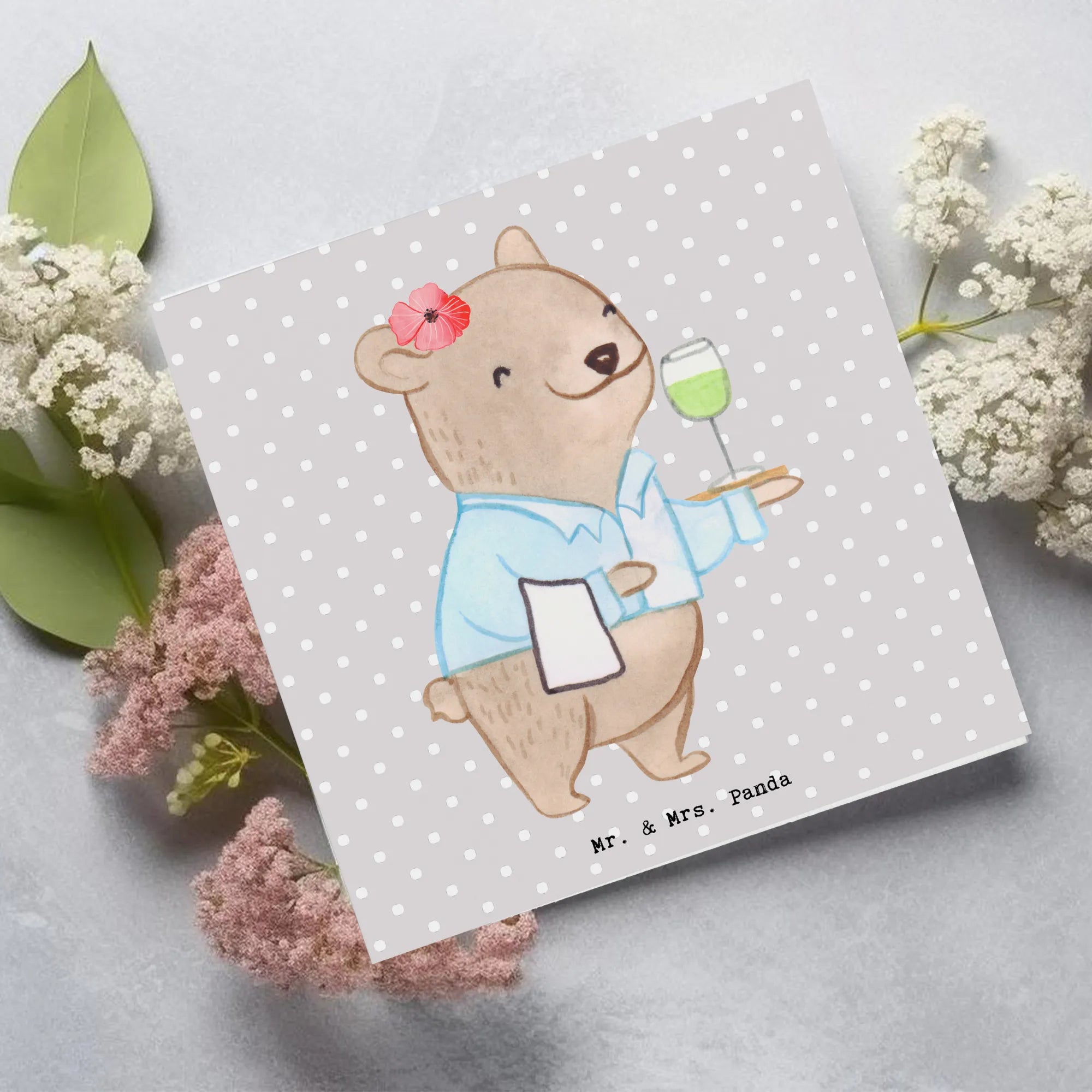 Zeige deinen Respekt und deine Wertschätzung für die Dienstleistungsbranche und lass deine Liebsten wissen, wie wichtig sie sind – mit der Deluxe Karte "Restaurantfachfrau mit Herz" aus der Berufe Kollektion von Mr. & Mrs. Panda!