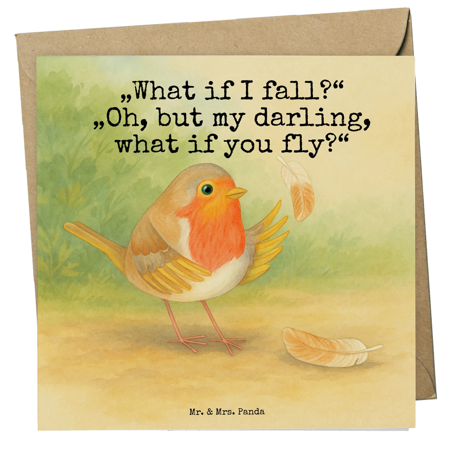 In der Stille des Morgens steht ein kleines Rotkehlchen am Rand des Unbekannten, die zarten Flügel bereit, sich aufzuschwingen. „What if I fall? Oh, but my darling, what if you fly?“ ist nicht nur ein Satz, es ist eine Philosophie, die das kleine Wesen und auch uns Menschen begleitet. Dieses Motiv von Mr. & Mrs. Panda steckt voller Tiefe und Inspiration. Es fordert uns auf, über den eigenen Schatten zu springen und zu erkunden, was jenseits unserer Ängste liegt. Ein liebevoller Stoß in Richtung der unendlichen Weiten, die wir erobern können, wenn wir nur den Mut dazu finden.