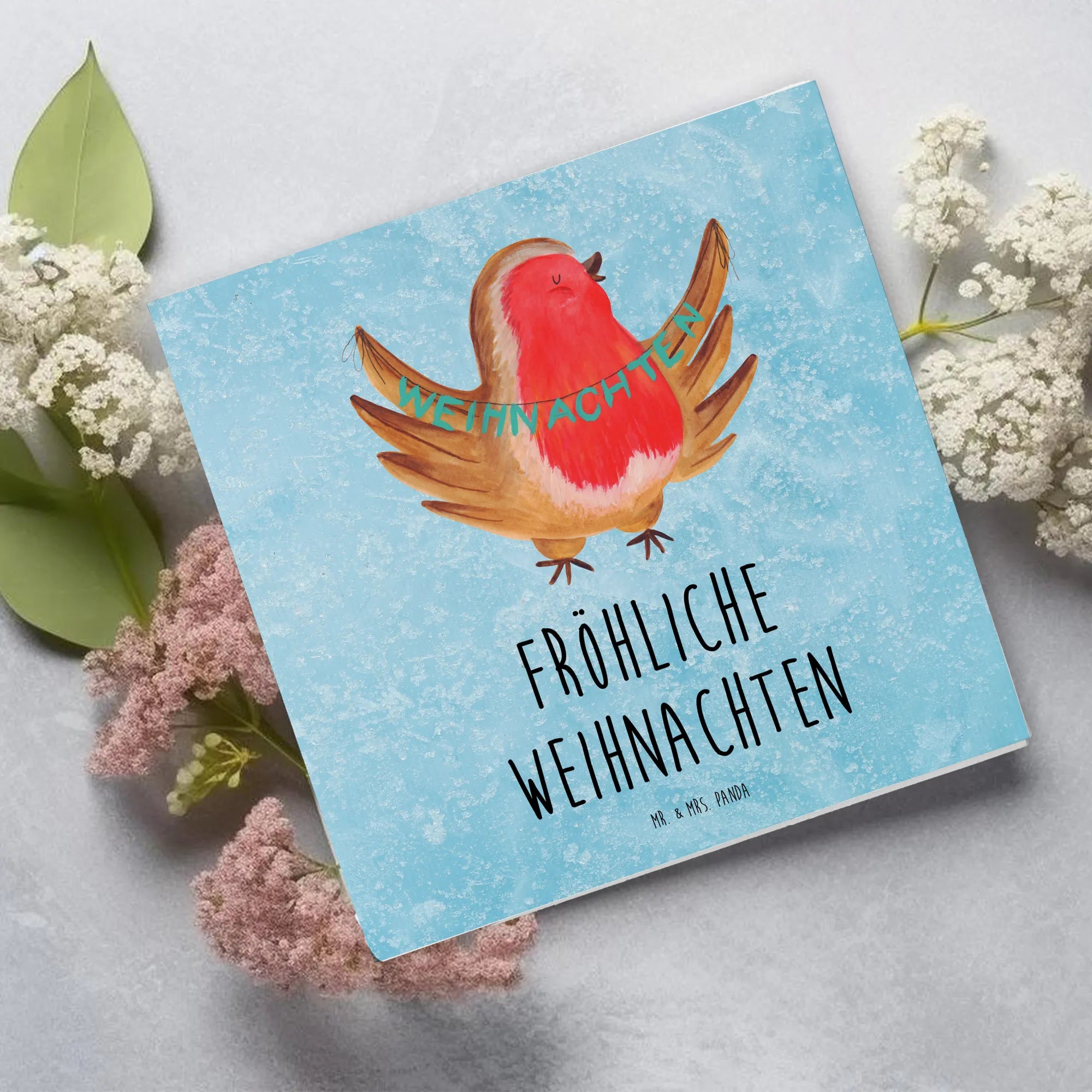 Deluxe Karte Rotkehlchen Weihnachten - mit Spruch - Eisblau