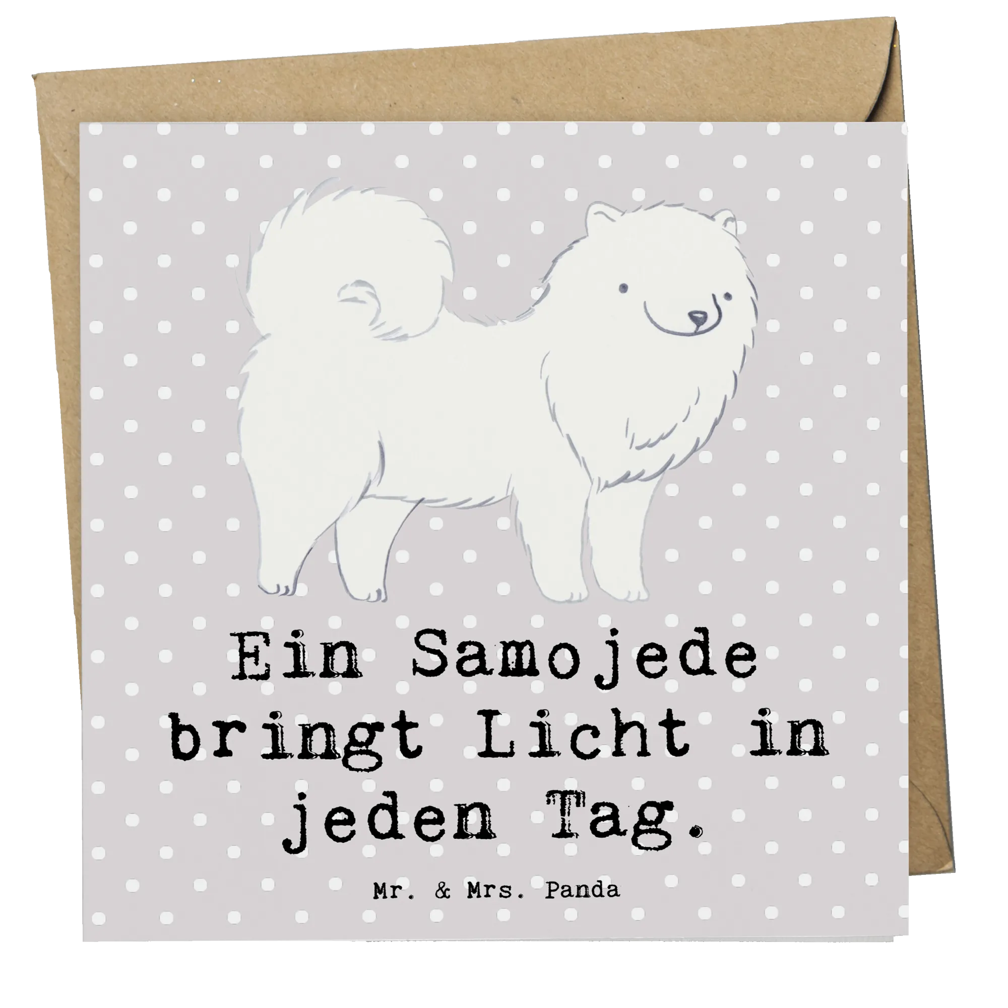 Unsere Deluxe Karte Samojede aus der liebevollen Hunderassen-Kollektion von Mr. & Mrs. Panda ist mehr als nur eine Grußkarte. Auf der Vorderseite findest Du ein zartes Aquarell des Samojeden und den herzlichen Spruch: „Ein Samojede bringt Licht in jeden Tag.“ Dieses Motiv vereint Humor, Wärme und Stil und ist perfekt für alle Samojeden-Fans.