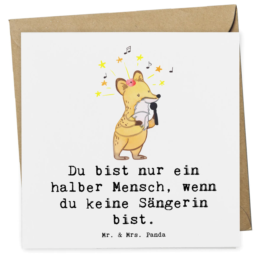 Die Karte misst 140 mm x 140 mm und besteht aus hochwertigem 300 Gramm Karton, der sowohl matt als auch glänzend veredelt ist. Die Vorderseite ist mit dem motivierenden Spruch "Du bist nur ein halber Mensch, wenn du keine Sängerin bist" bedruckt, was sie besonders macht.