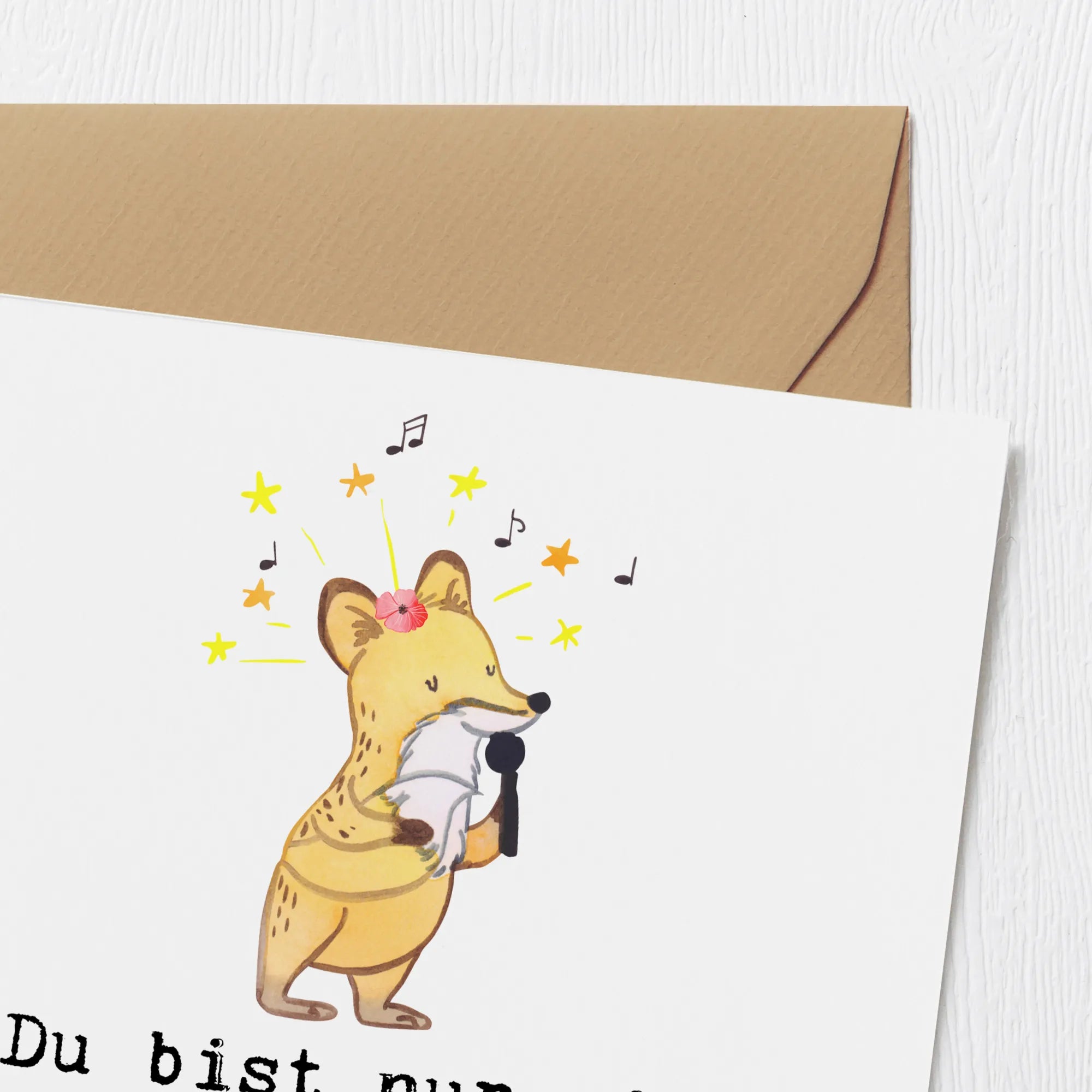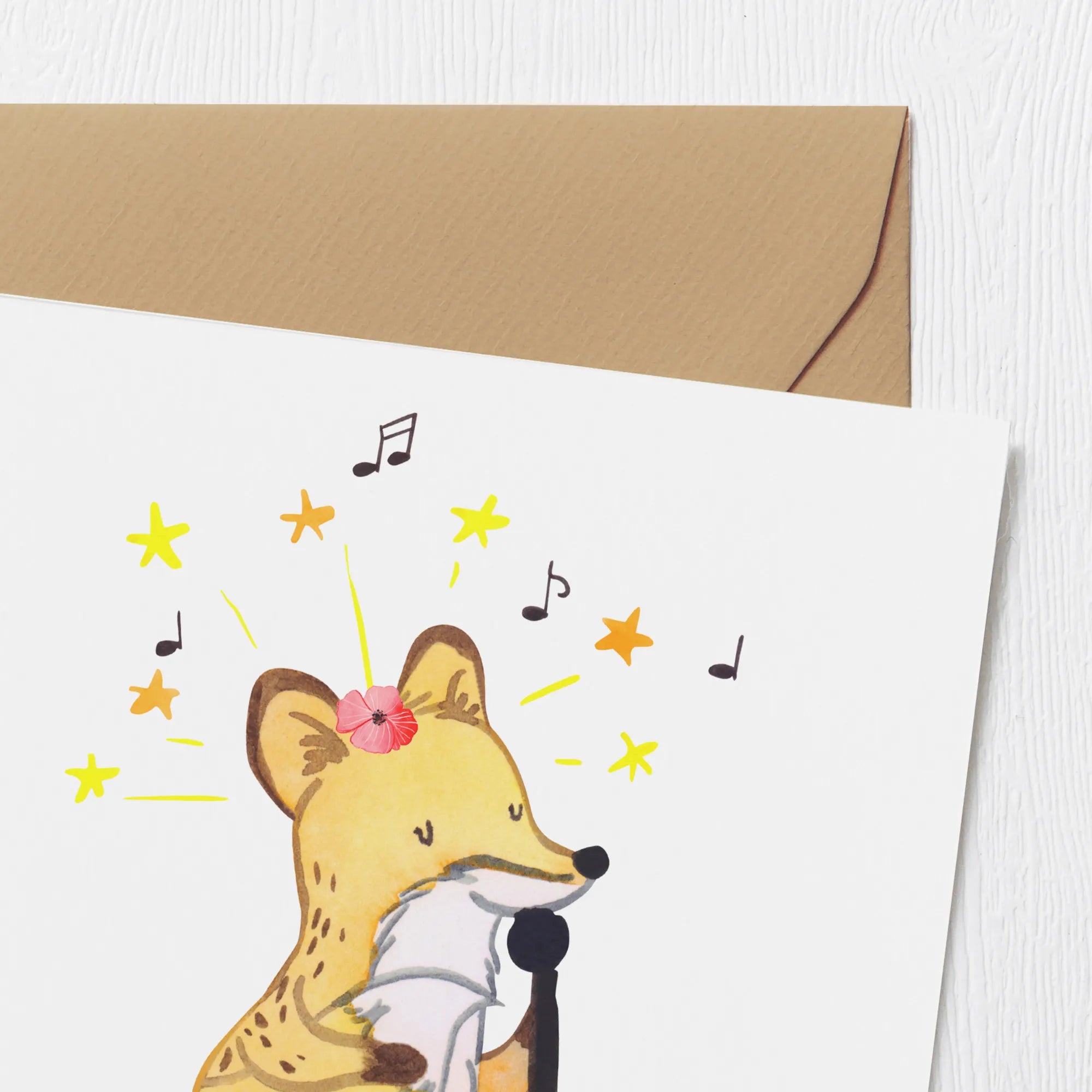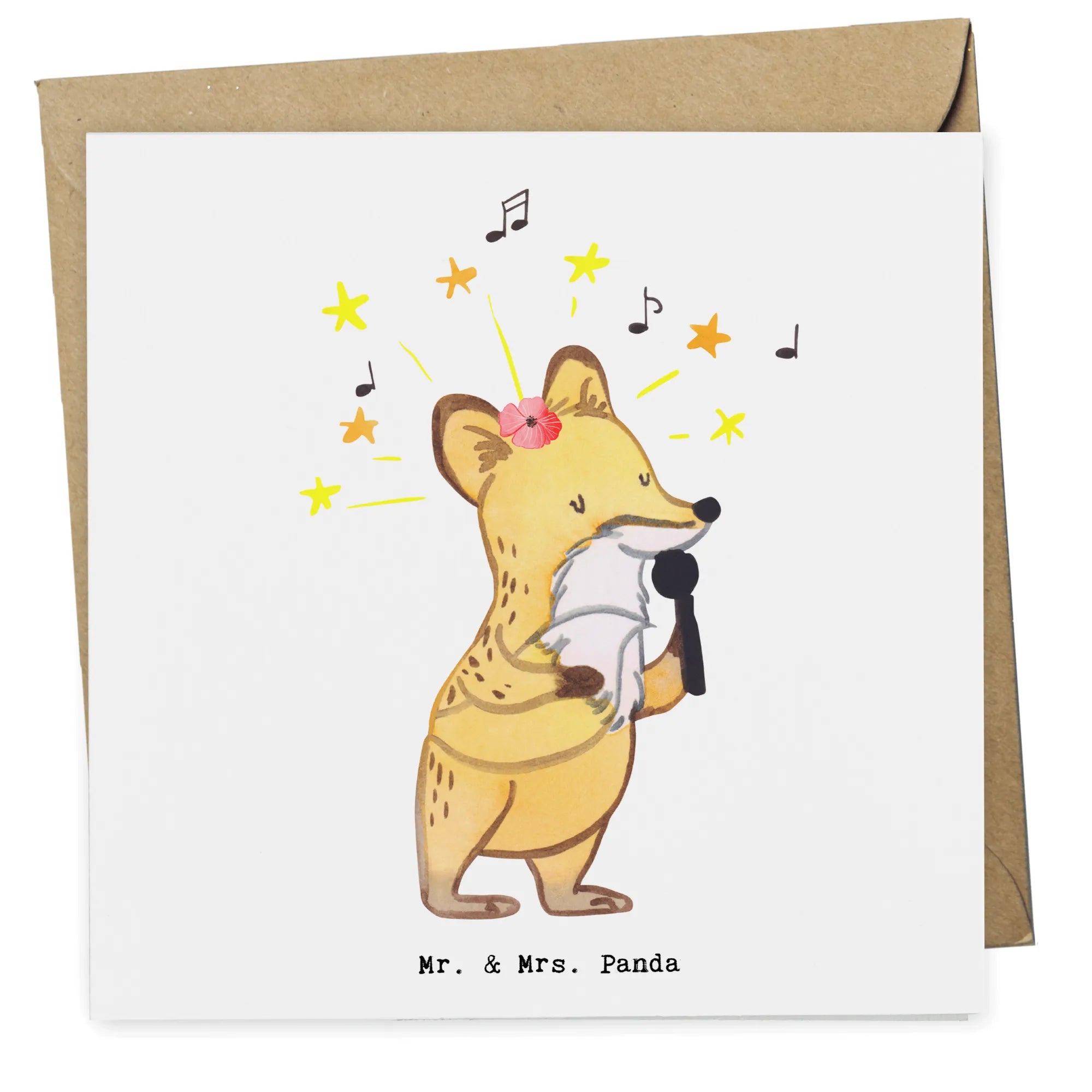 Die Deluxe Karte "Sängerin mit Herz" aus der kreativen Berufe Kollektion von Mr. & Mrs. Panda ist das perfekte Geschenk für alle, die das Singen lieben. Mit einem liebevoll gestalteten Motiv, das eine singende Fuchs-Dame zeigt, bringt diese Karte Freude und lässt Herzen höher schlagen.
