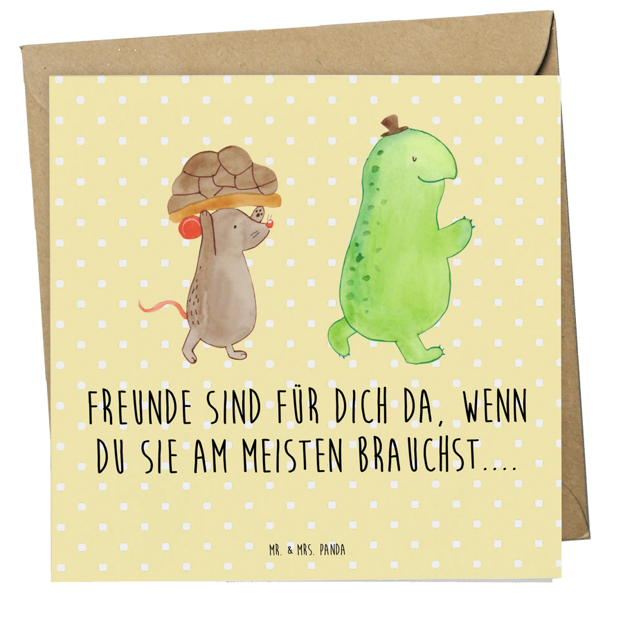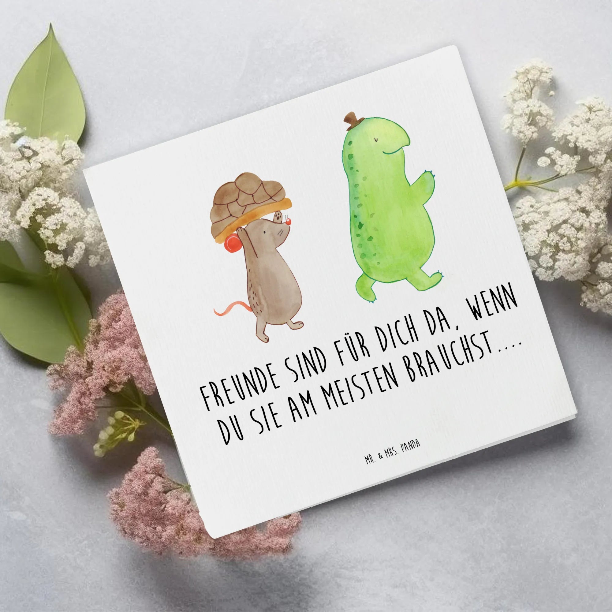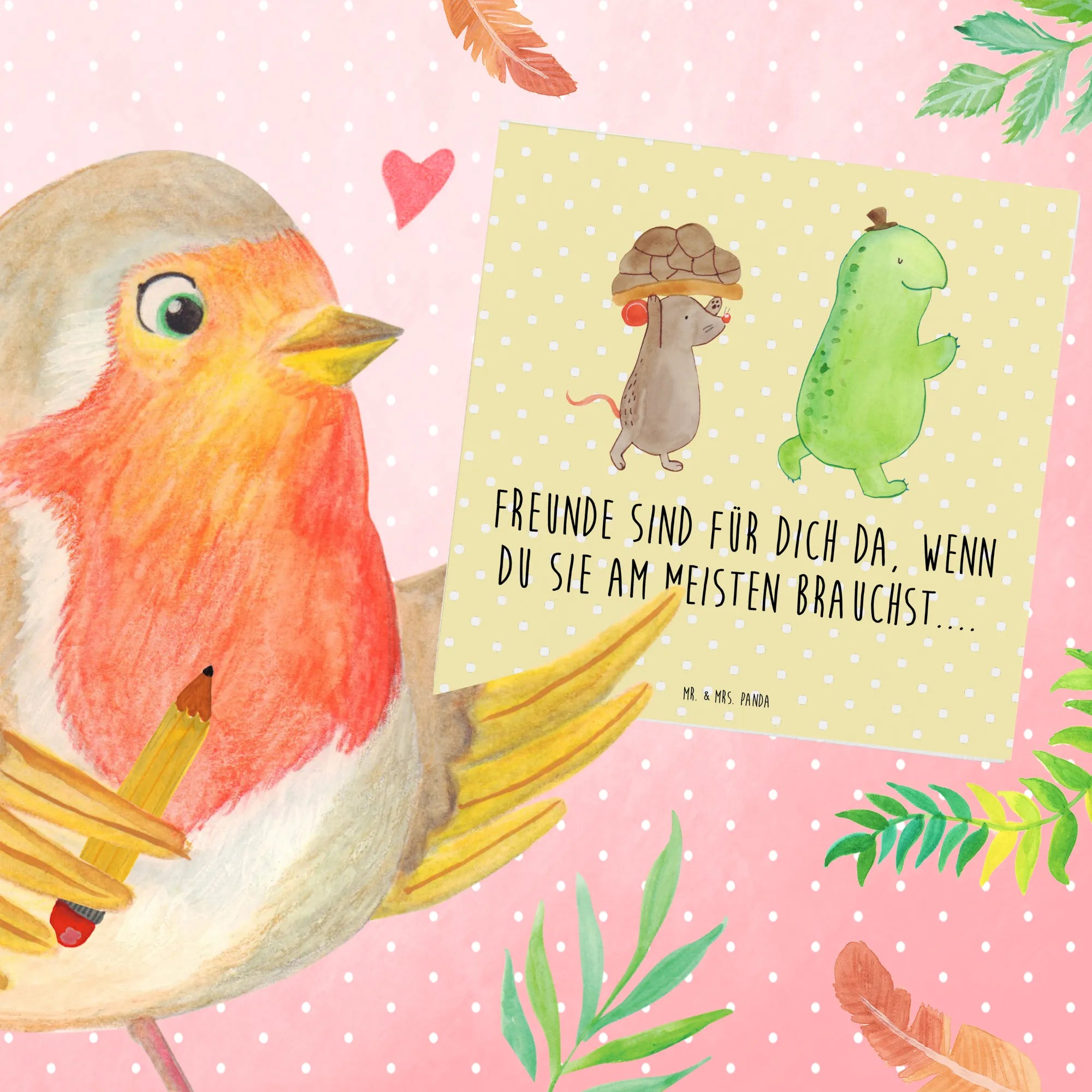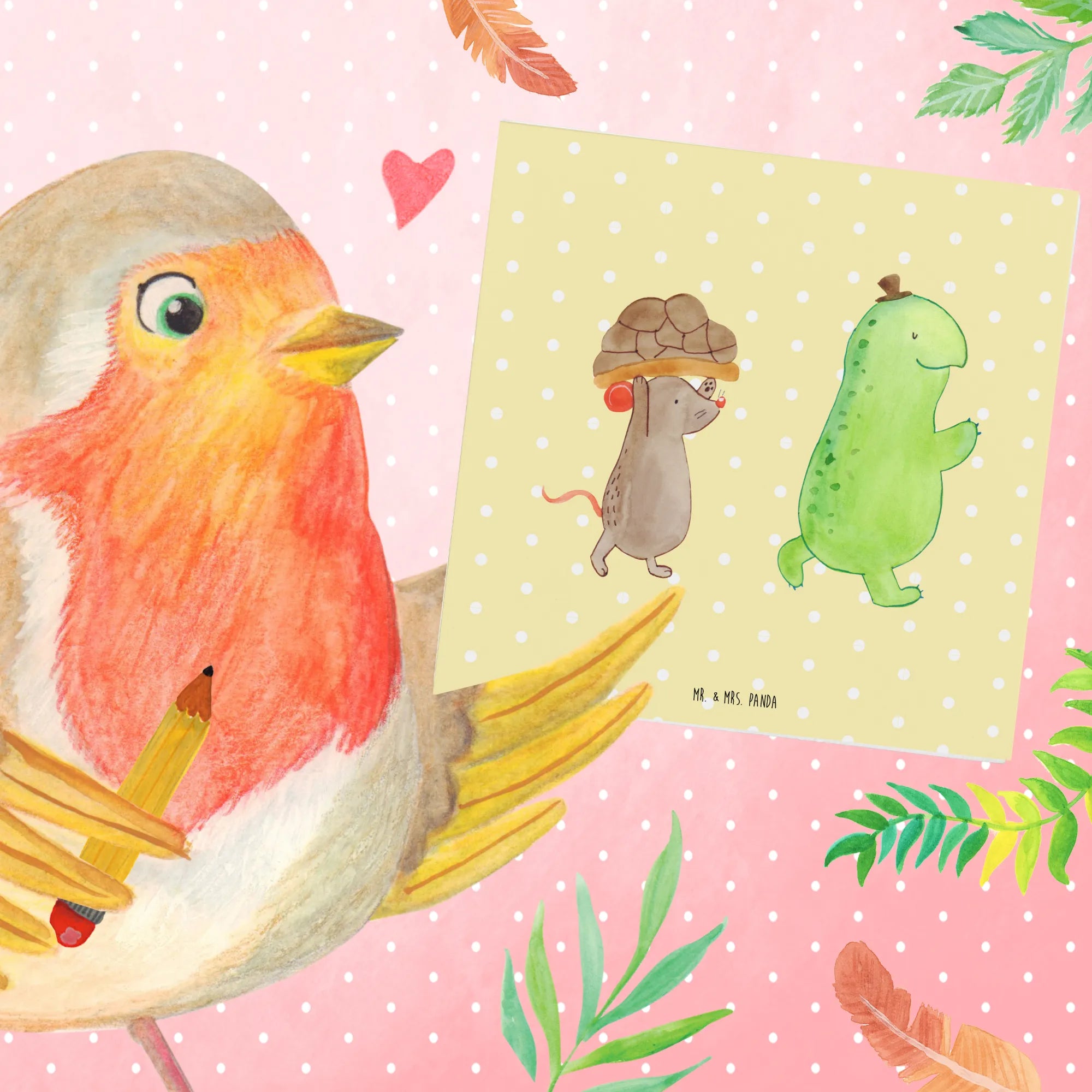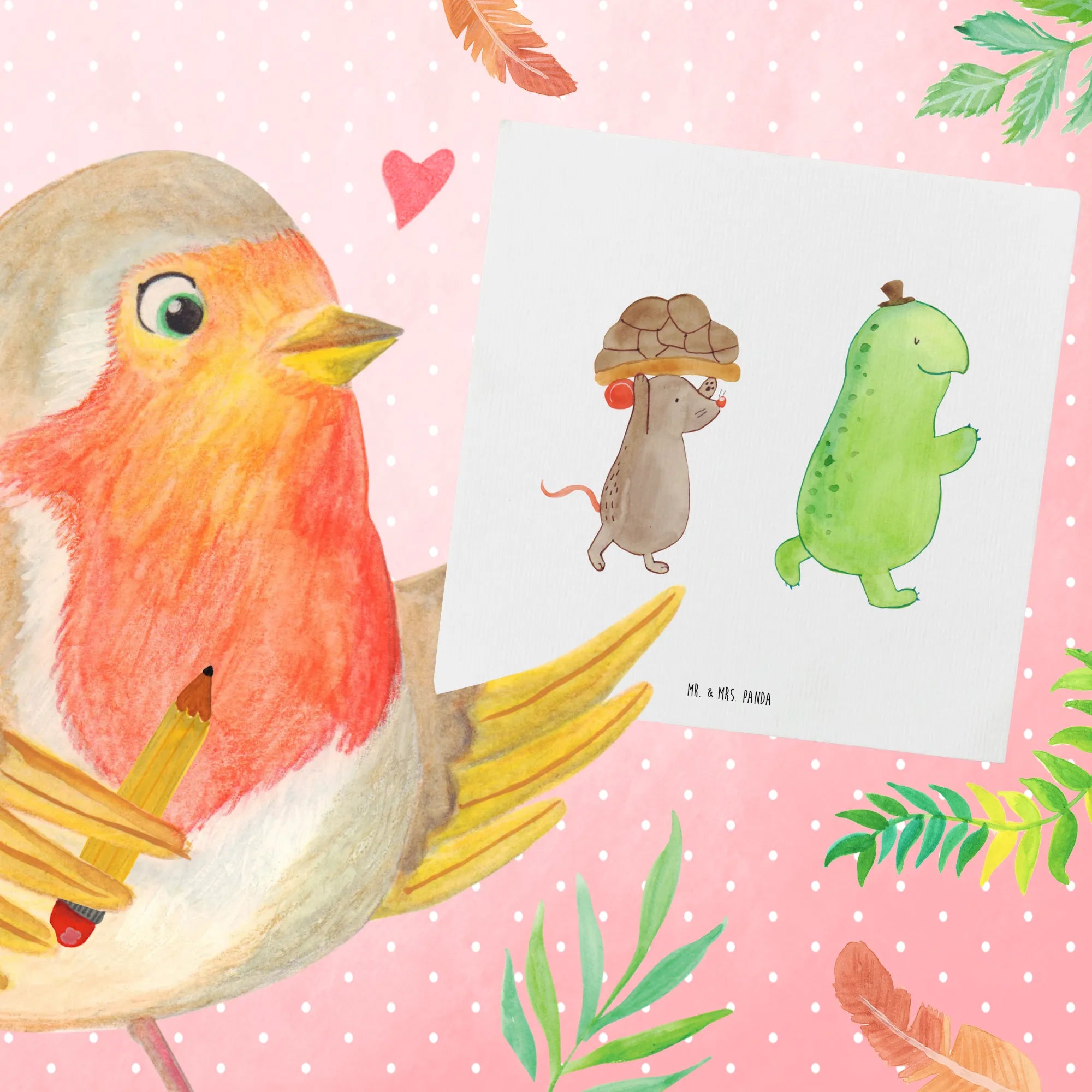 Die Deluxe Karte mit dem niedlichen Motiv der Schildkröte und der Maus von Mr. & Mrs. Panda ist das perfekte Geschenk für all deine Freunde und Freundinnen! Diese wunderschöne quadratische Karte ist nicht nur hochwertig, sondern bringt auch ein Lächeln auf die Gesichter deiner Liebsten.
