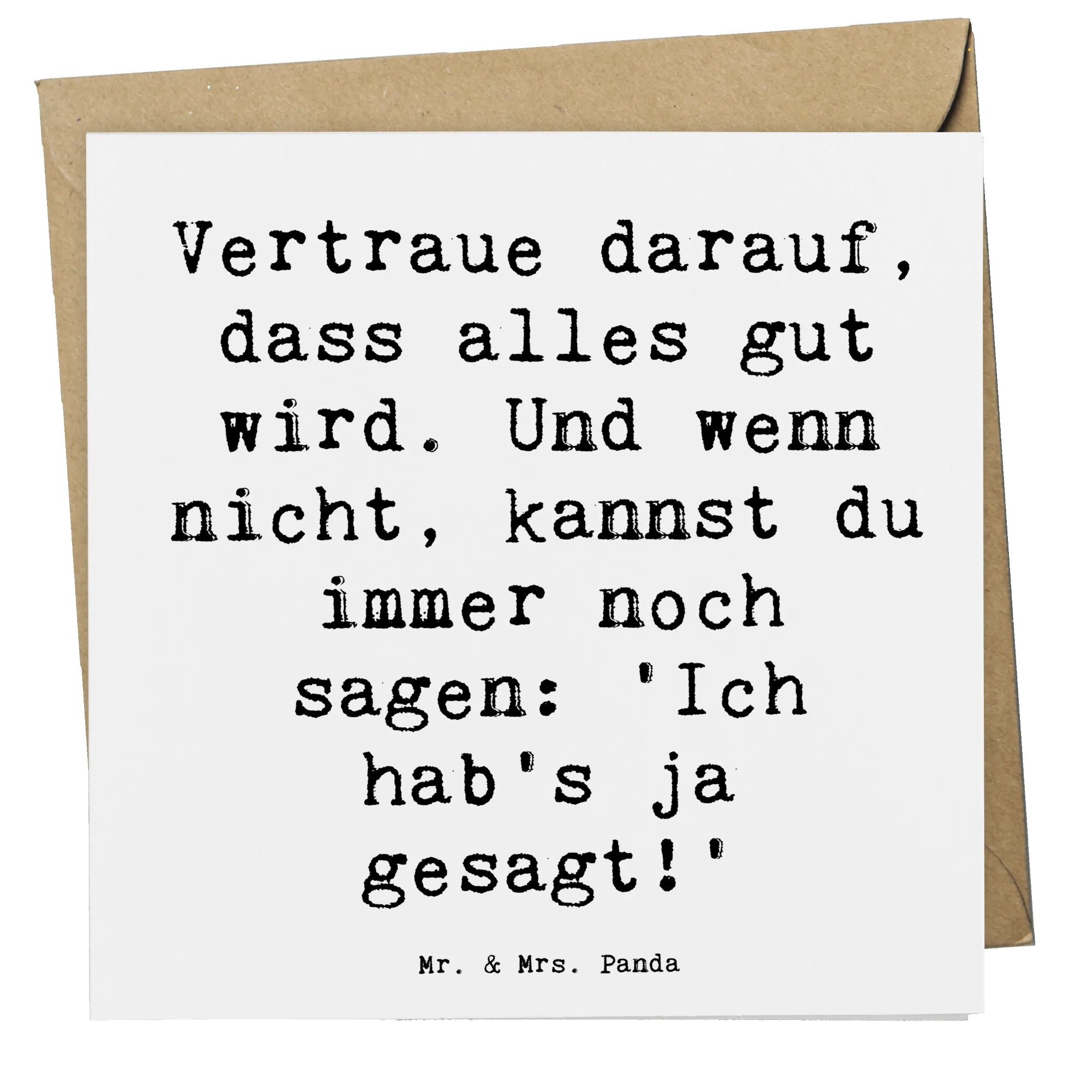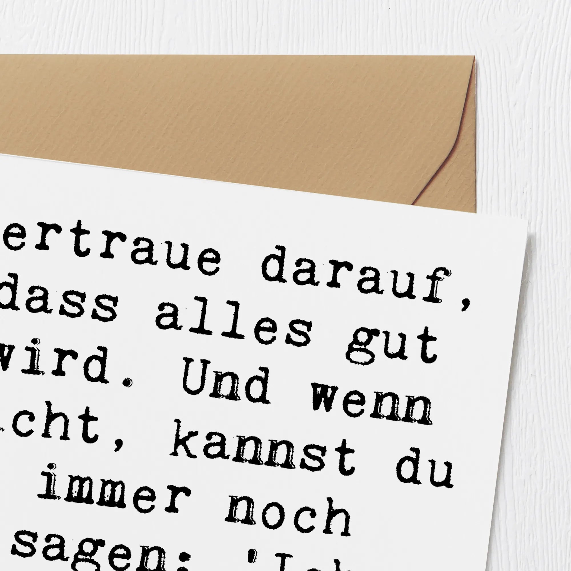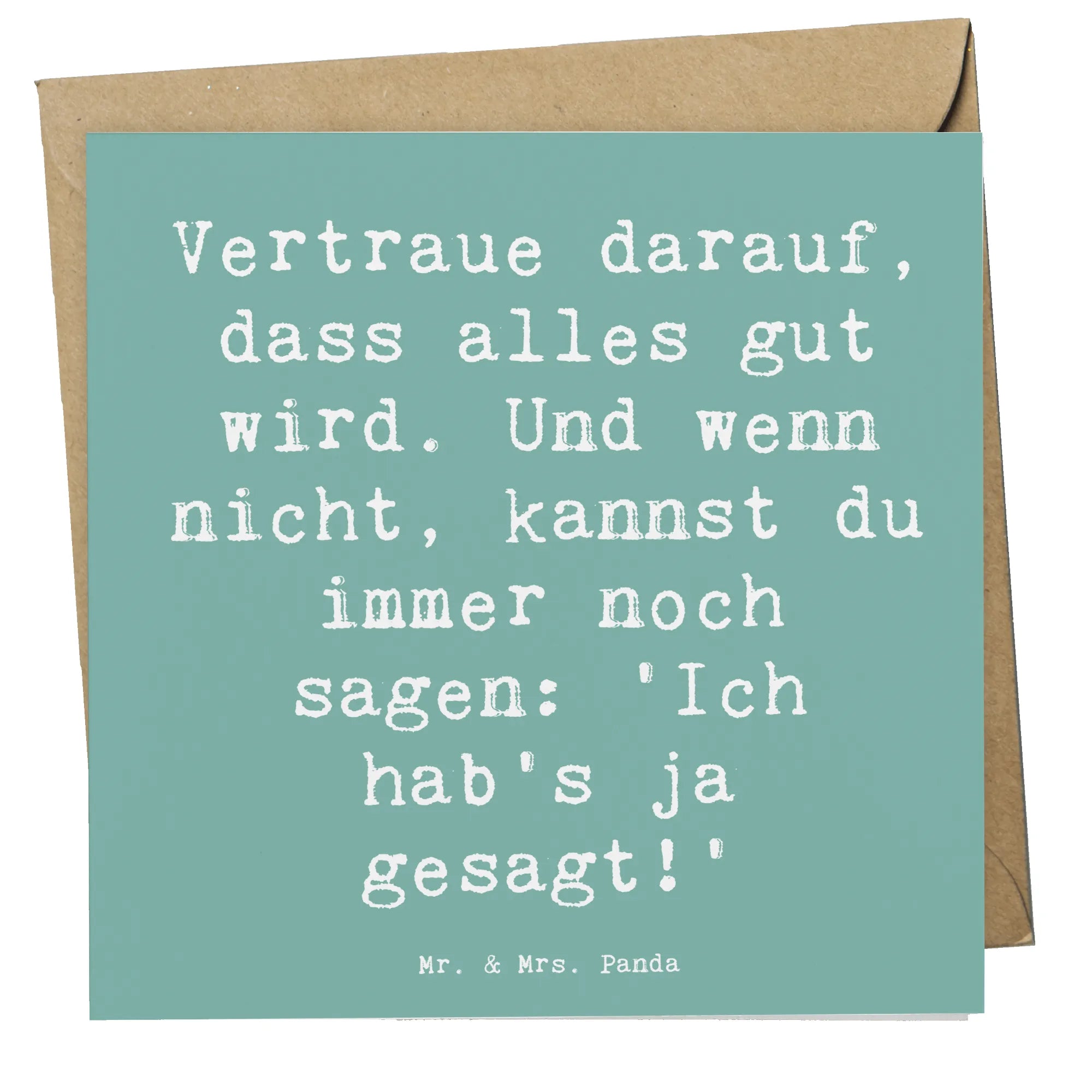Ob zum Geburtstagsfeier, zur Hochzeit oder einfach nur als liebevolle Überraschung – diese hochwertige, quadratische Klappkarte bringt stets ein Lächeln auf dein Gesicht und das deines Beschenkten. Die Karte misst 140 mm x 140 mm und besteht aus edlem 300 Gramm Karton. Der matte Innenteil ist ideal für individuelle Botschaften, während die hochglänzend veredelte Vorderseite mit dem inspirierenden Spruch 'Vertraue darauf, dass alles gut wird. Und wenn nicht, kannst du immer noch sagen: 'Ich hab's ja gesagt!' versehen ist.