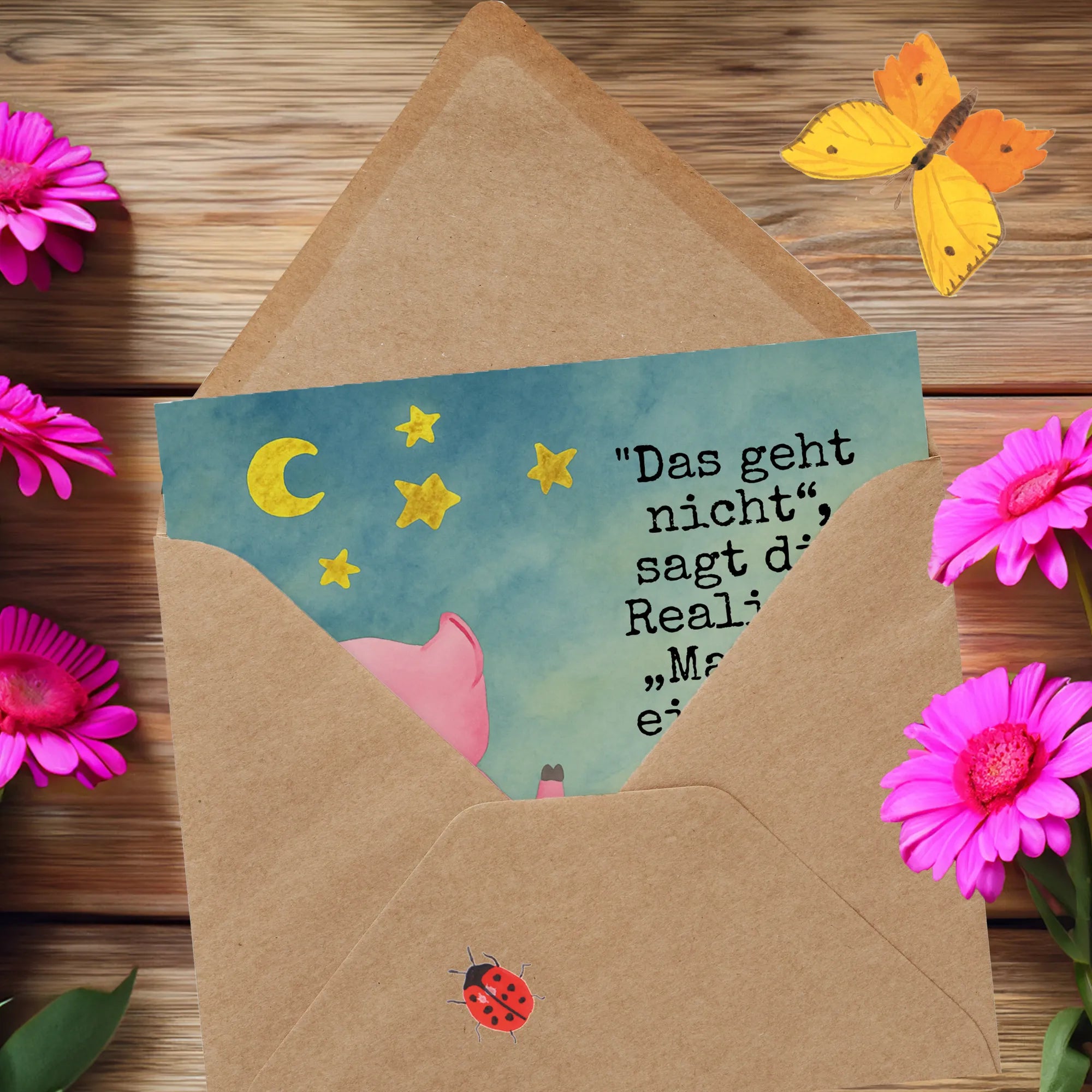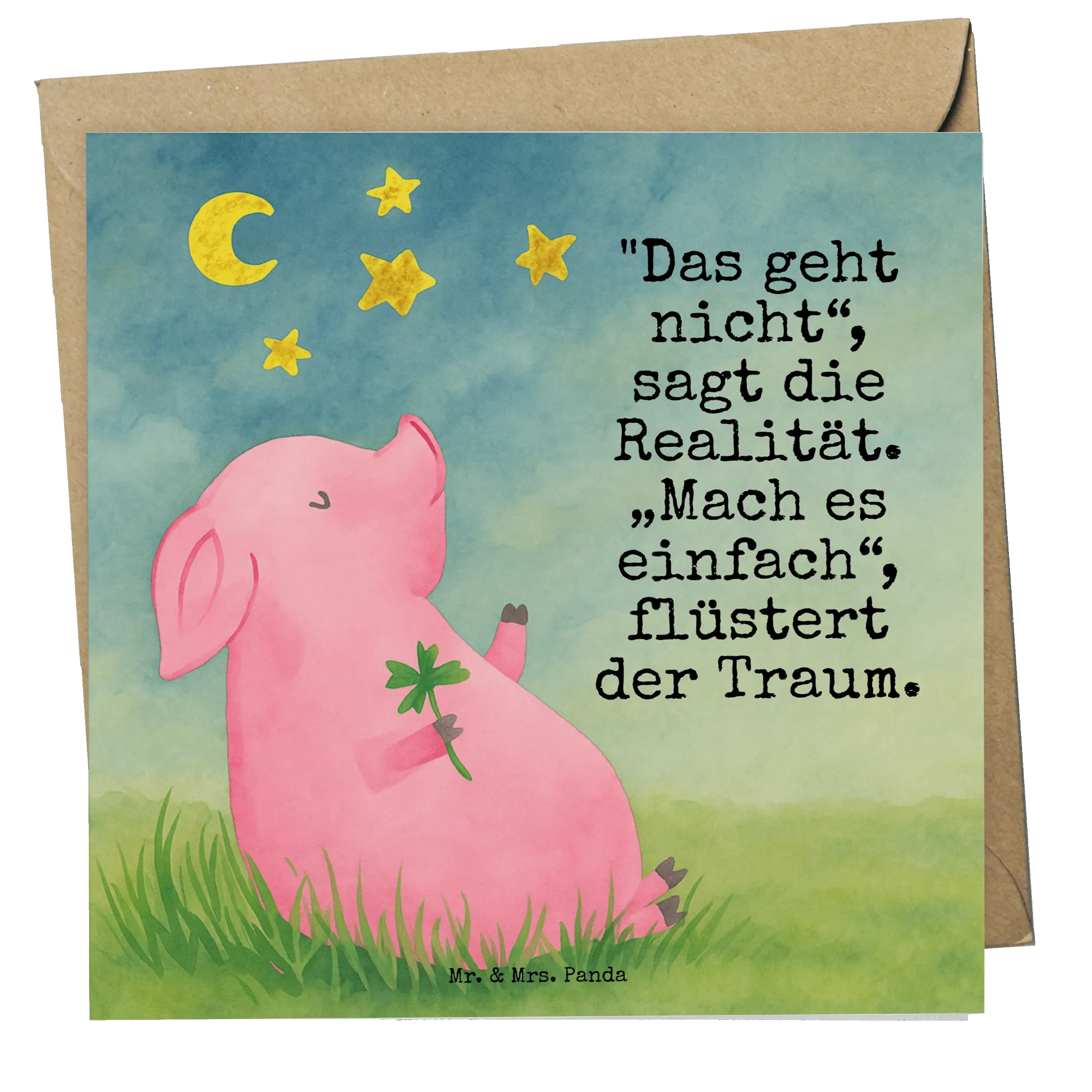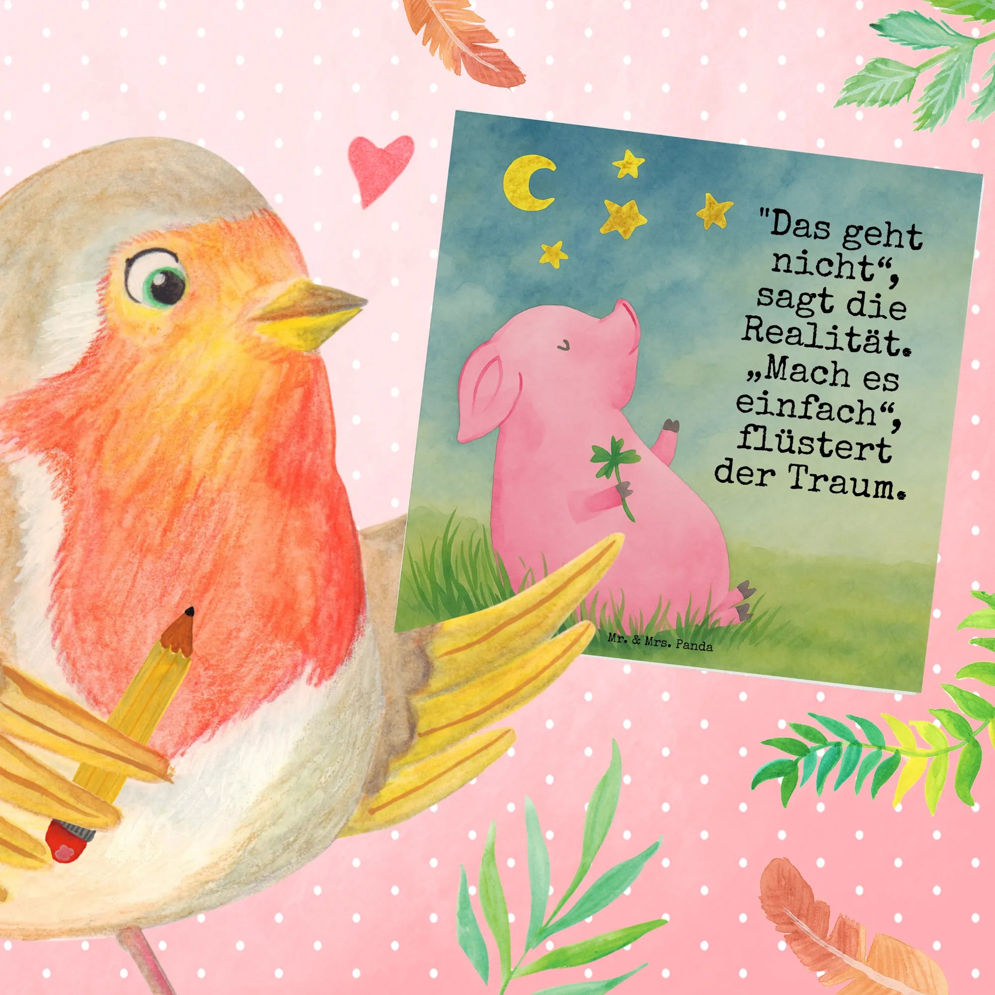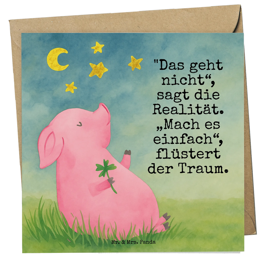 In einer Welt, in der Realität oft das letzte Wort zu haben scheint, erhebt sich ein kleines, mutiges Schweinchen, gewappnet mit einem Kleeblatt und umgeben von funkelnden Sternchen, um uns etwas Wichtiges zu lehren. Es lehrt uns, dass ungeachtet der vielen Stimmen, die sagen, „Das geht nicht“, irgendwo tief in uns ein zarter Traum flüstert: „Mach es einfach“. Dieses Glücksschwein von Mr. & Mrs. Panda, unser kleiner Glücksbringer, ist hier, um dich an die unglaubliche Kraft der Hoffnung und der unerschütterlichen Motivation zu erinnern. Lass es dein Wegweiser sein, wenn du deinen persönlichen Sternenhimmel erschaffst, indem du Schritt für Schritt auf deine Träume zugehst.