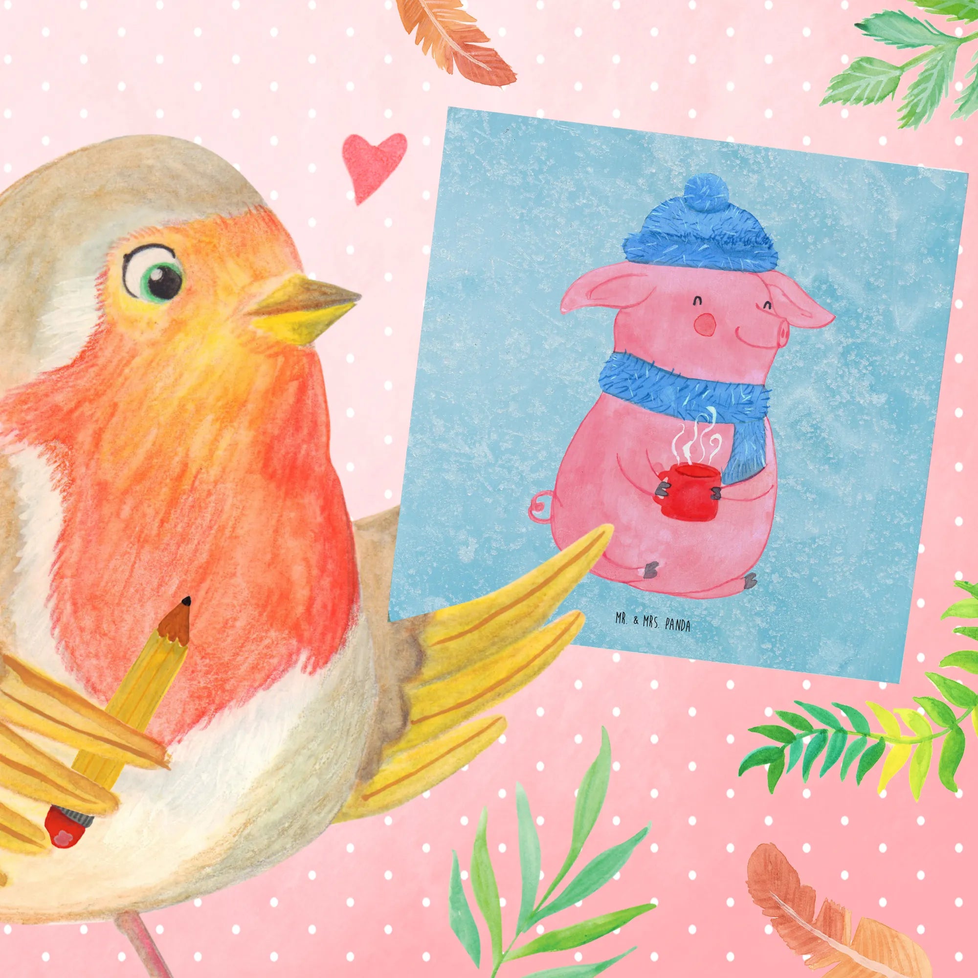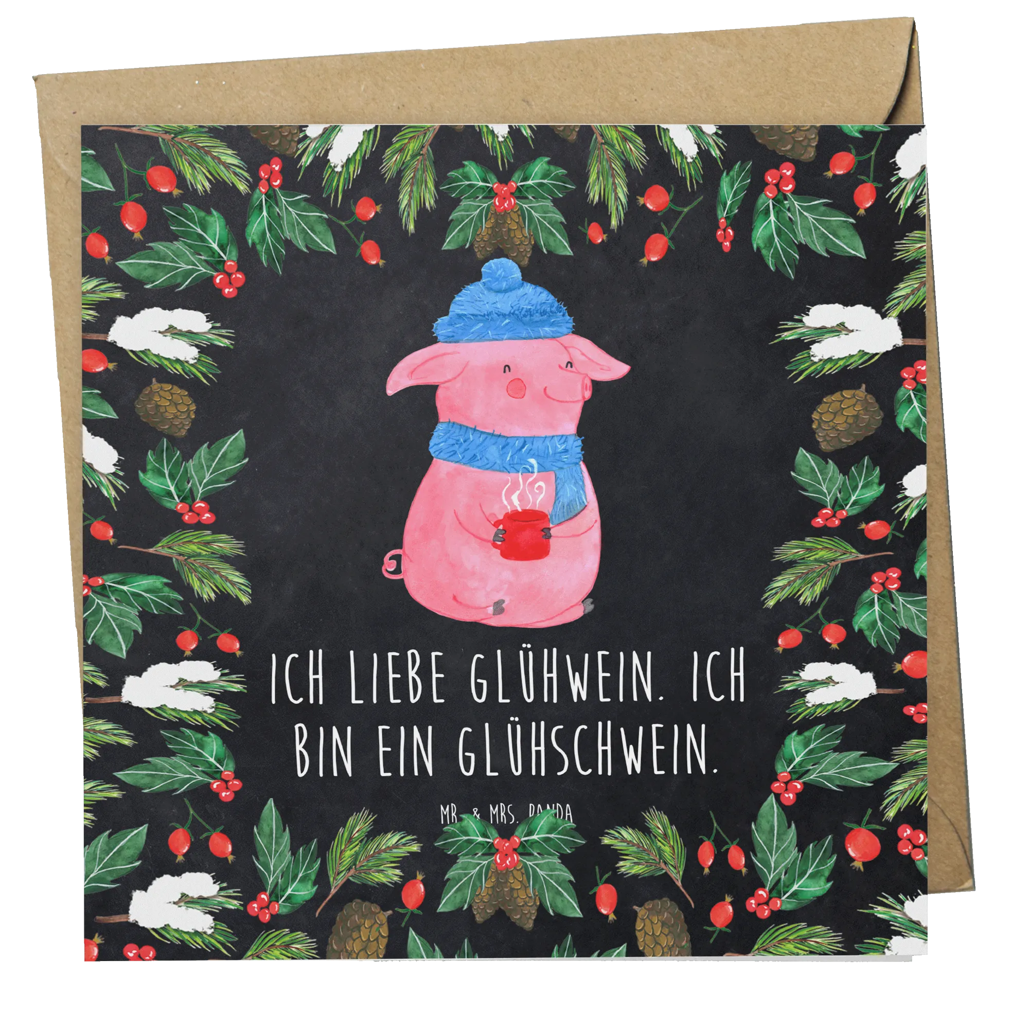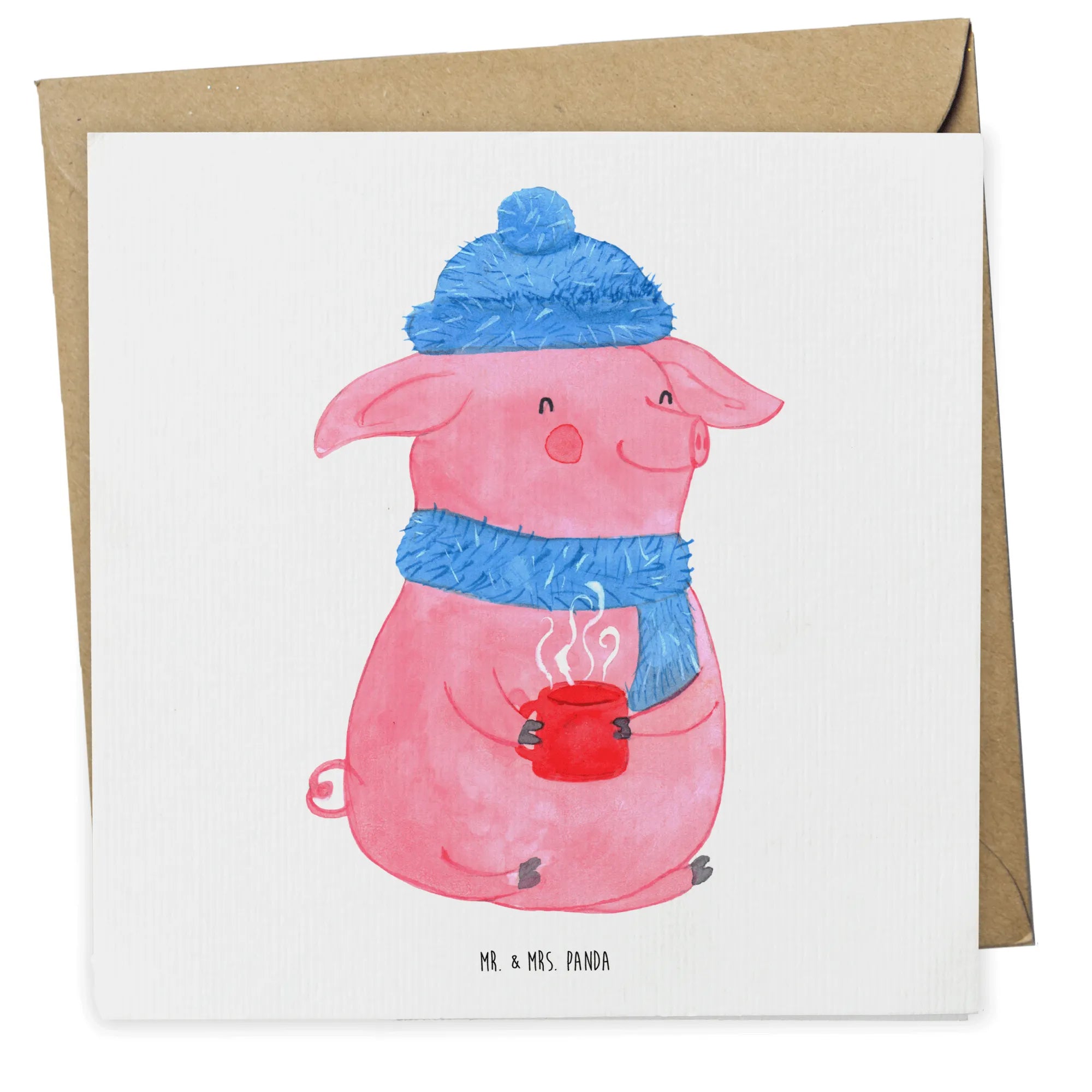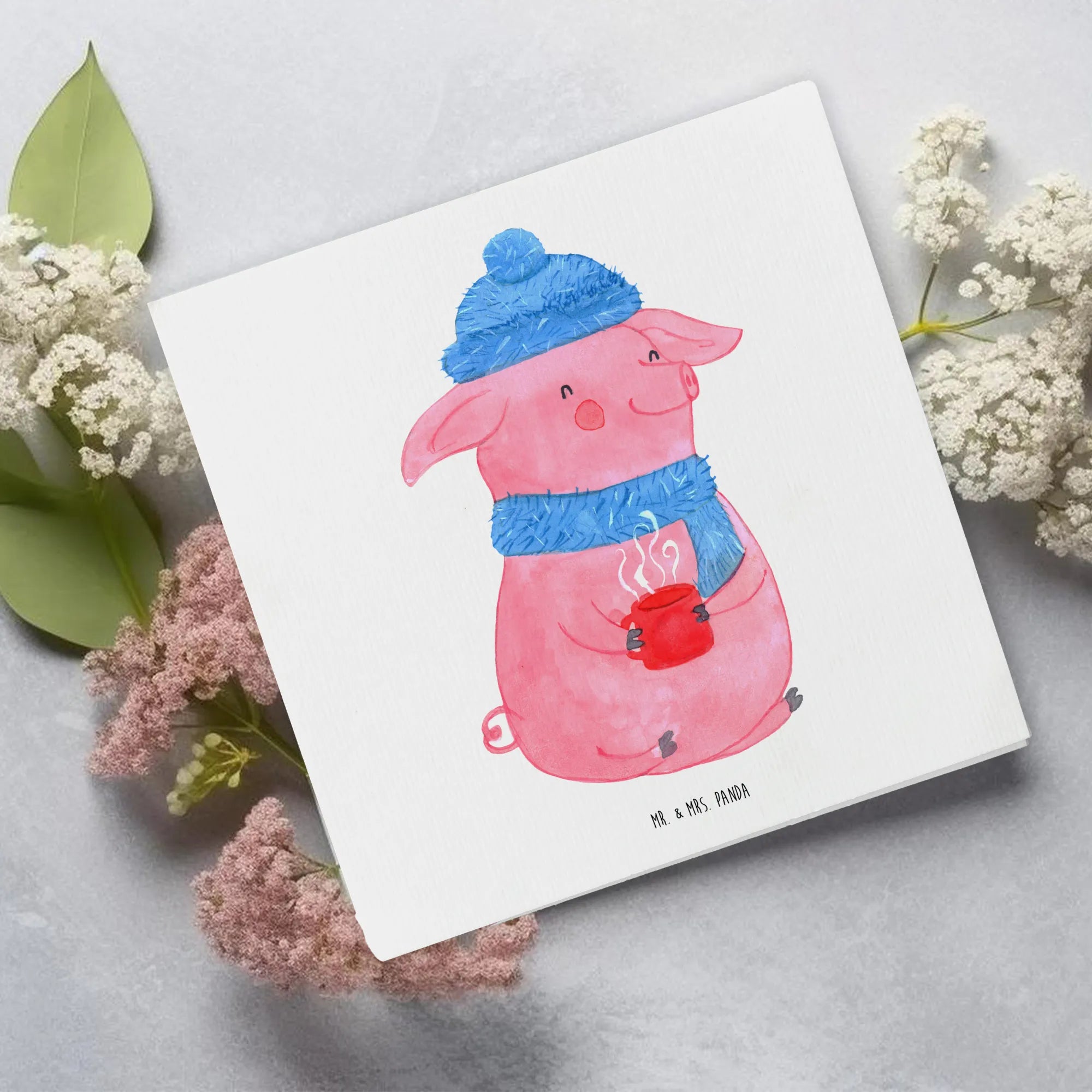 Die Deluxe Karte mit dem süßen Glühschwein-Motiv ist das perfekte Geschenk für die kalte, gemütliche Winterzeit. Mit einem fröhlichen, rosa Schwein, das in warmer Winterkleidung steckt, zaubert diese Karte ein Lächeln ins Gesicht. Die Designs sind liebevoll von Mrs. Panda handgezeichnet und strahlen eine einladende Atmosphäre aus.