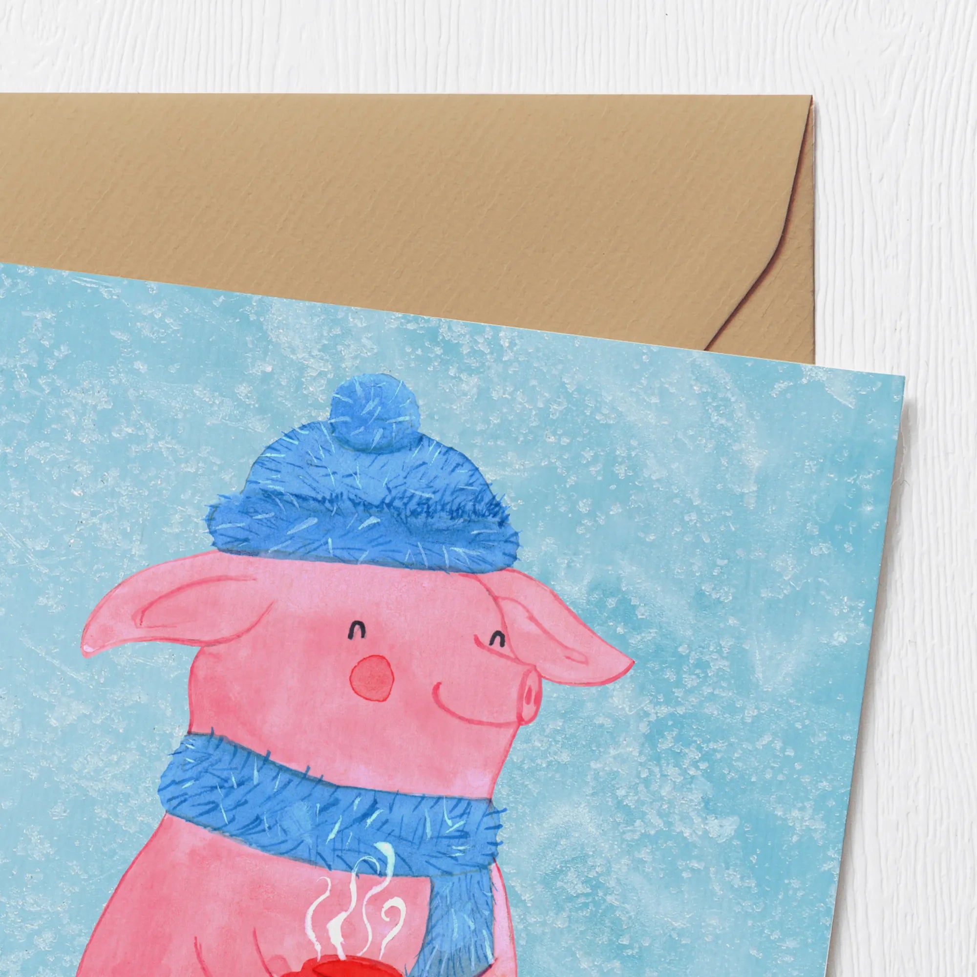 Jedes Detail dieser Karte ist mit viel Liebe zum Winter und zur Weihnachtszeit gestaltet, von dem fröhlichen, rosa Schwein in warmer Winterbekleidung bis hin zur roten Tasse, die das Glühschwein hält. Lass dich von der Magie der Winterzeit inspirieren und verschenke diese Karte zu festlichen Anlässen wie Weihnachten, Geburten, Hochzeiten oder Jubiläen.