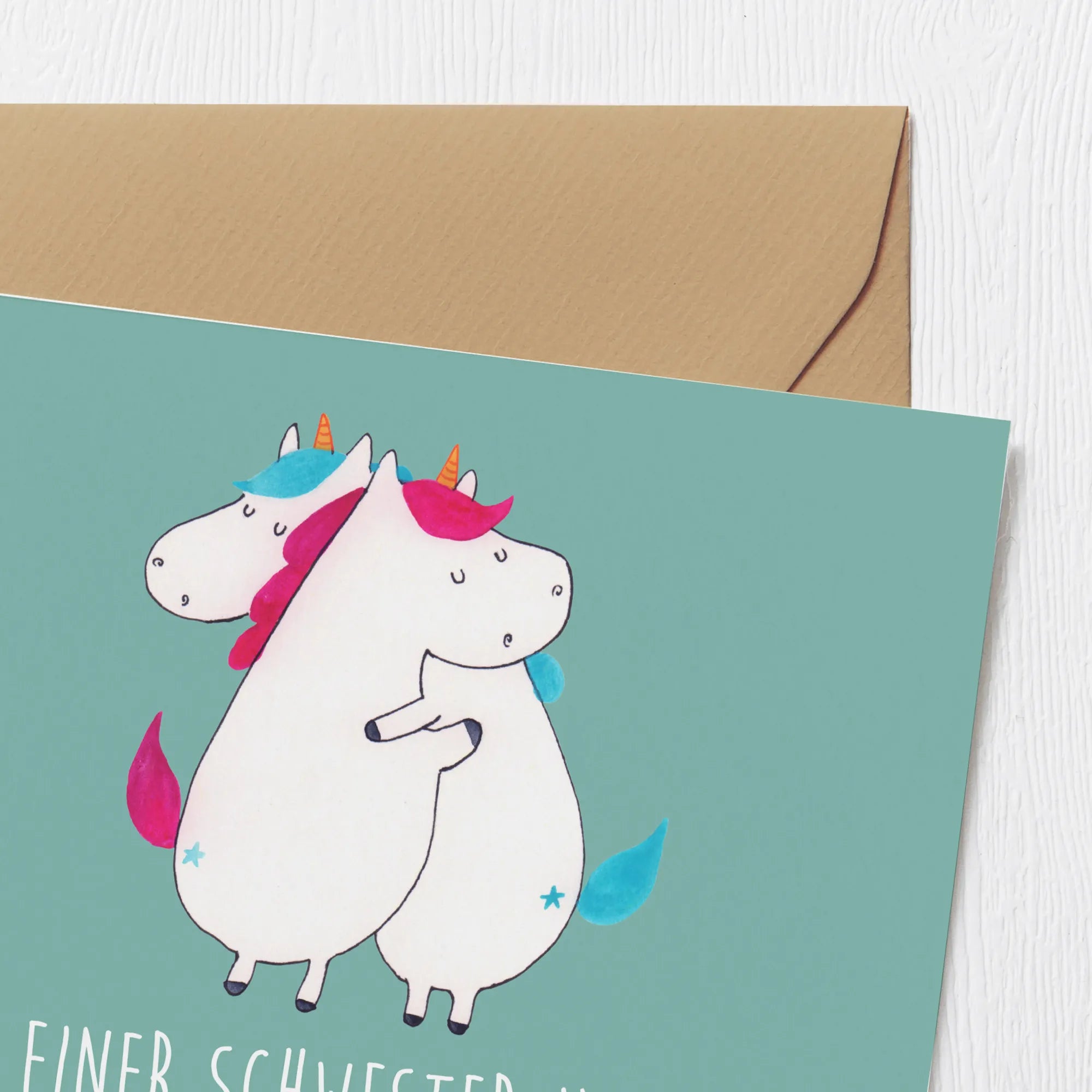 Bereite deiner Schwester mit dieser Karte eine echte Freude. Ob als Dankeschön für ihre Unterstützung, als kleine Überraschung zwischendurch oder als liebevolle Botschaft, die einfach mal gesagt werden muss – diese Karte ist ein Must-Have. Die Kollektion „Familie & Verwandte“ von Mr. & Mrs. Panda bietet eine große Auswahl an Karten, die die bunte Vielfalt der Familie widerspiegeln und jeden Anlass feiern. Verwöhne deine Schwester mit einem Geschenk, das sie nie vergessen wird!