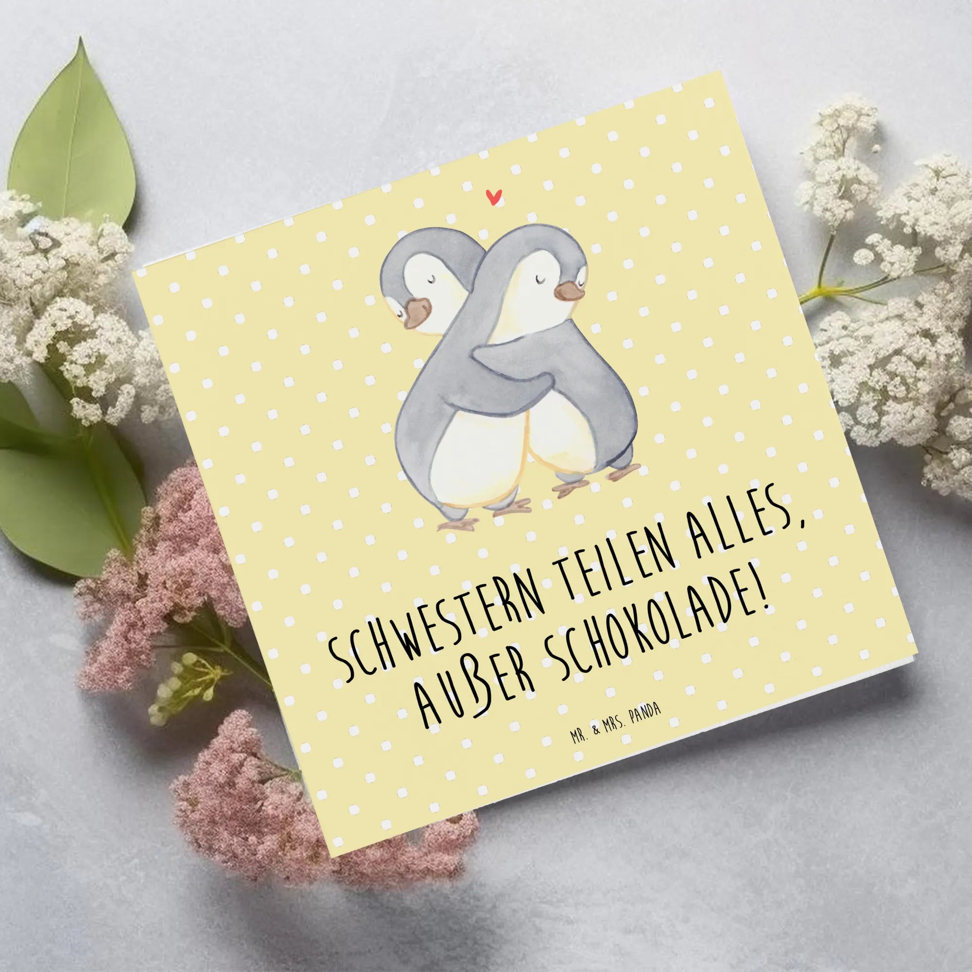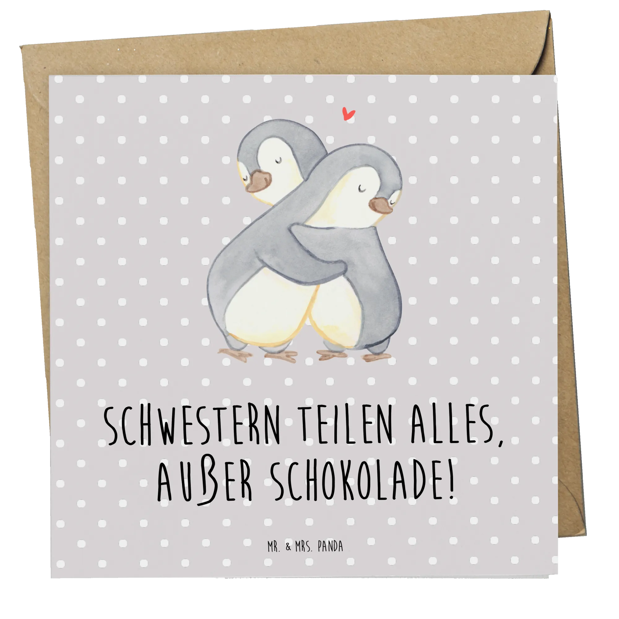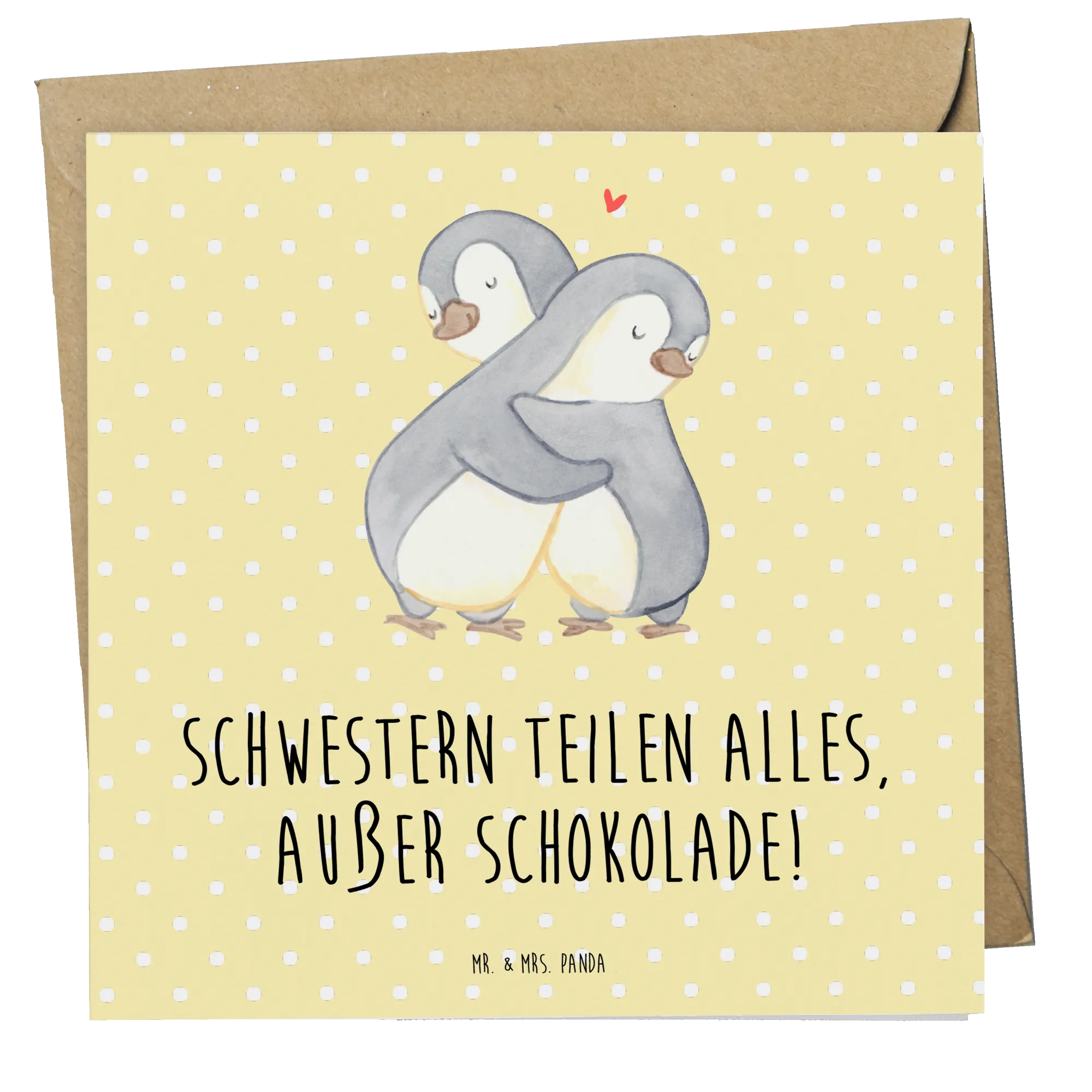 Suchst Du das perfekte Geschenk für Deine Schwester? Die Deluxe Karte von Mr. & Mrs. Panda ist ideal, um die besondere Verbindung zwischen Geschwistern zu feiern. Mit dem süßen Motto 'Schwestern teilen alles, außer Schokolade!' bringt diese Karte ein Lächeln auf jedes Gesicht.
