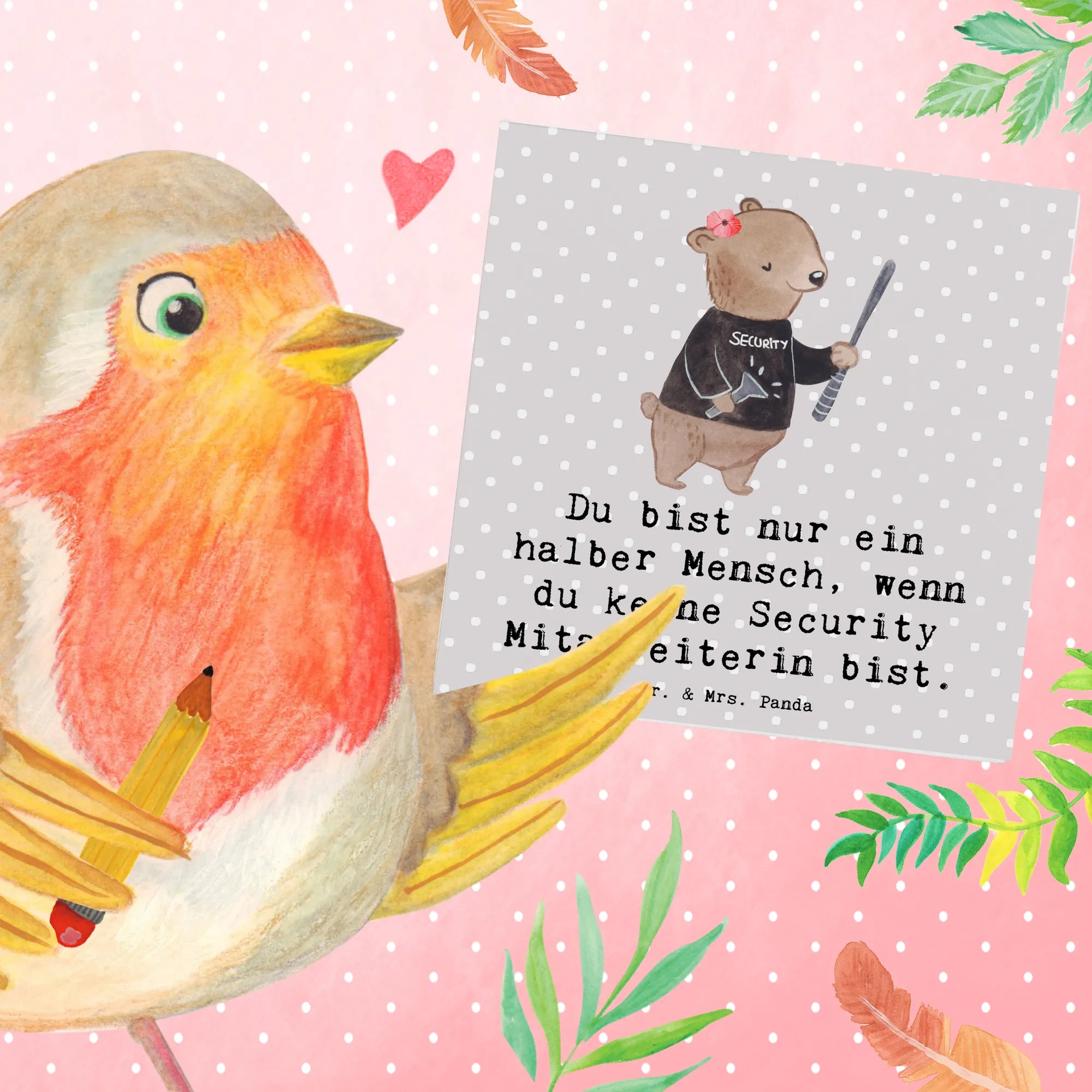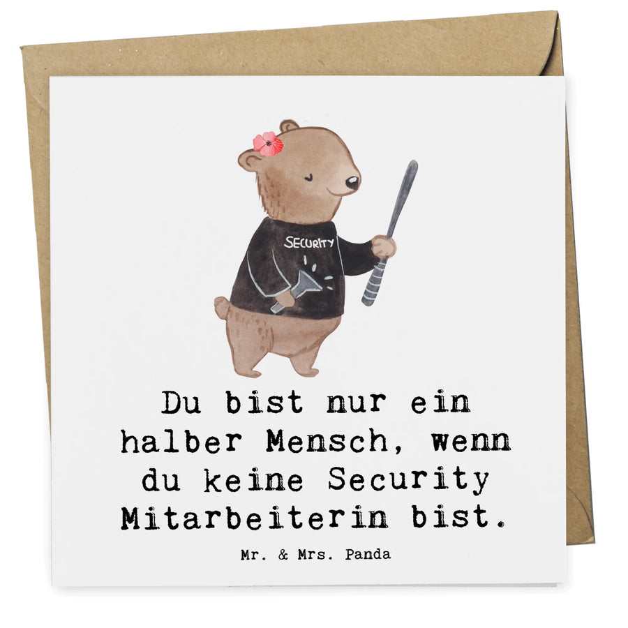Entdecke die Deluxe Karte 'Security Mitarbeiterin mit Herz' aus der einzigartigen Berufe Kollektion von Mr. & Mrs. Panda! Diese wunderschöne und hochwertige quadratische Karte misst 140 mm x 140 mm und besteht aus edlem 300 Gramm Papier.