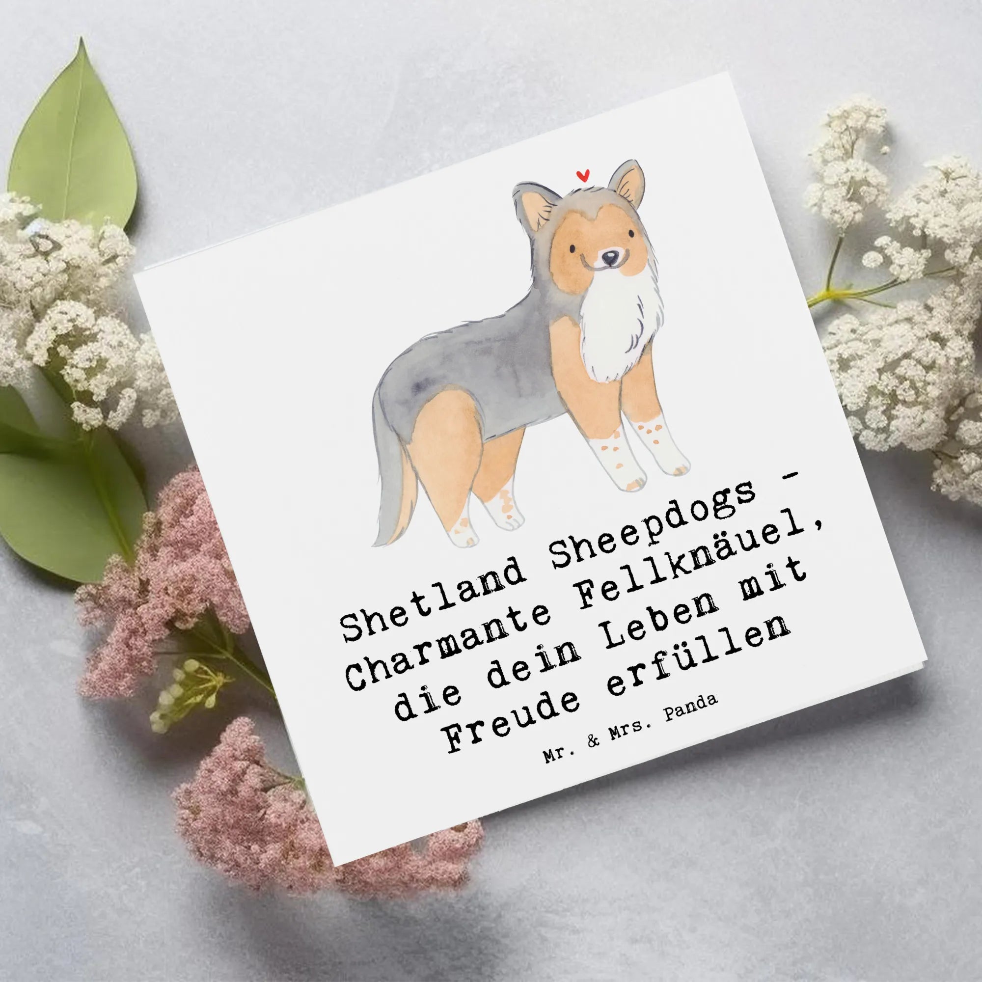 Die Deluxe Karte mit dem Motiv des Shetland Sheepdogs aus der Hunderassen Kollektion von Mr. & Mrs. Panda ist das perfekte Geschenk für jeden Hundefan! Du suchst nach einer besonderen Grußkarte für einen Geburtstag, eine Hochzeit oder einfach nur, um jemandem deine Wertschätzung zu zeigen? Diese hochwertige, quadratische Karte bringt nicht nur Freude, sondern auch den besonderen Charme der Shetland Sheepdogs direkt in deine Grüße.
